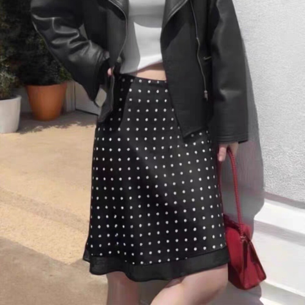 2026 년 봄 출퇴근 바람 새틴 도트 무늬 반신 스커트 여성 몸매 가꾸기 슬림해 보이는 한 마디 싸움 거즈 스커트 다용도 캐주얼 치마