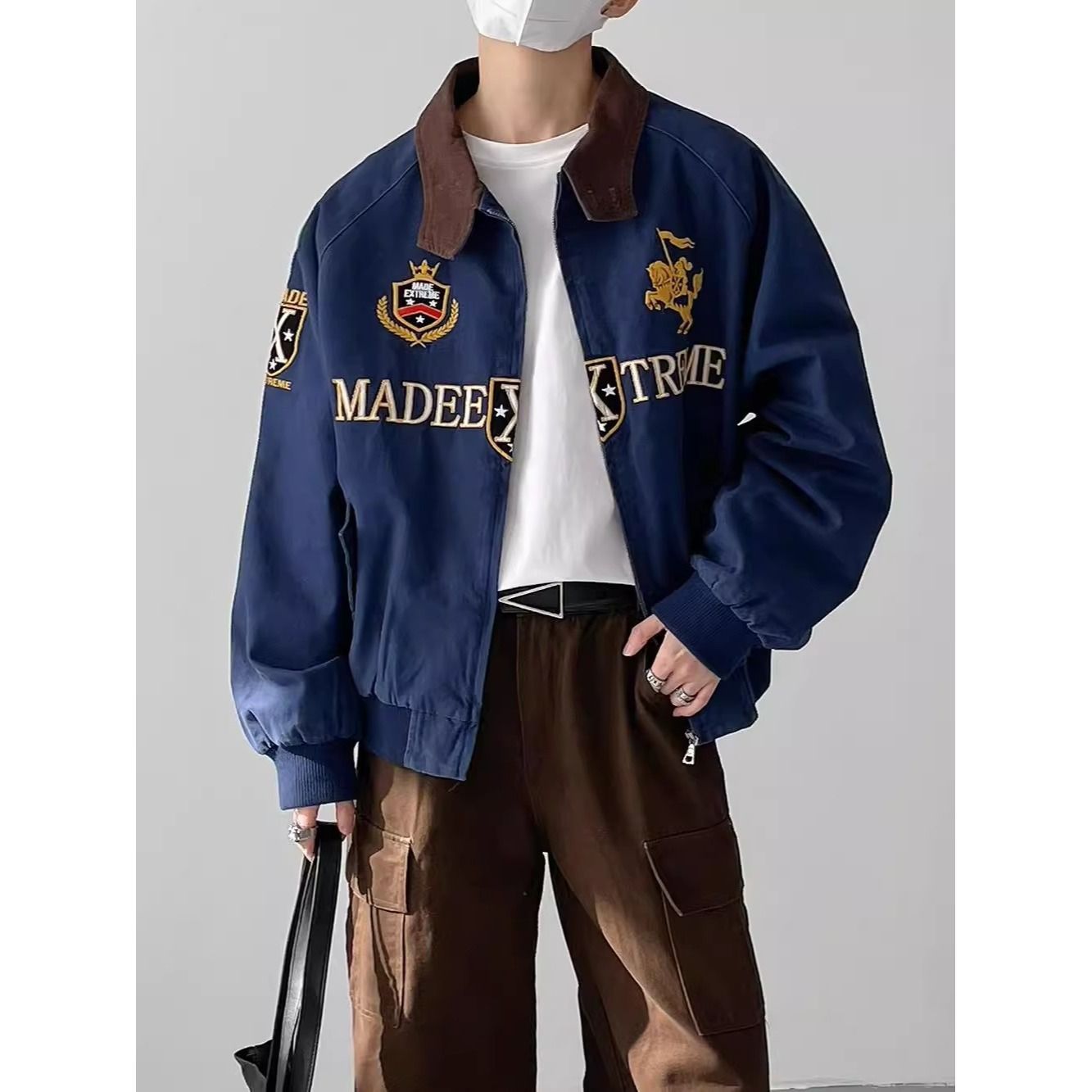 2026 아메리칸 높음 거리 무거운 알파벳 자수 야구 유니폼 남자 봄 가을 새로운 악당 잘 생긴 캐주얼 폴로 칼라 여성 코트