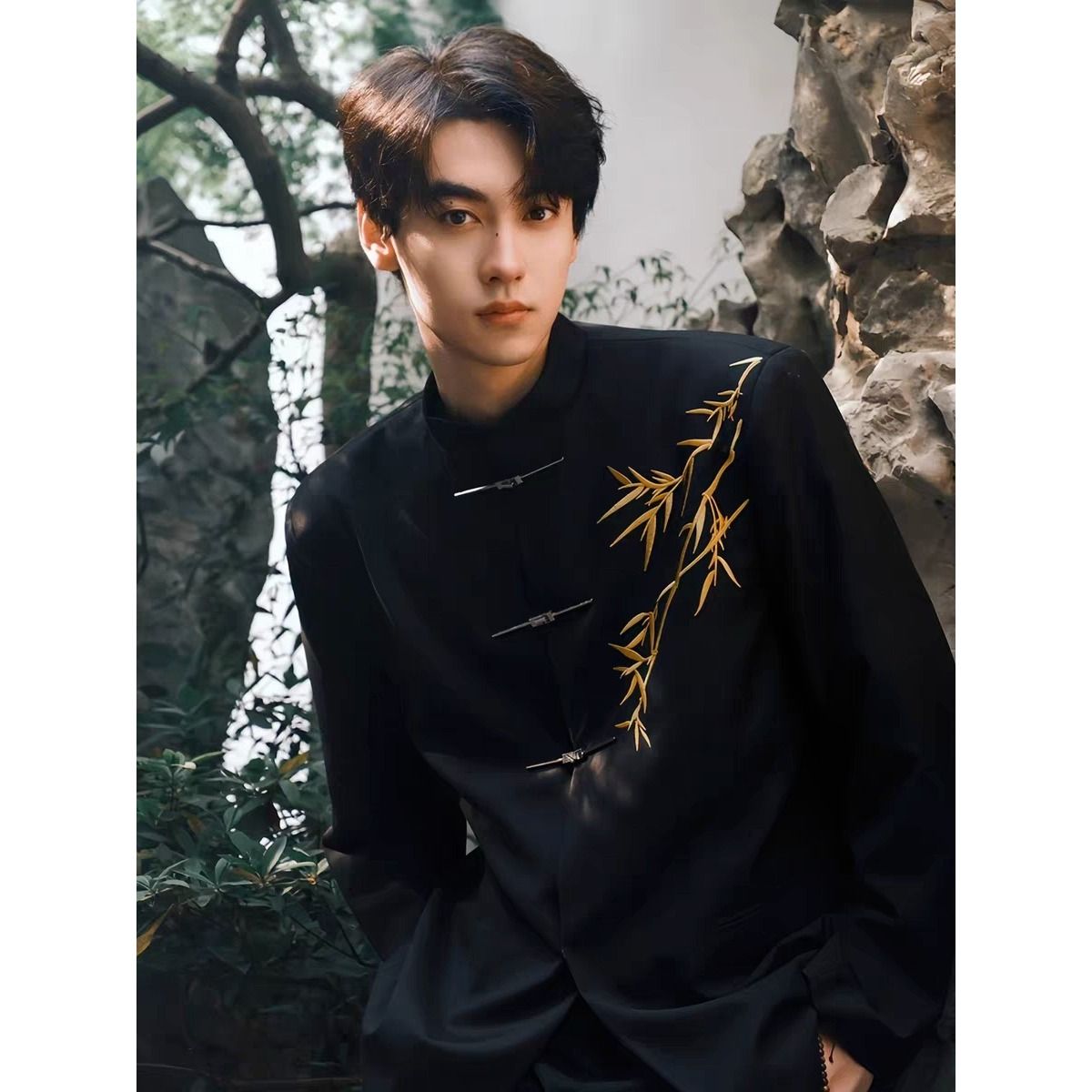 2026 새로운 자수 대나무 잎 정장 새로운 중식 정장 성인 예복 남자 고급 빛 럭셔리 골드 대나무 자수 정장