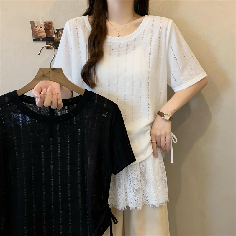 실사 2819# 지방 mm 레이스 조각 캐미솔 슬림해 보이는 다용도 투피스 세트 티셔츠 디자인 센스 작은 대중 맨위