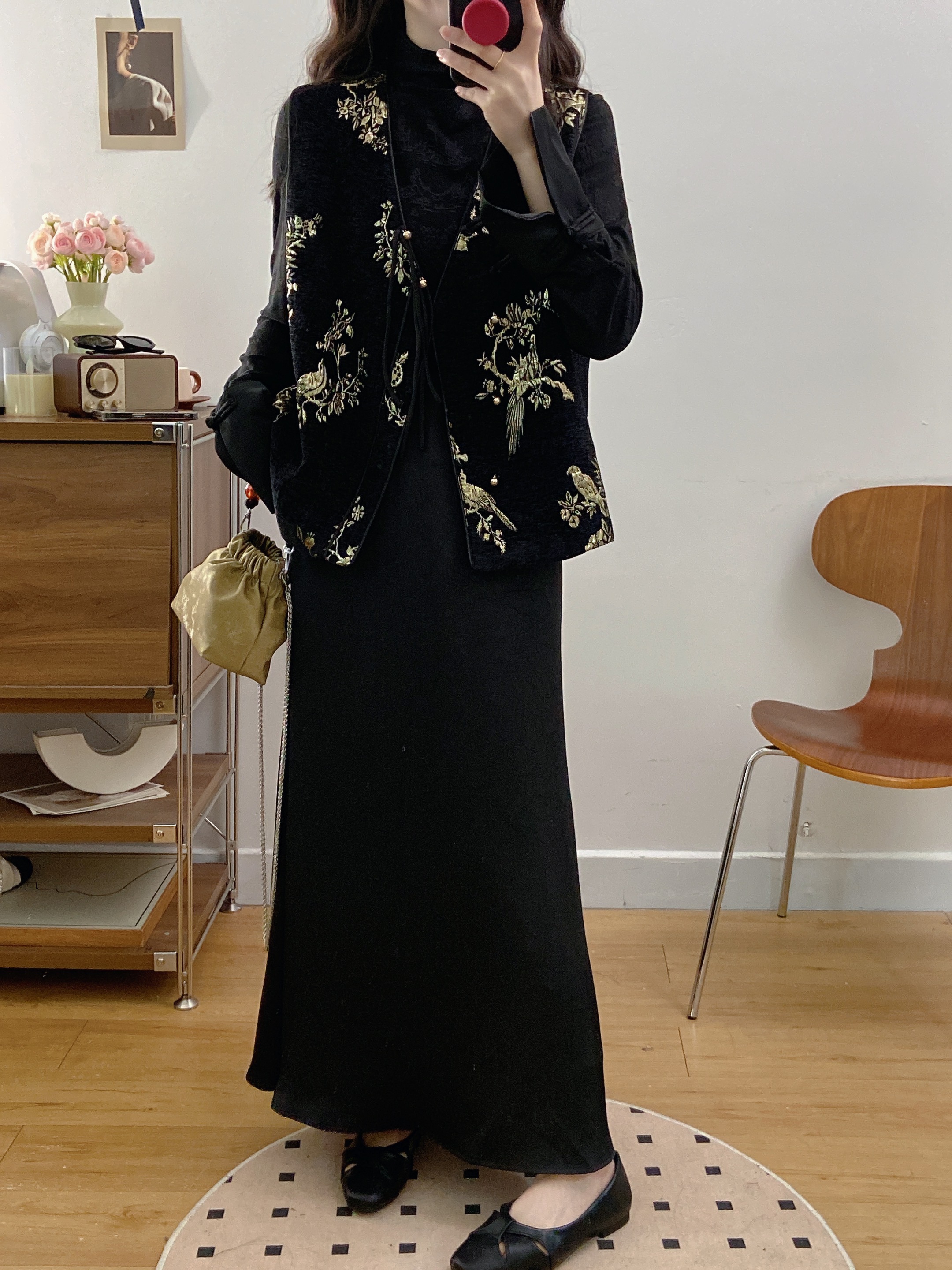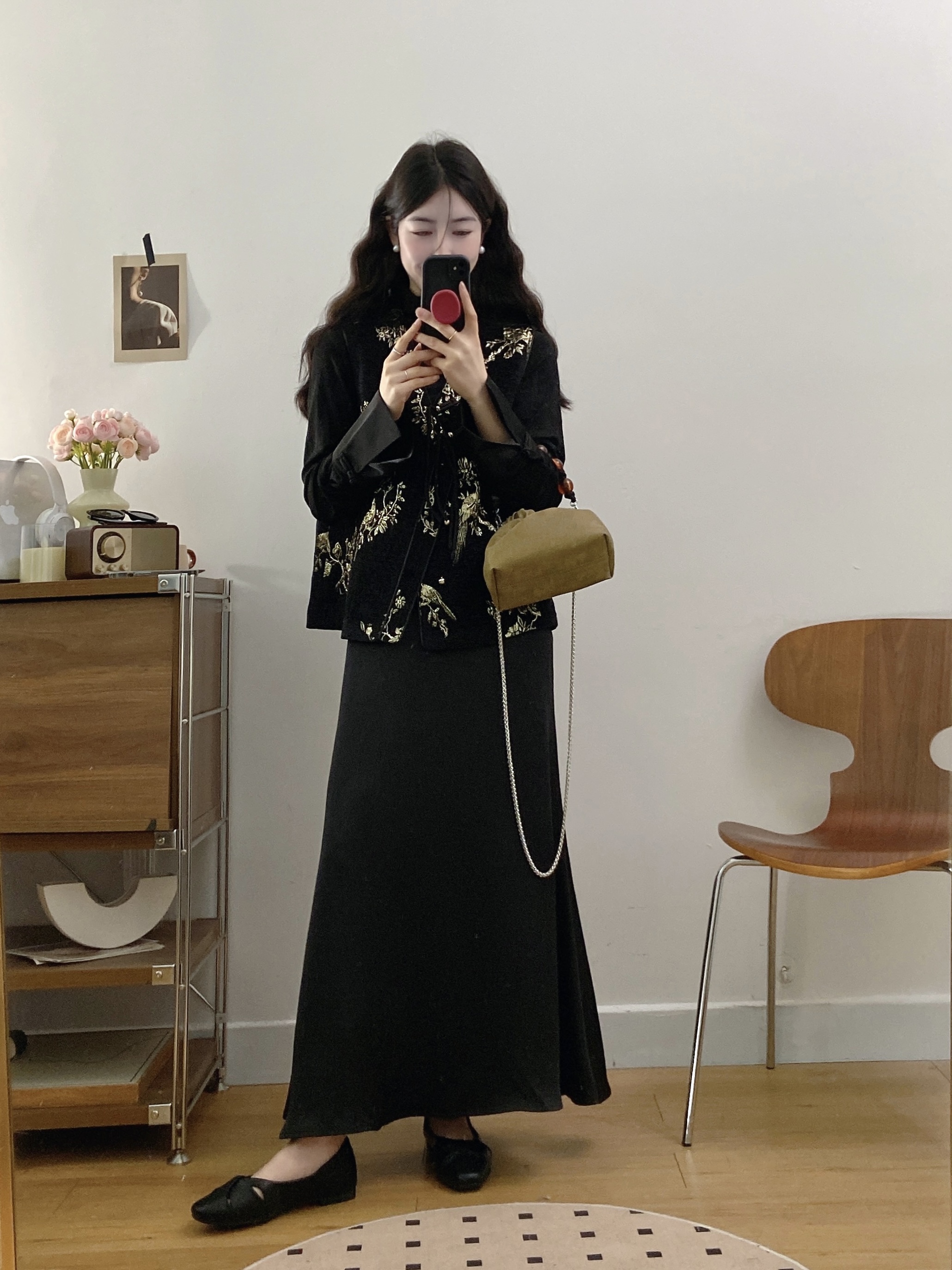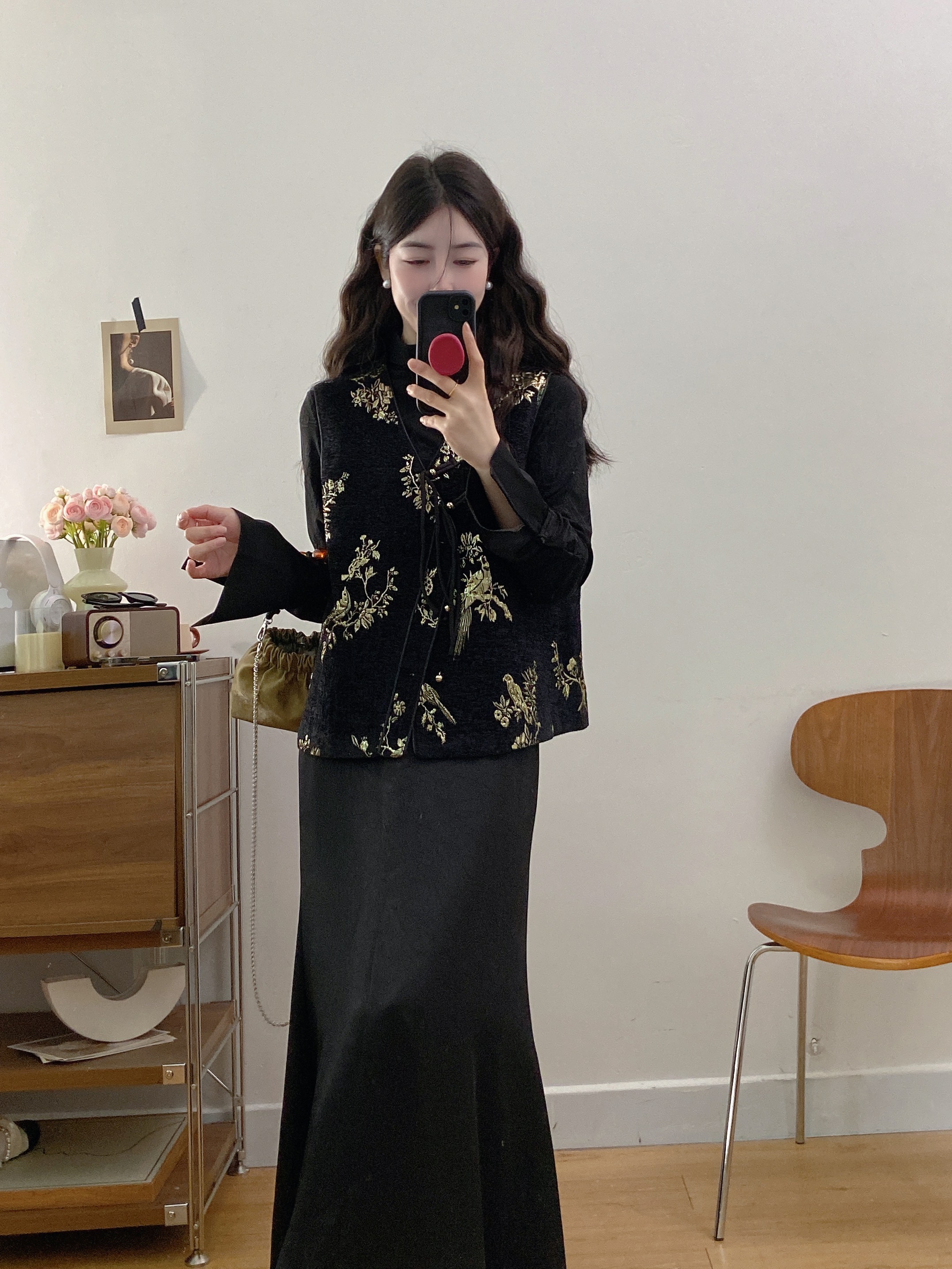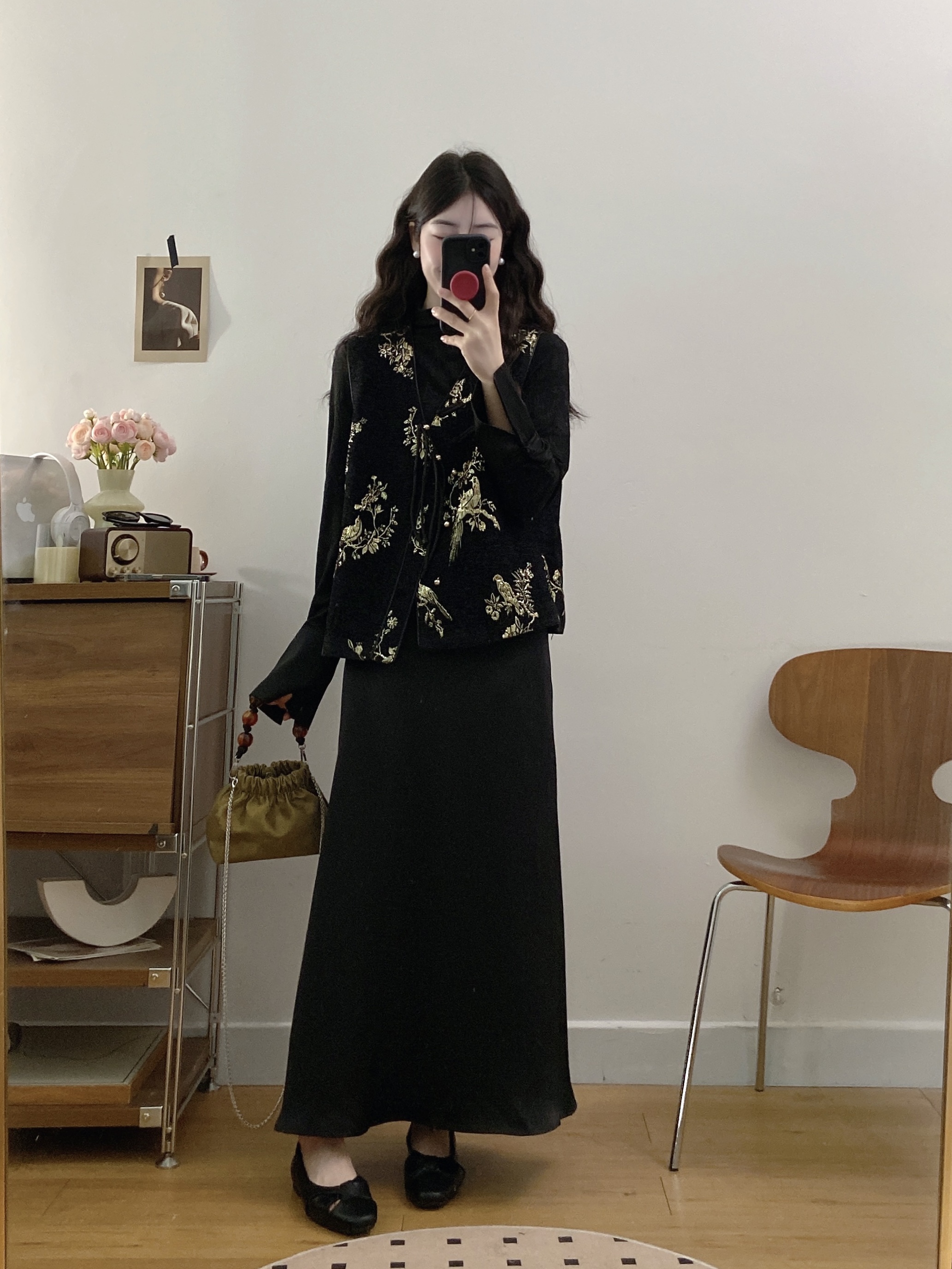 실사 빅 사이즈 여성 의류 2026 봄 새로운 새로운 중식 국풍 베스트 하이웨이스트 슬림해 보이는 반신 스커트 3종 세트