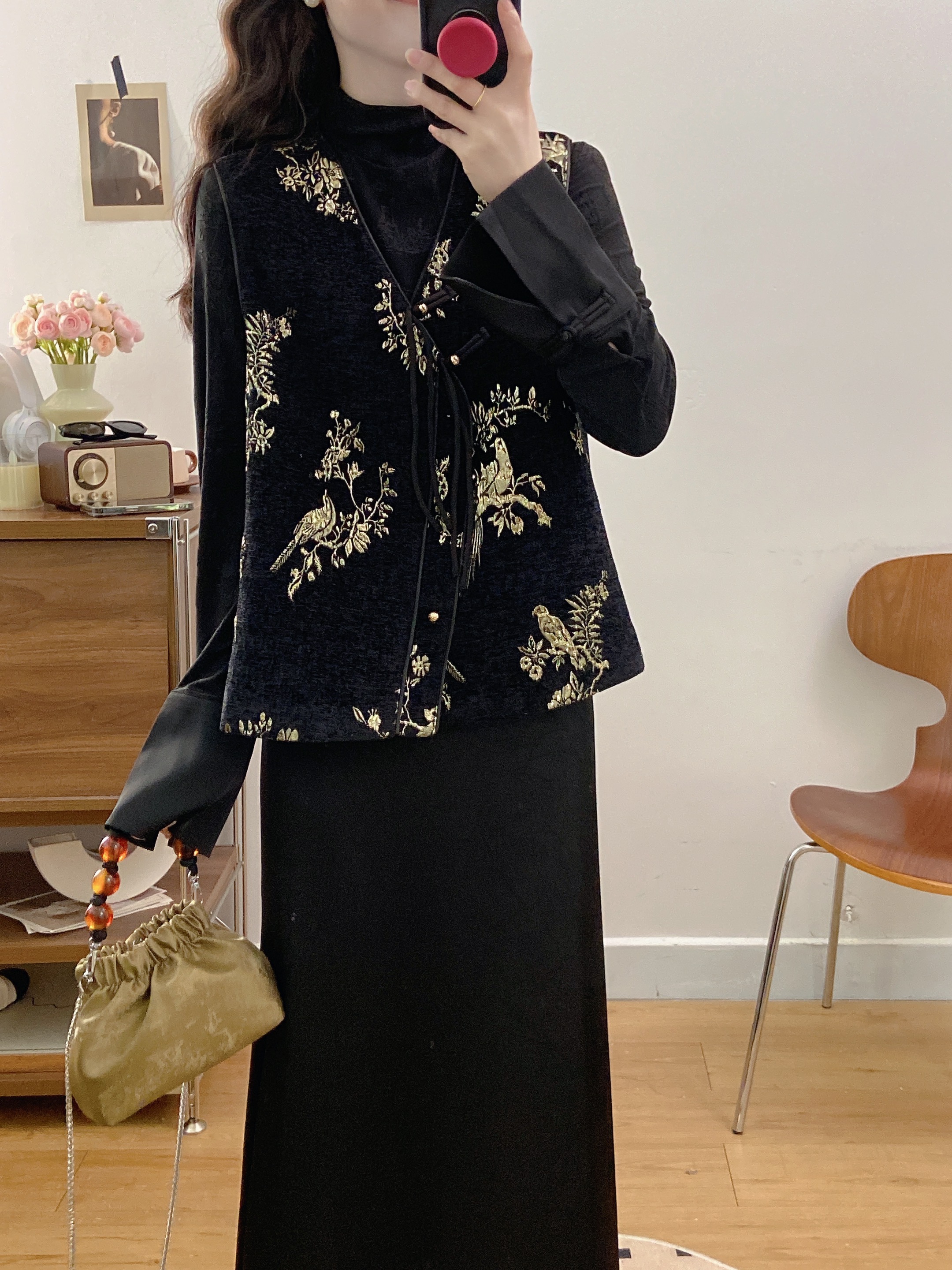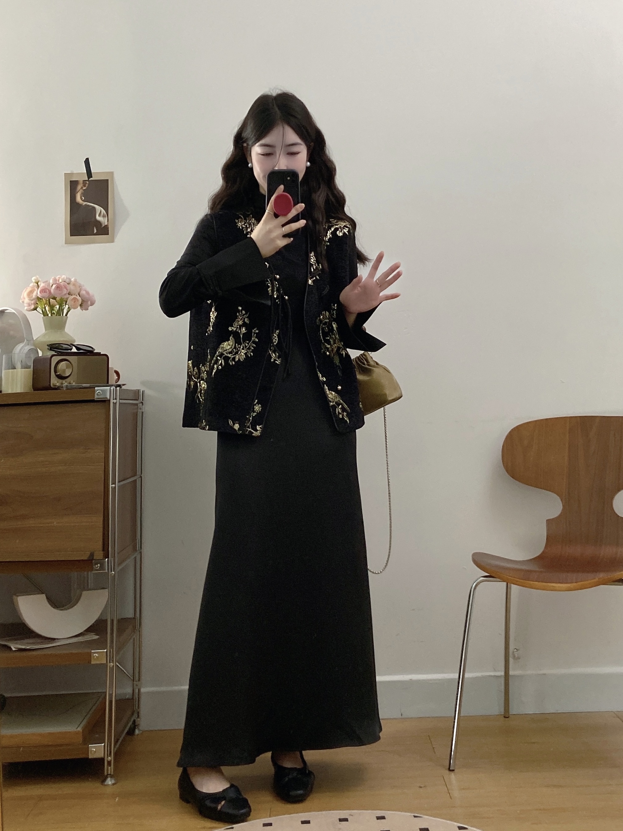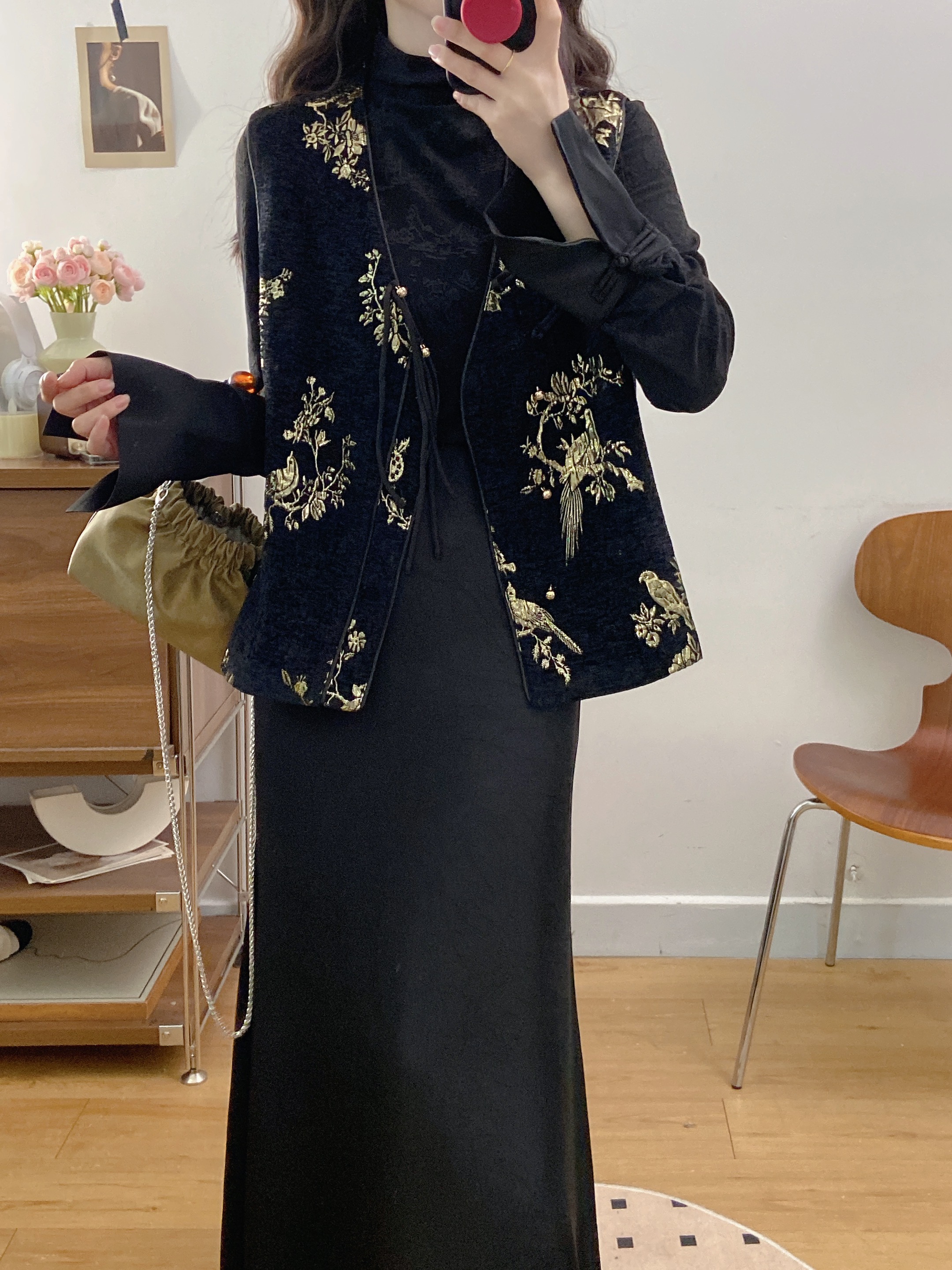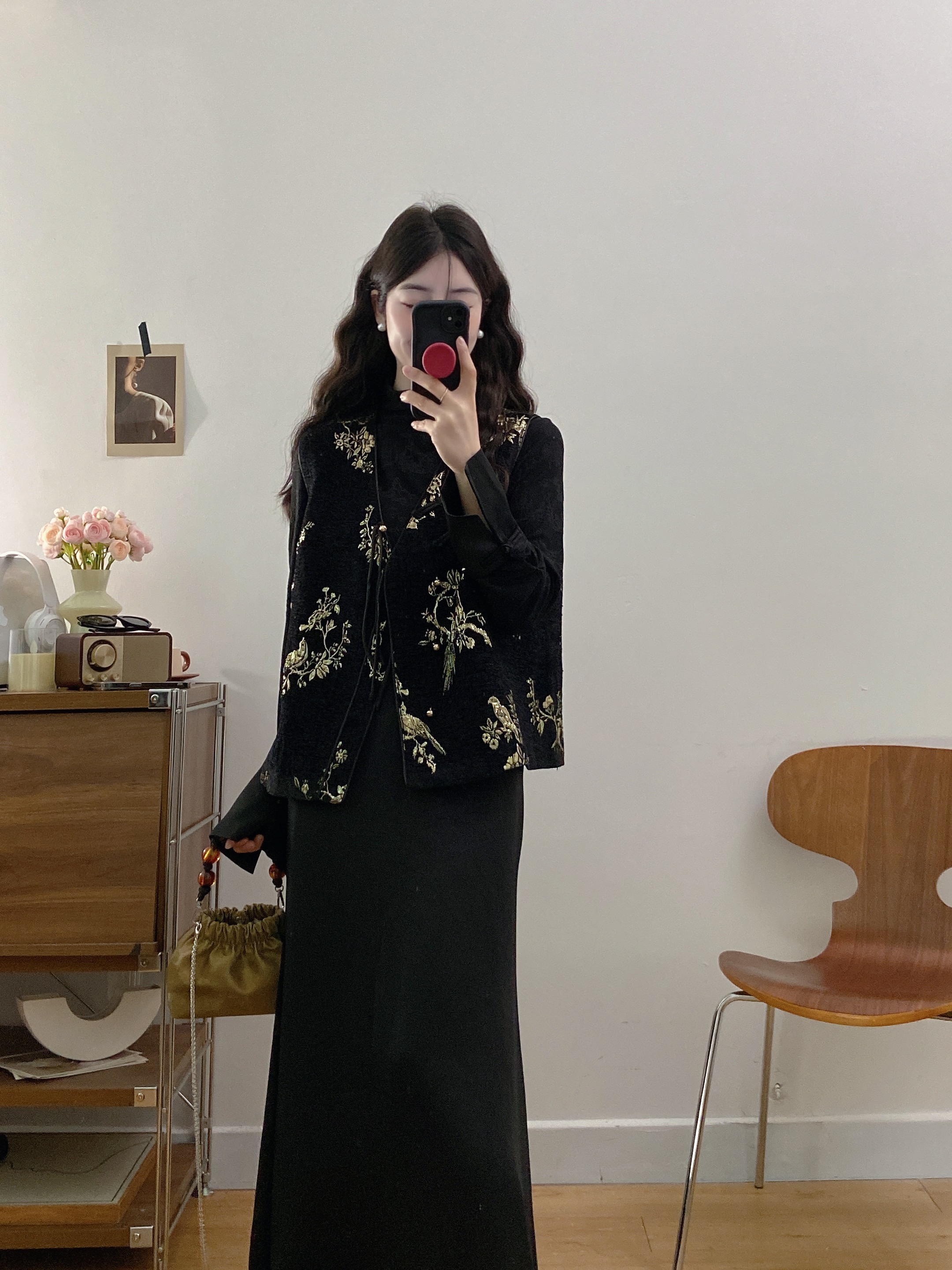 실사 빅 사이즈 여성 의류 2026 봄 새로운 새로운 중식 국풍 베스트 하이웨이스트 슬림해 보이는 반신 스커트 3종 세트