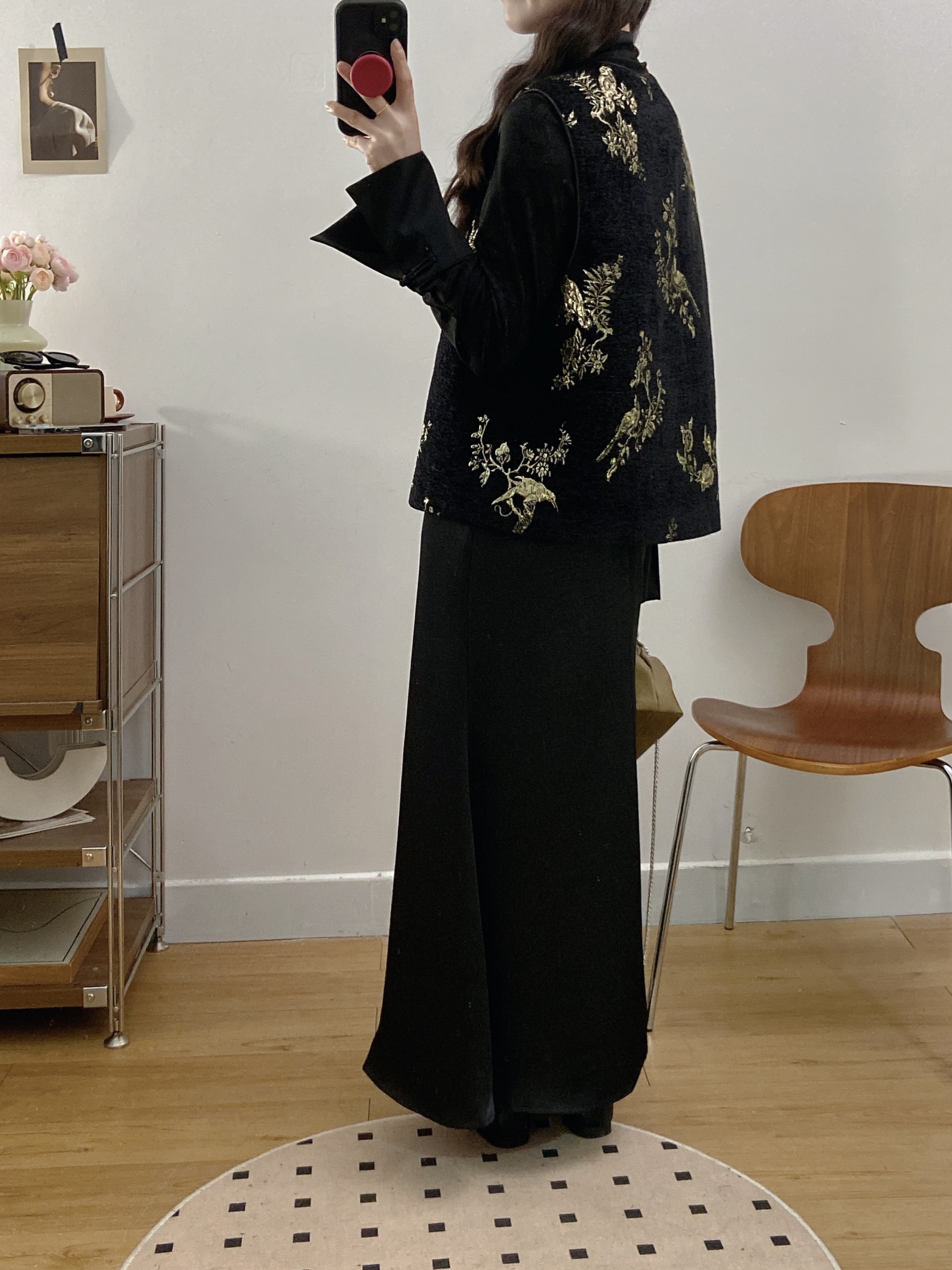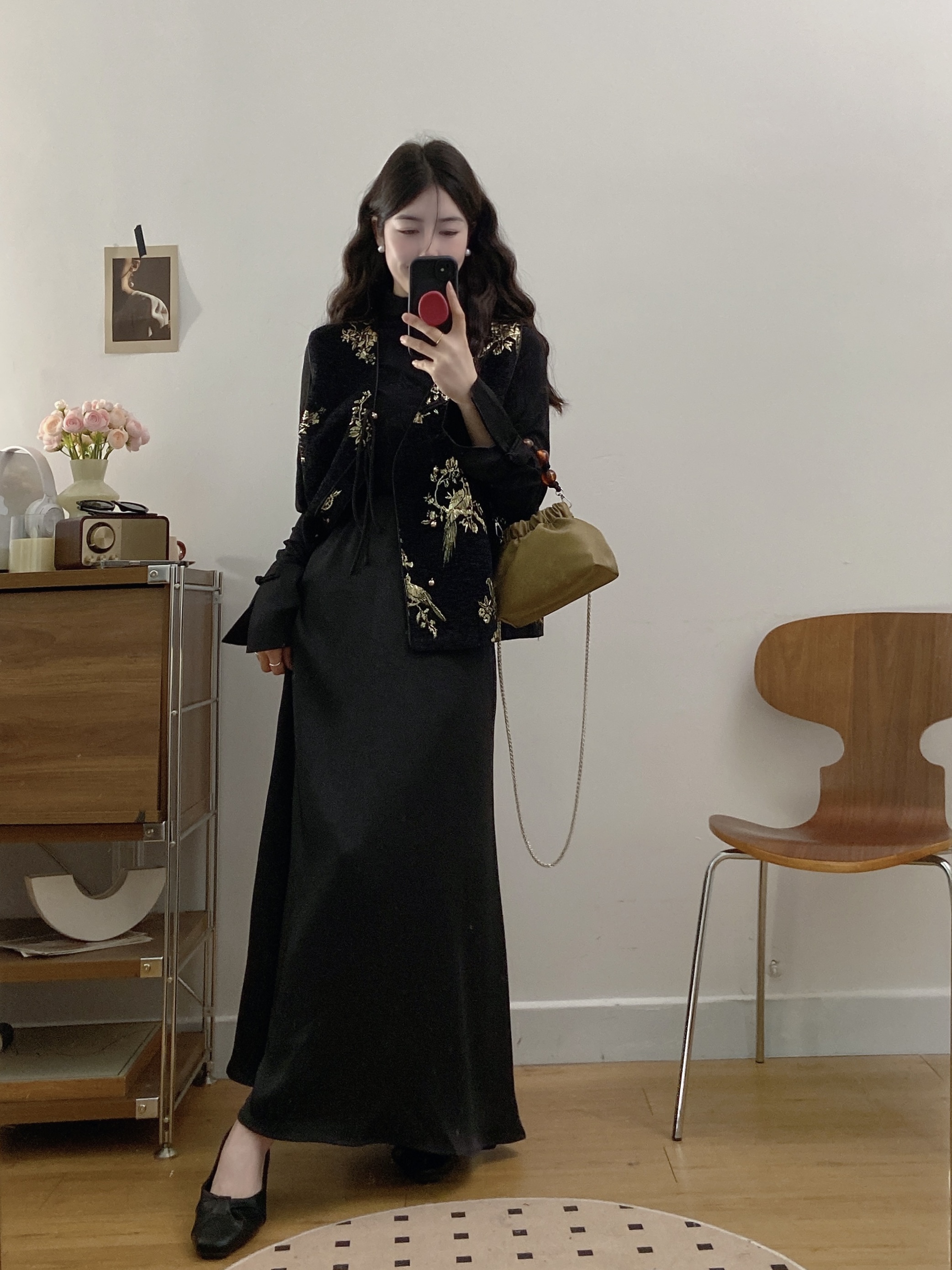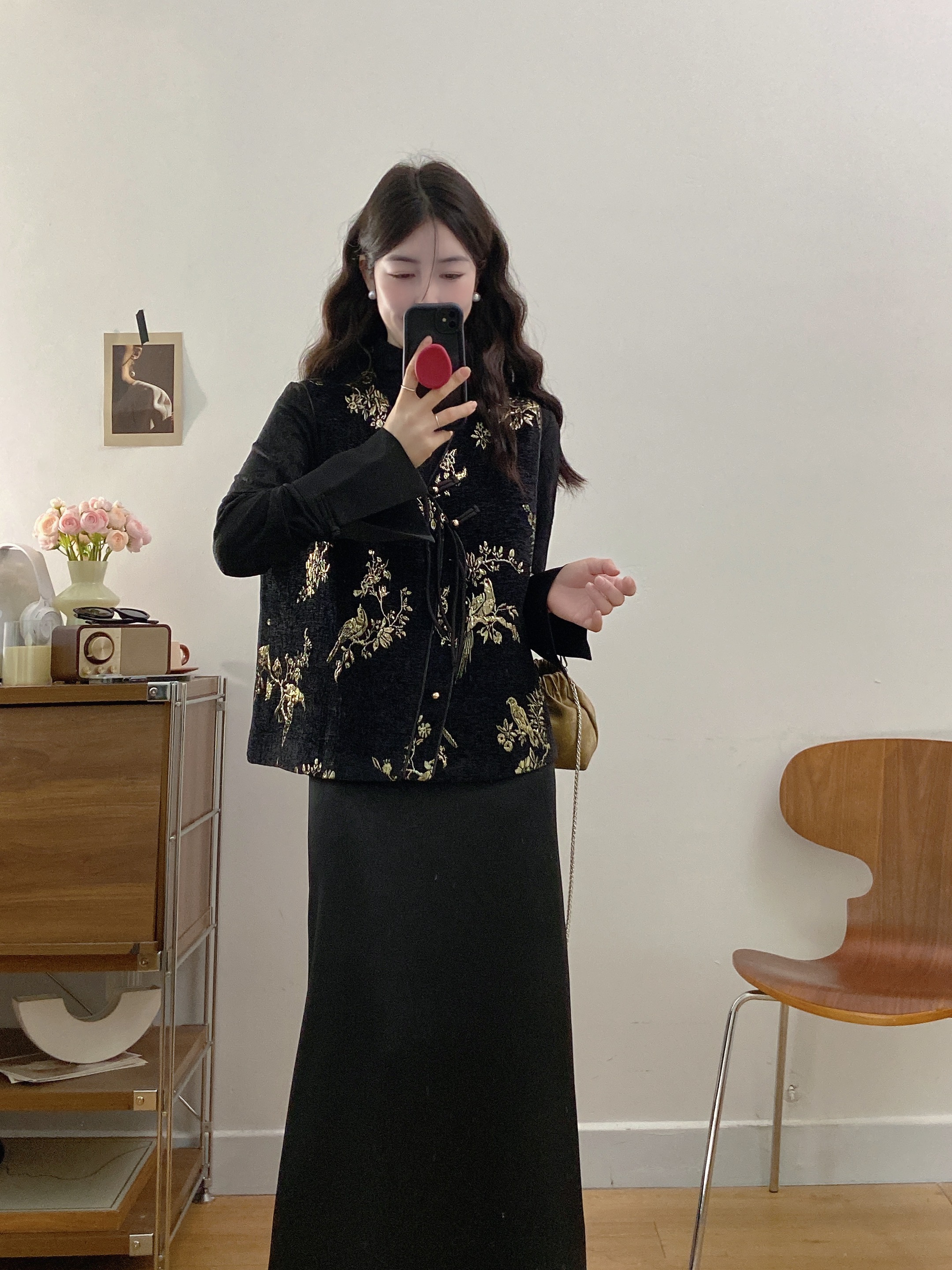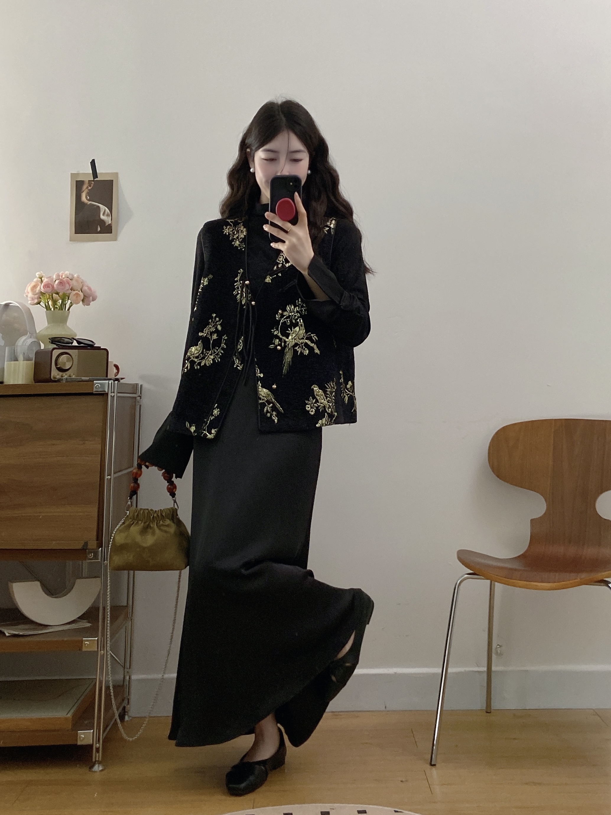 실사 빅 사이즈 여성 의류 2026 봄 새로운 새로운 중식 국풍 베스트 하이웨이스트 슬림해 보이는 반신 스커트 3종 세트