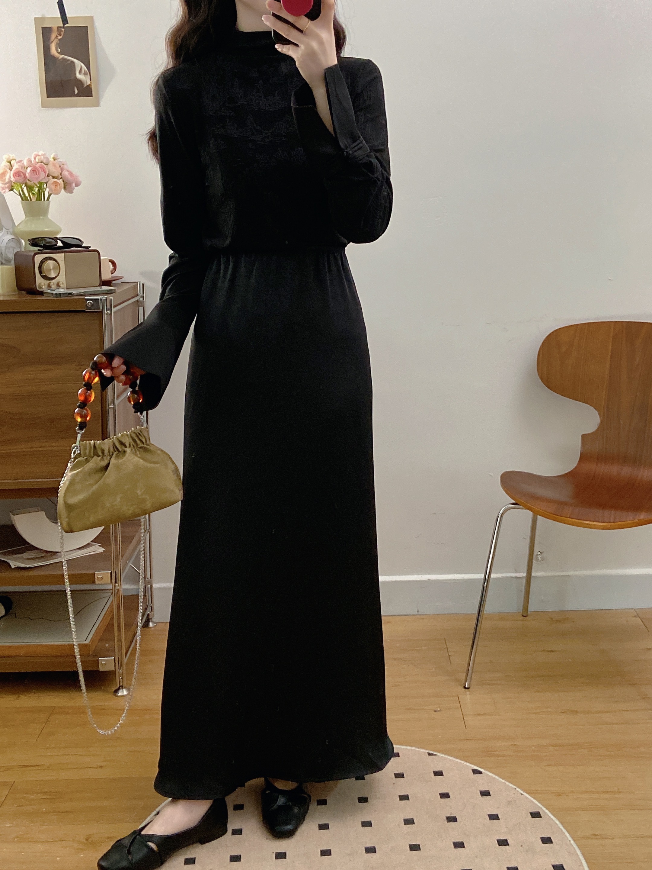 실사 빅 사이즈 여성 의류 2026 봄 새로운 한 부서 품격 후드 티 스웨터 슬림해 보이는 슬립 드레스 투피스 세트