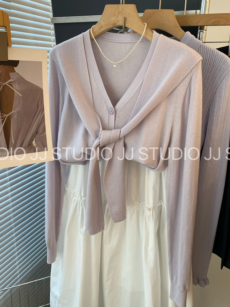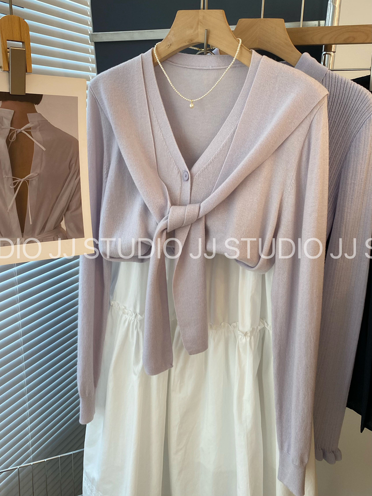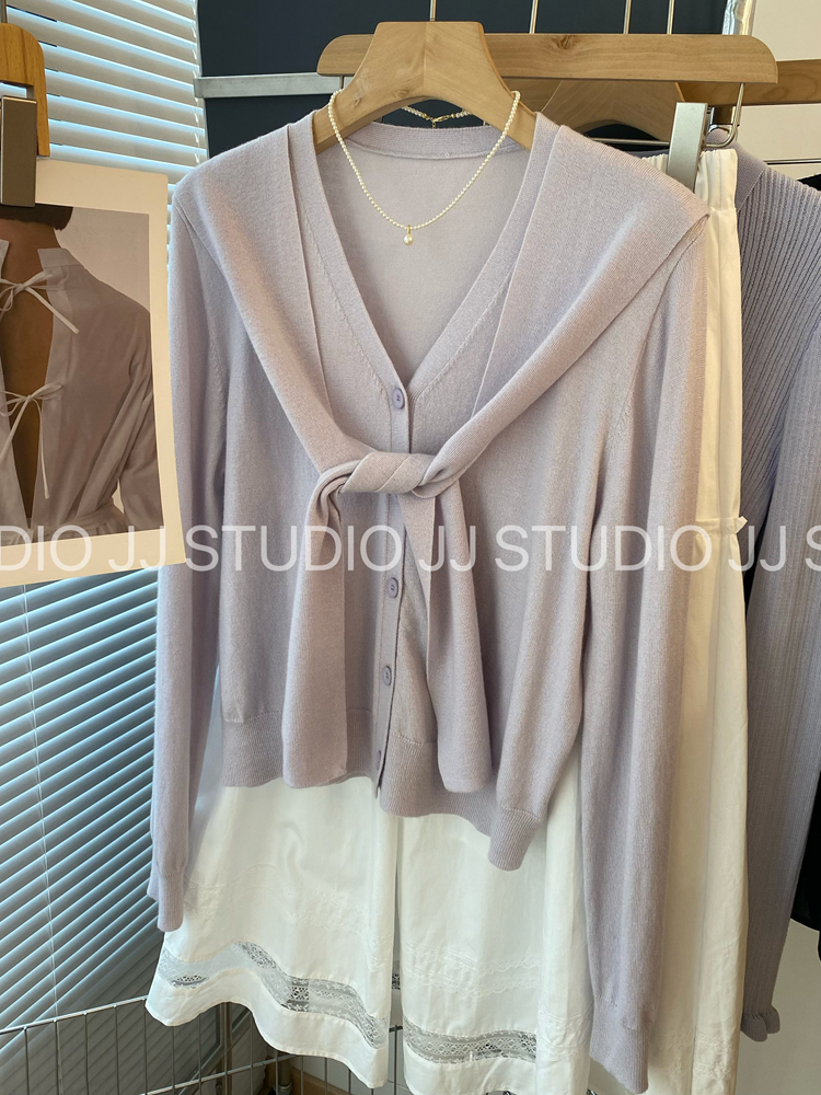 프랑스식 사소한 화이트 레이스 조각 폴로 칼라 니트 오픈 가디건 여성 봄 몸매 가꾸기 다용도 캐주얼 기본 셔츠 맨위