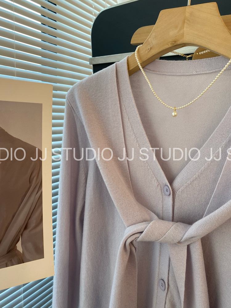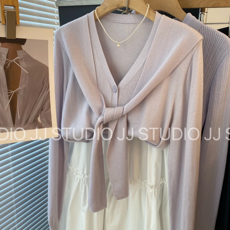 녹색 패치워크 페이크 레이어드 니트 오픈 가디건 여성 2026 년 봄 여름 새로운 한 부서 품격 캐주얼 연령 감소 맨위