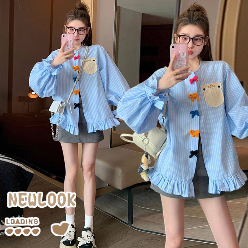 실사 2026 봄 새로운 임산부 한국 스타일 프랑스식 부드러운 스탠드 칼라 인형 셔츠 맨위