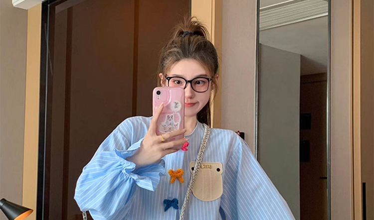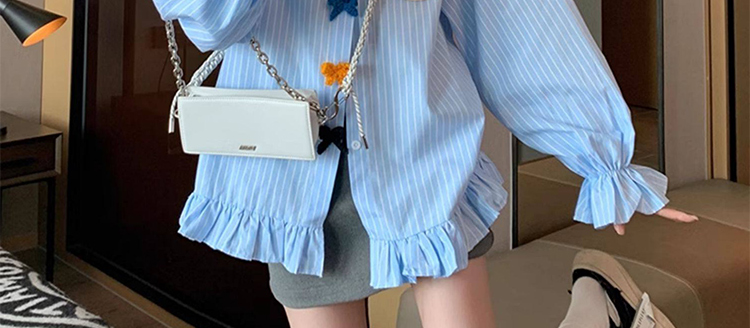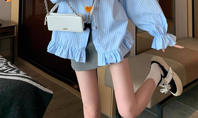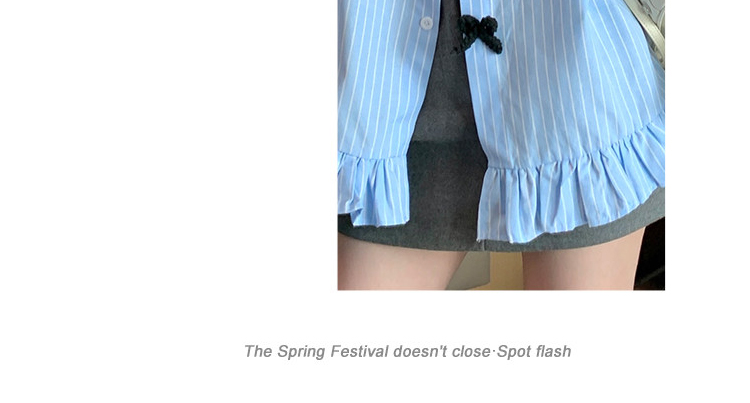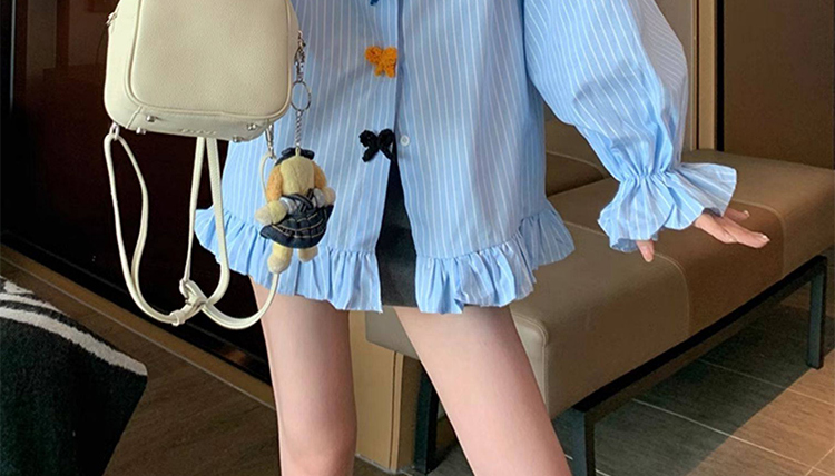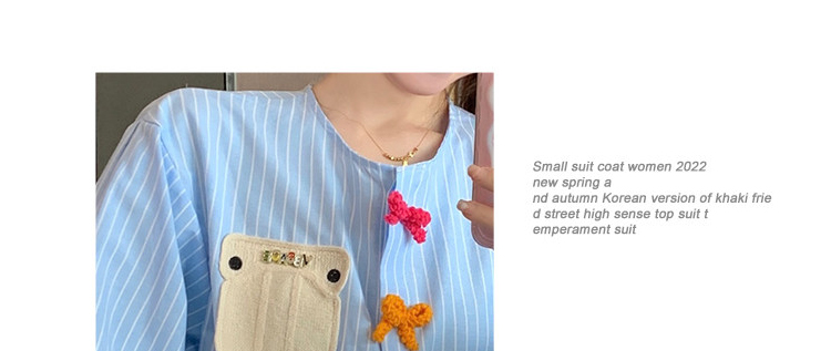 봄 파란색 스트라이프 나비 매듭 디자인 센스 셔츠 새로운 디자인 센스 프랑스식 고급 센스 빛 럭셔리 한국 스타일 맨위