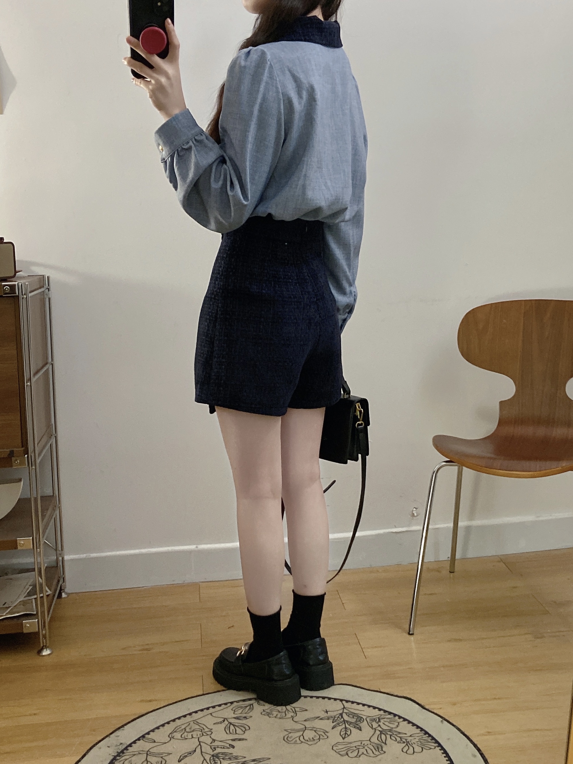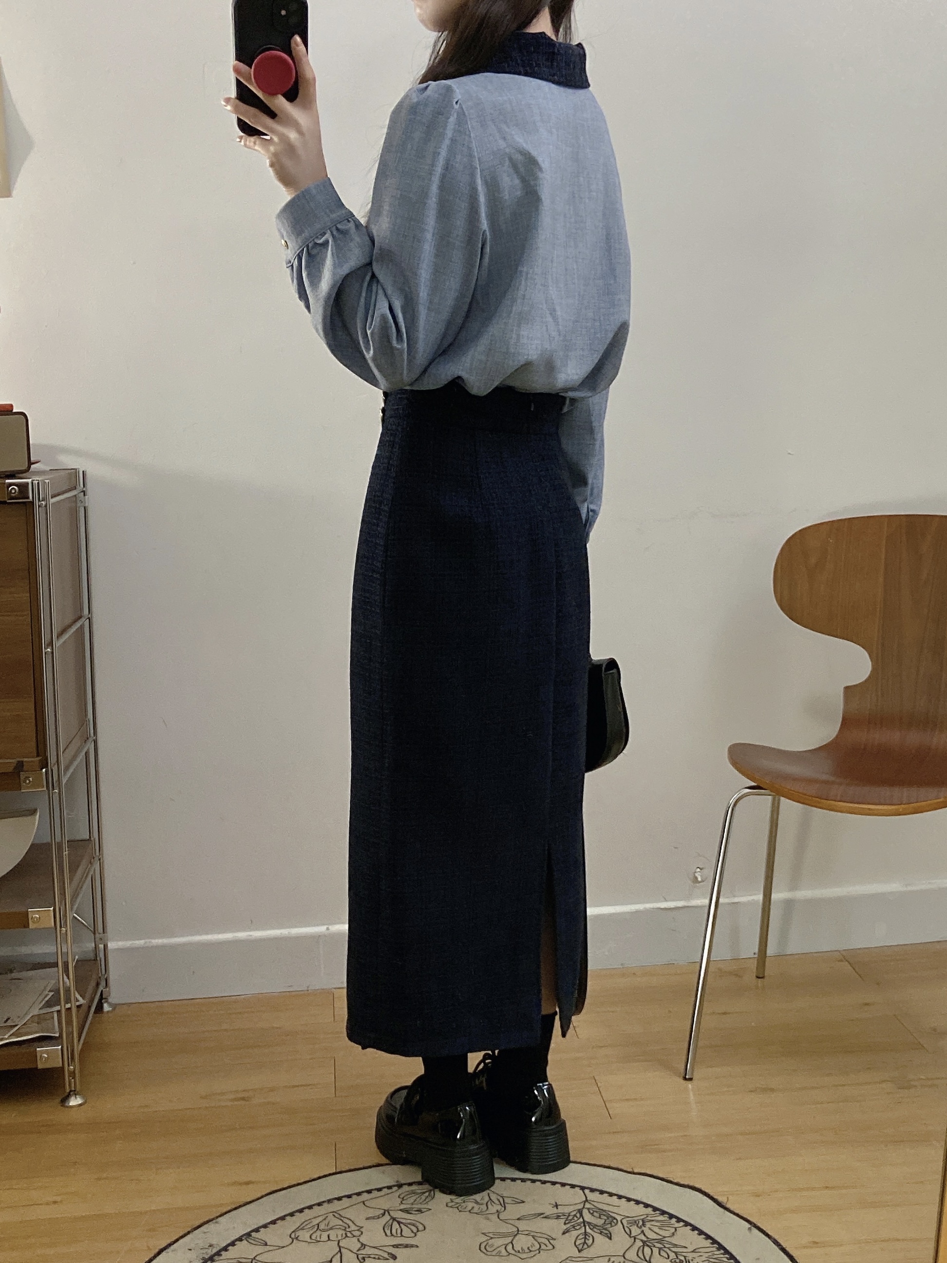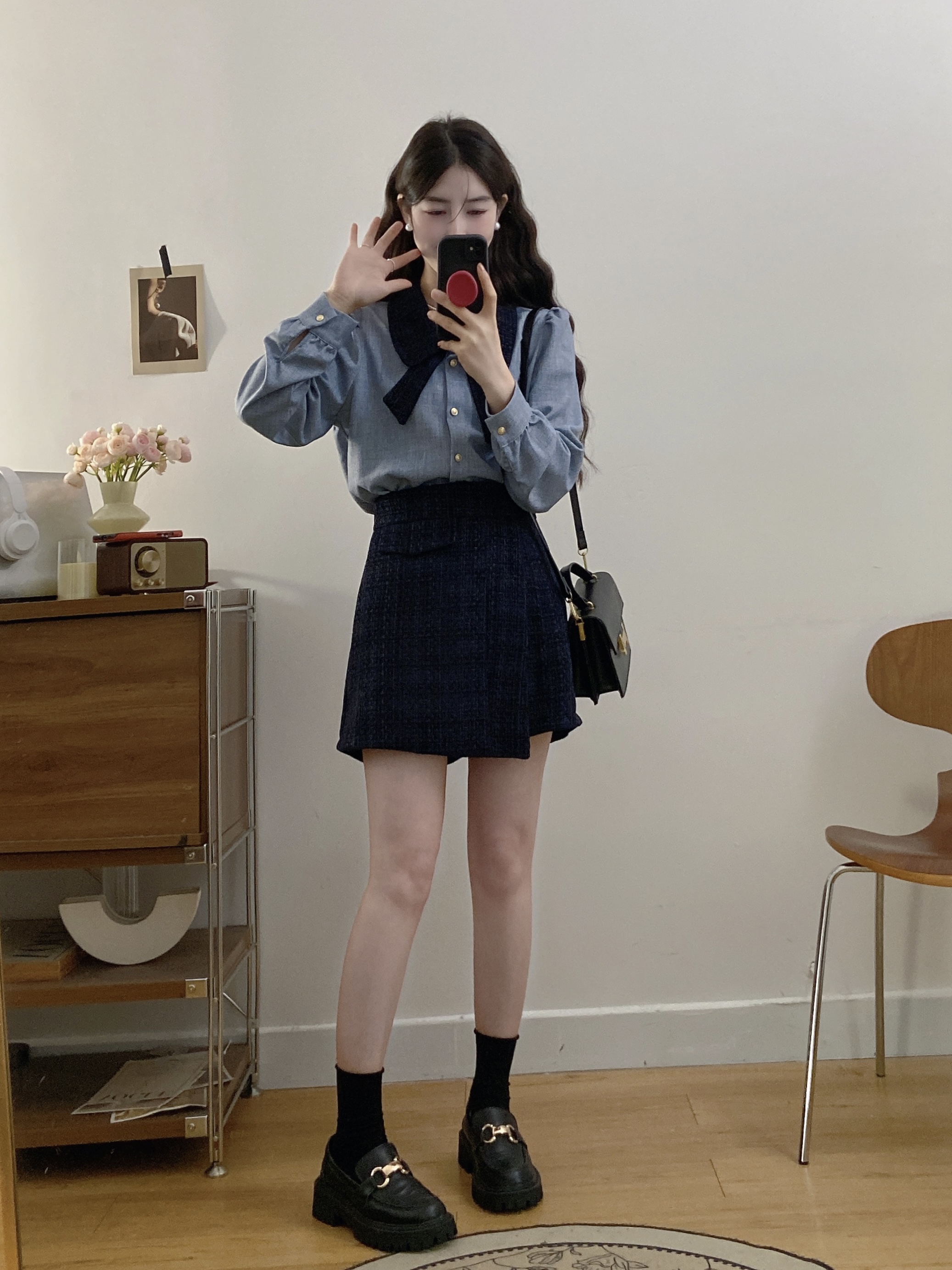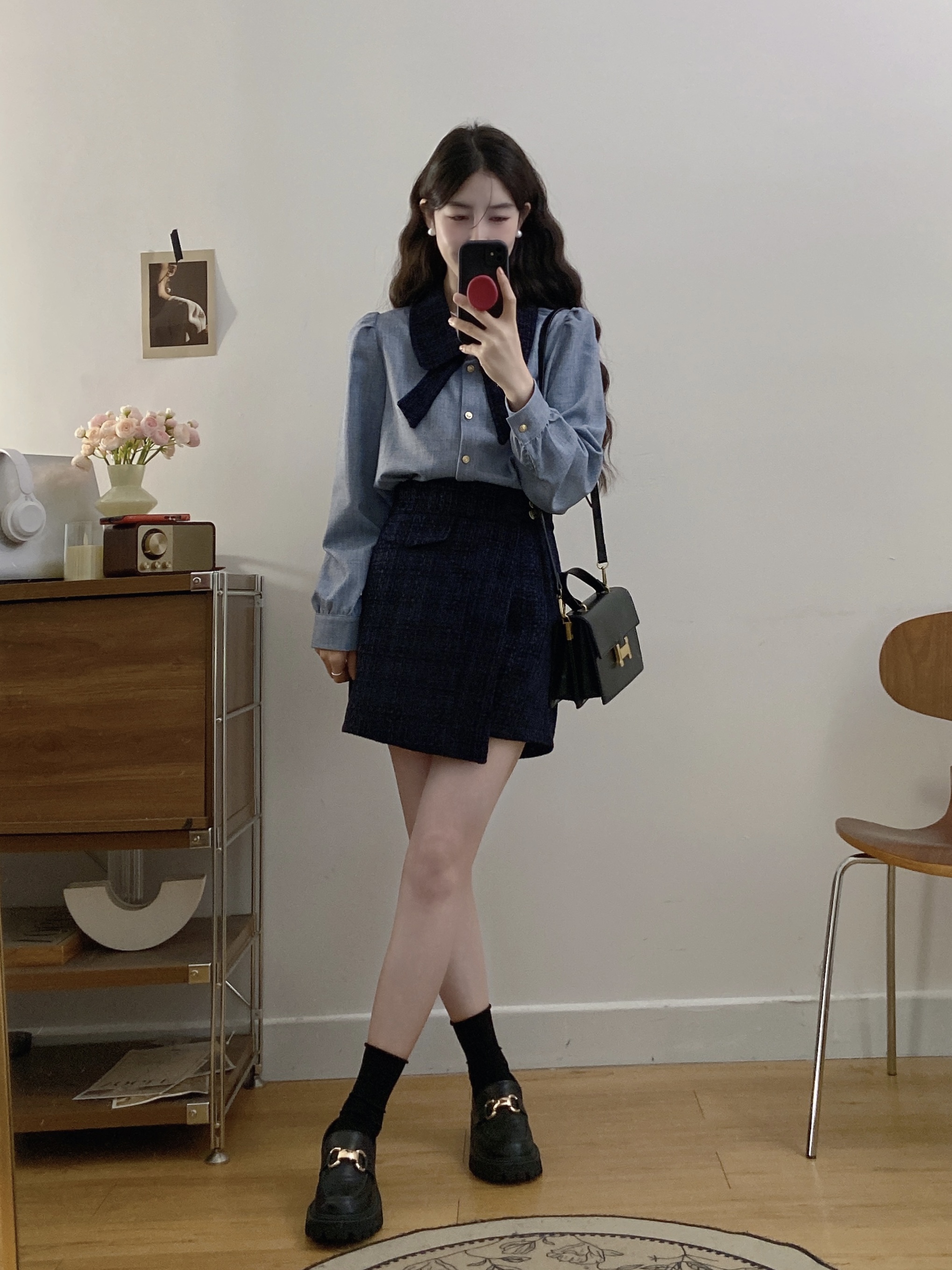 실사 빅 사이즈 여성 의류 2026 봄 새로운 한 부서 미니멀리즘 품격 다용도 셔츠 하이웨이스트 반신 치마 세트