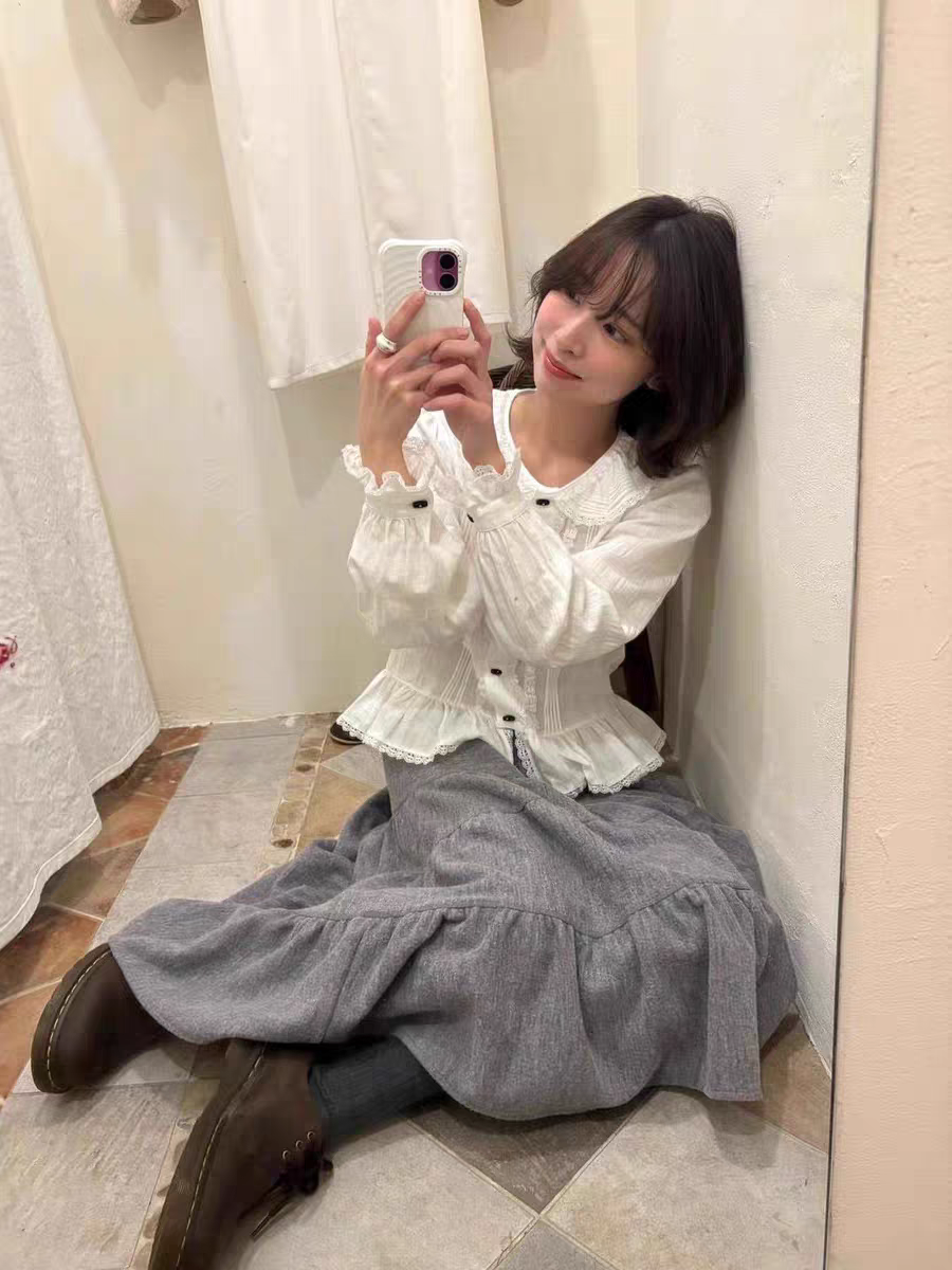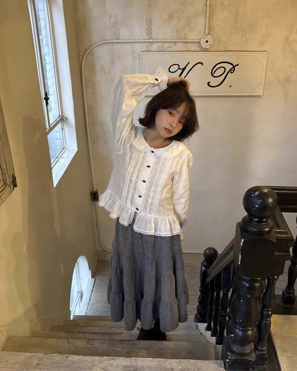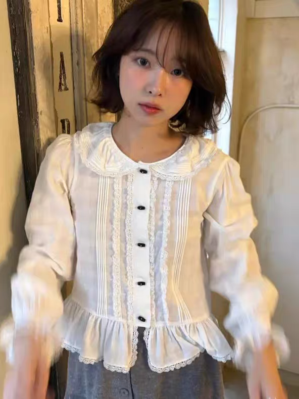 있음 선적 한국 ins 달콤함 연령 감소 작은 대중 디자인 베이비 칼라 레이스 셔츠