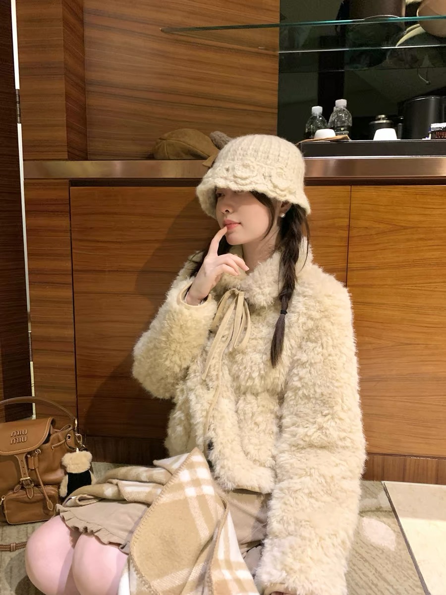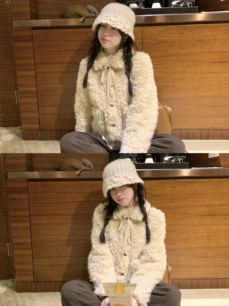 ptonumi 스노우 탑 모카 피모 하나 스트랩 짧은 여성 코트 가을 겨울 자이언트 잘 생긴 양털 플리스 면 옷