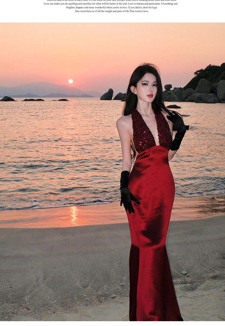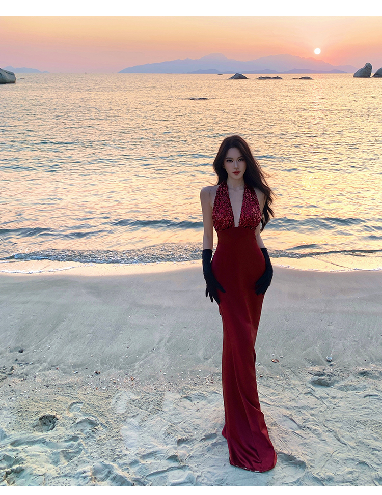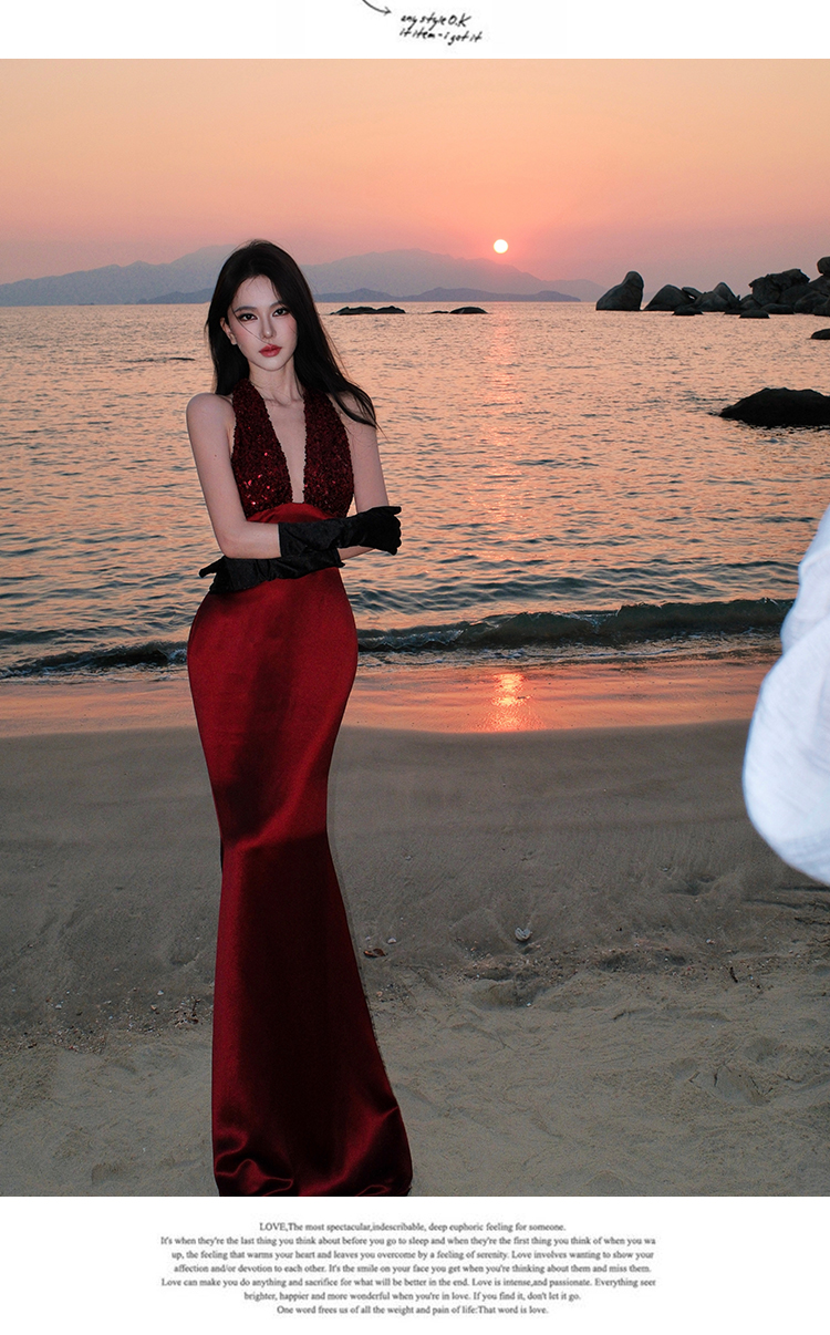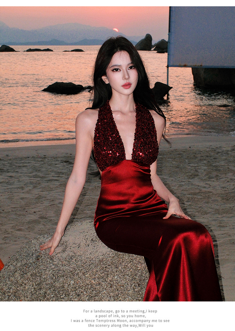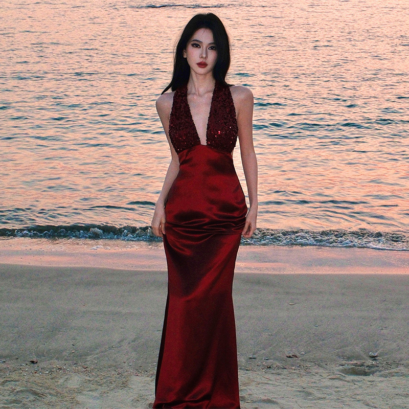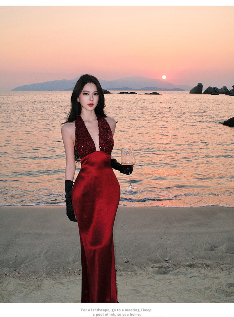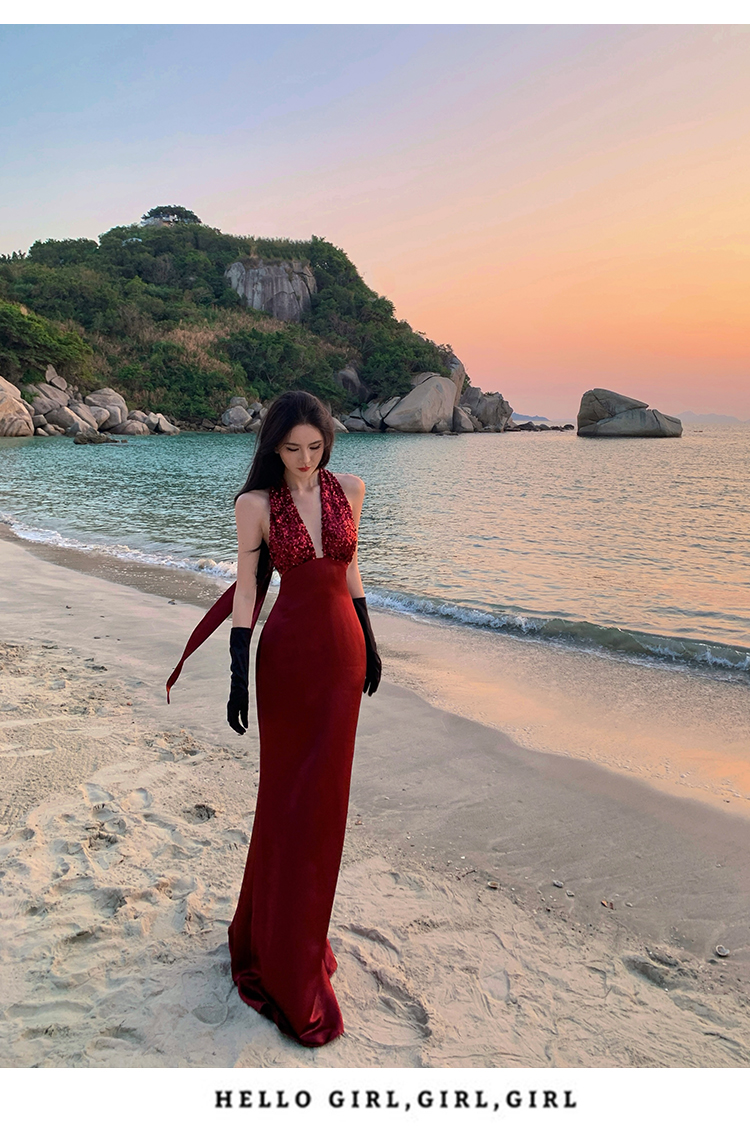프랑스식 품격 party 슬립 빛 예복 여성 드레스 작은 대중 생일 늦게 행사 치마 행침 목 롱 스커트