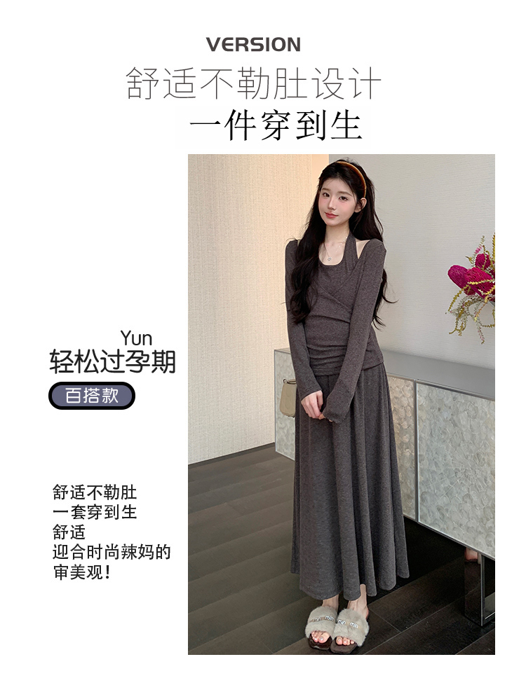 실사 xian 물품 봄 드레스 신제품 편안함 다용도 행침 목 맨위 반신 스커트 임산부 세트