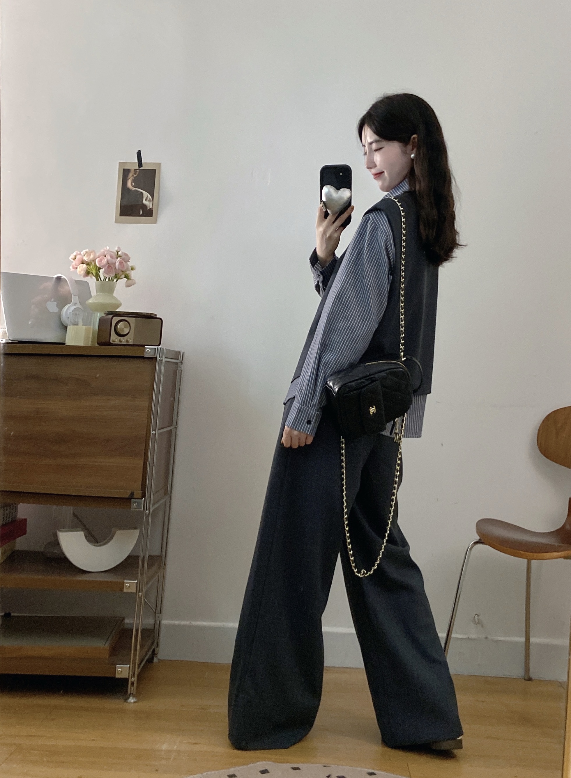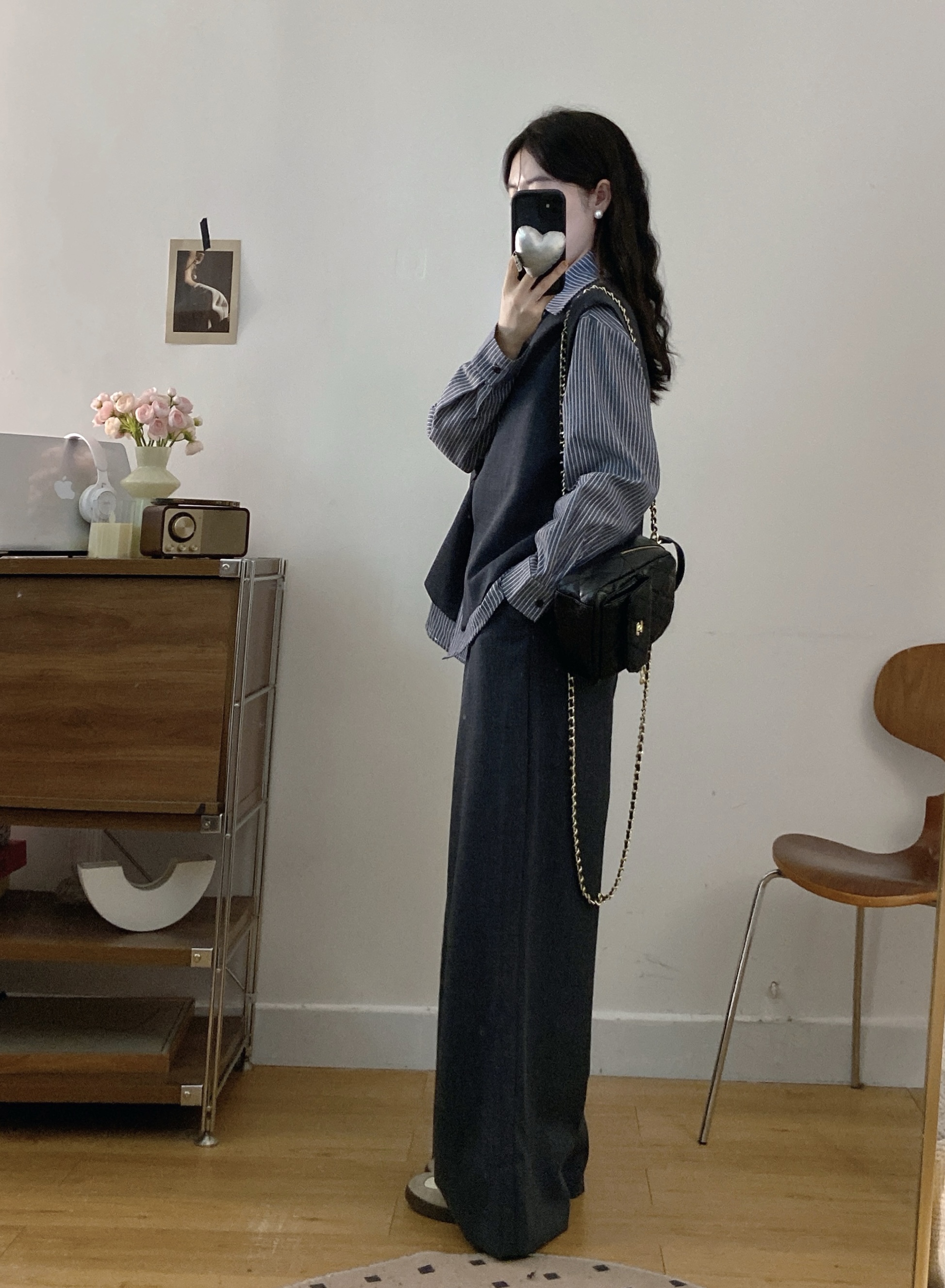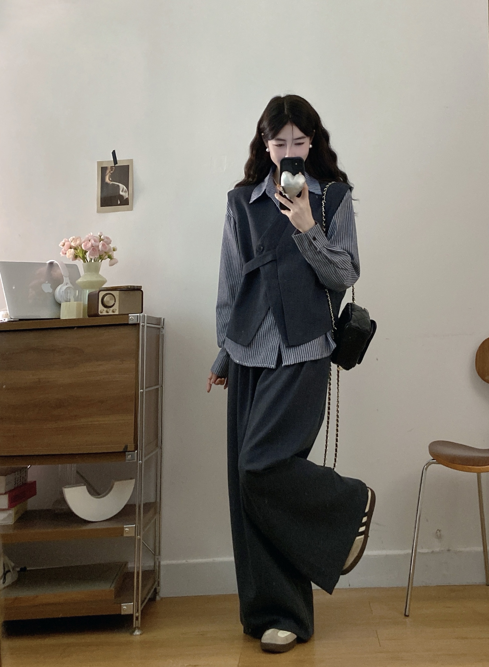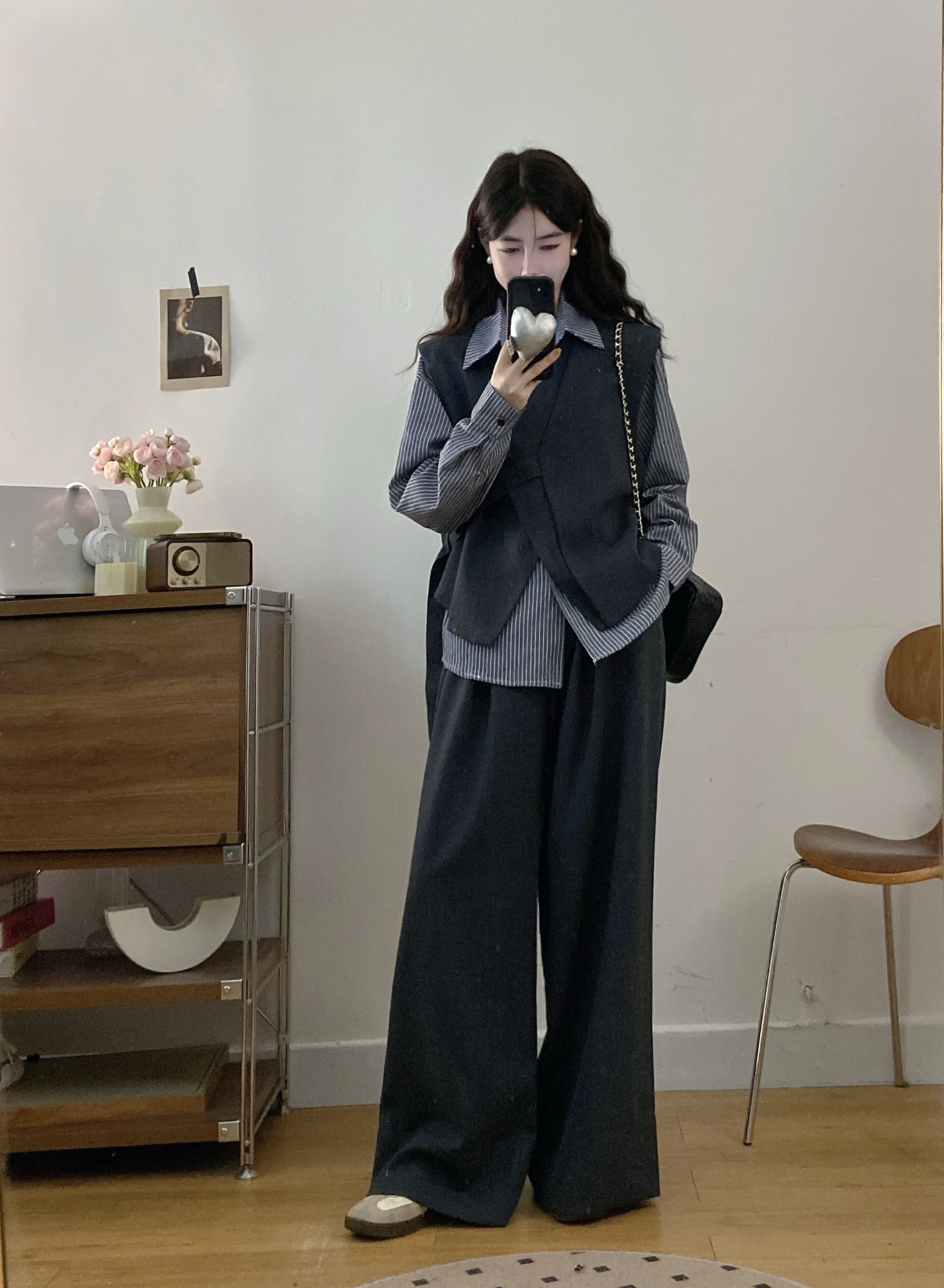 실사 빅 사이즈 여성 의류 2026 봄 새로운 한국 스타일 고급 센스 베스트 셔츠 와이드 레그 팬츠 3종 세트