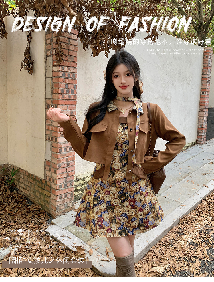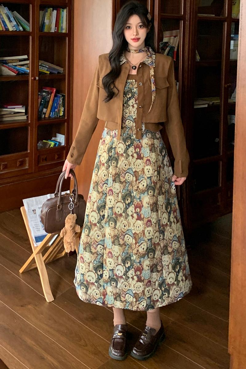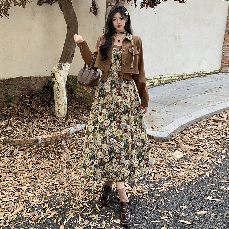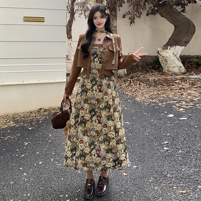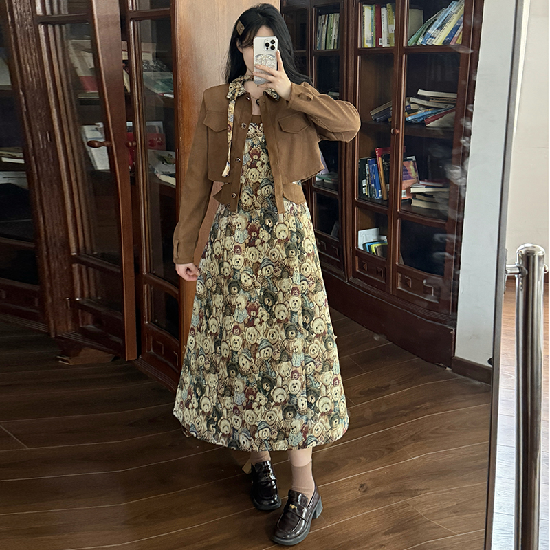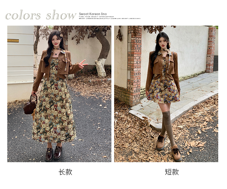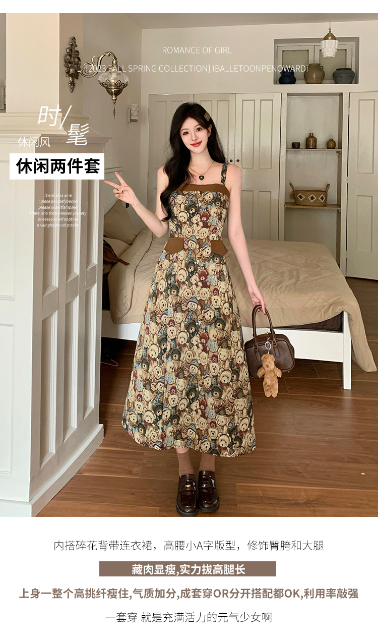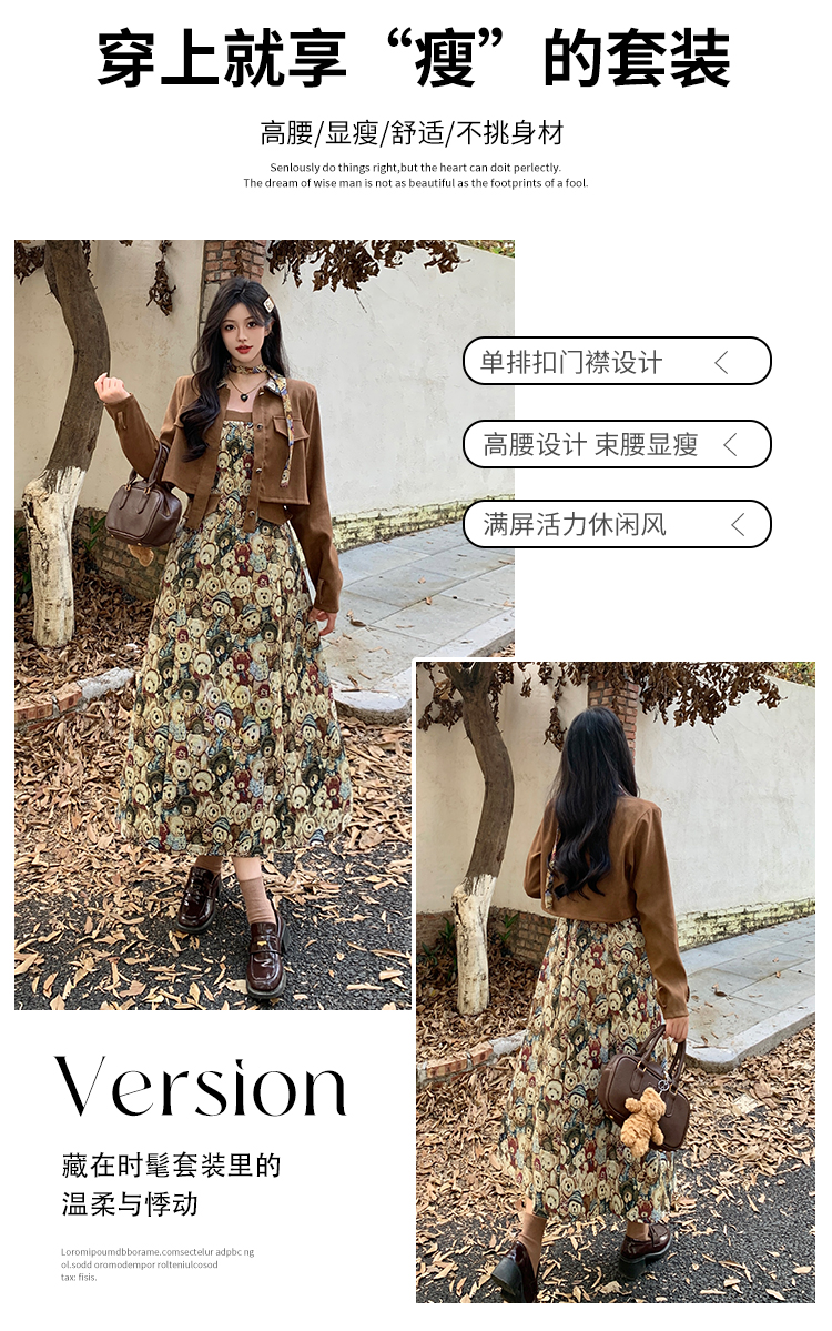 실사 스웨이드 원단 베스트 세트 여성 드레스 봄 한 부서 느긋한 바람 휴가 전원 빅 사이즈 투피스 세트