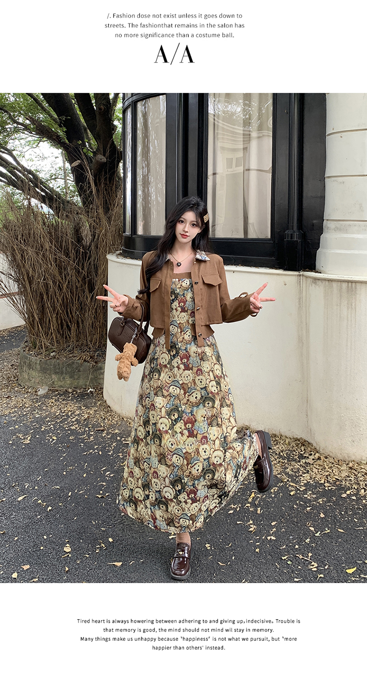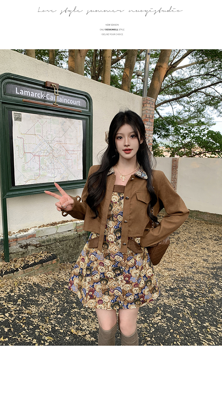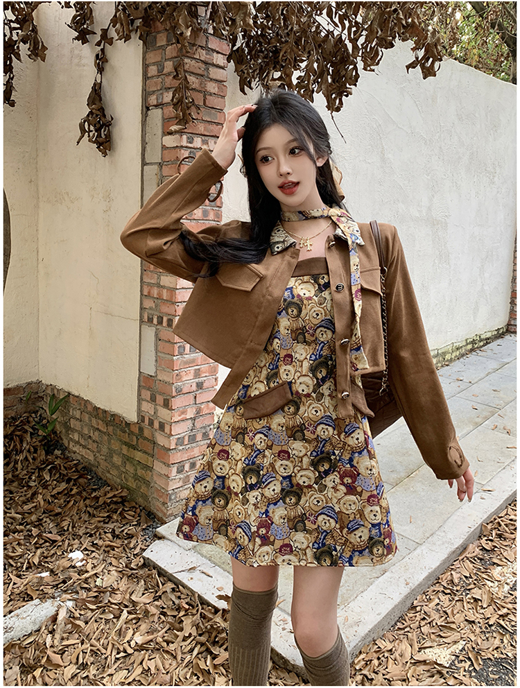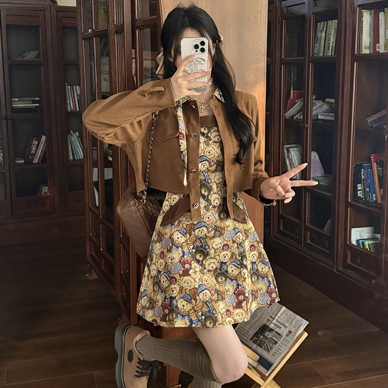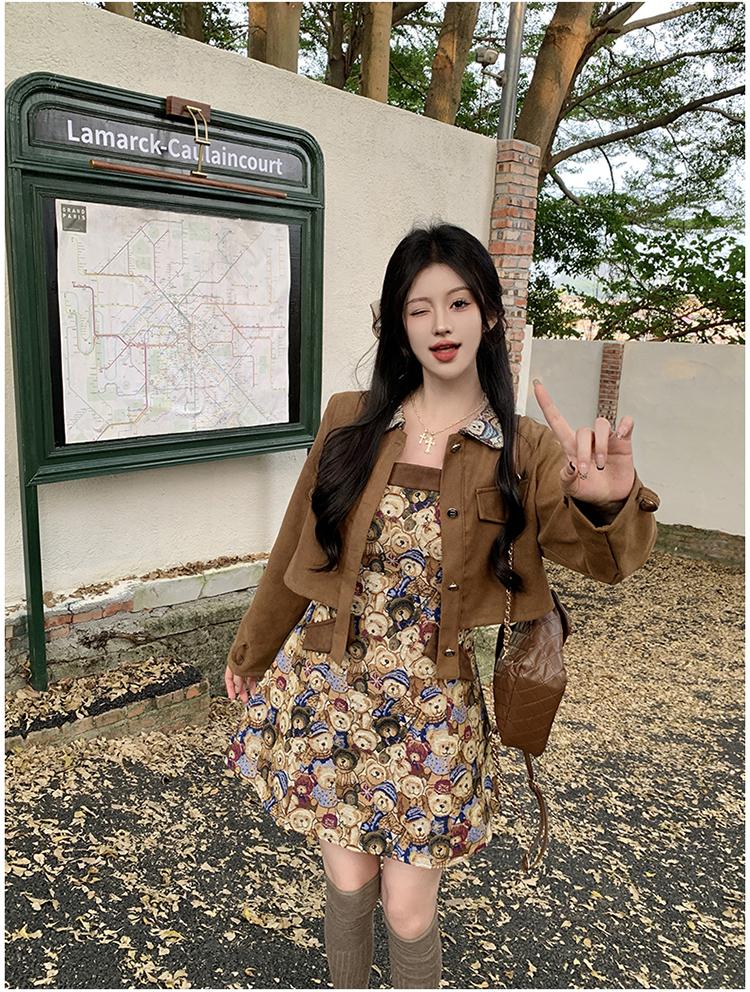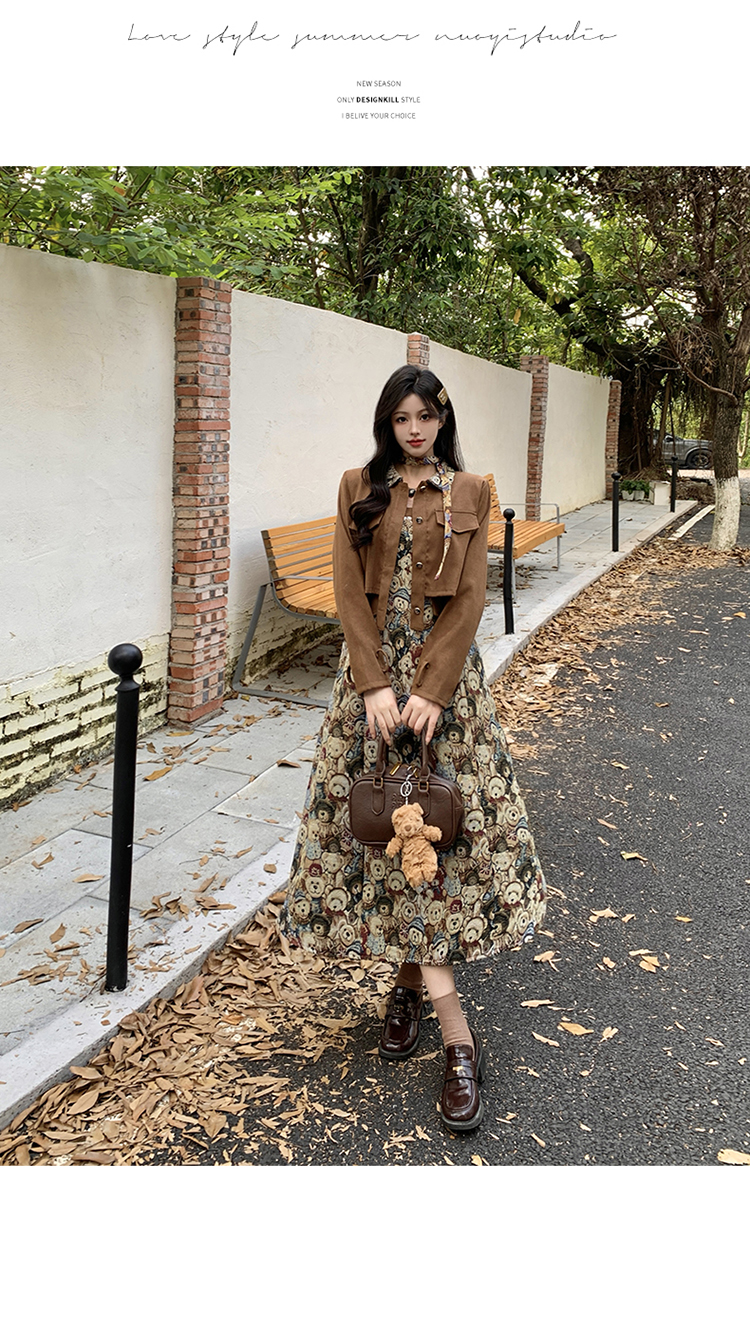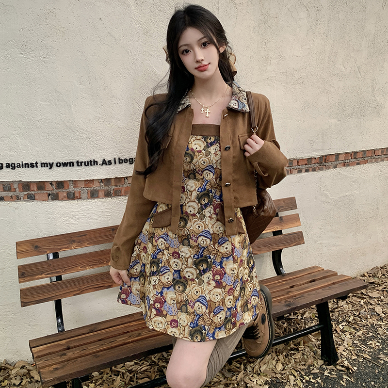 실사 스웨이드 원단 베스트 세트 여성 드레스 봄 한 부서 느긋한 바람 휴가 전원 빅 사이즈 투피스 세트