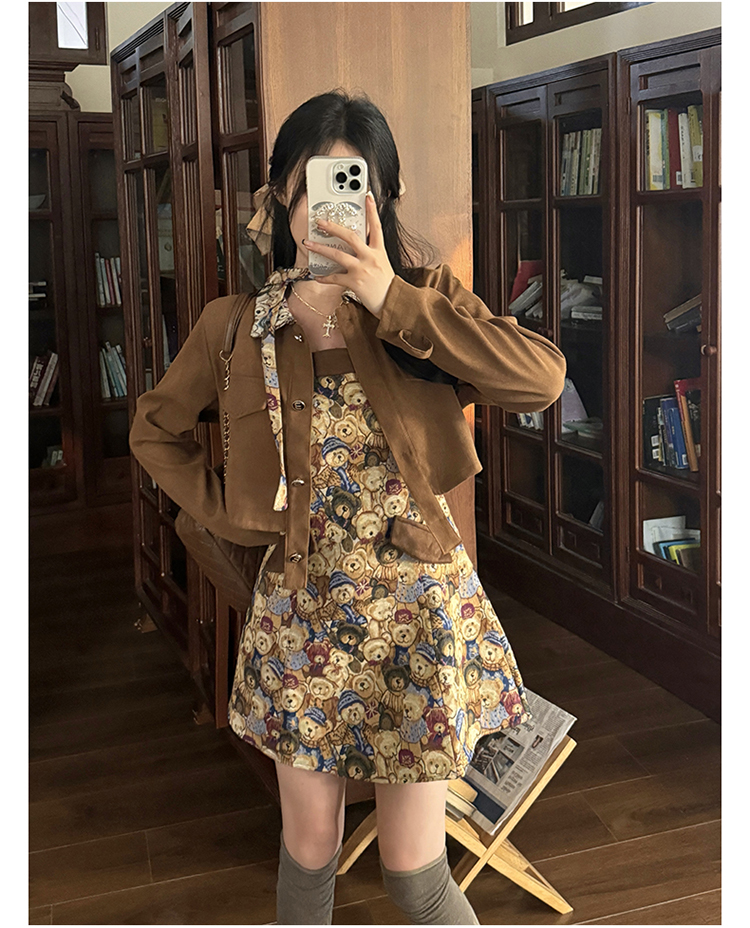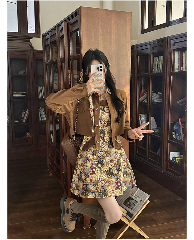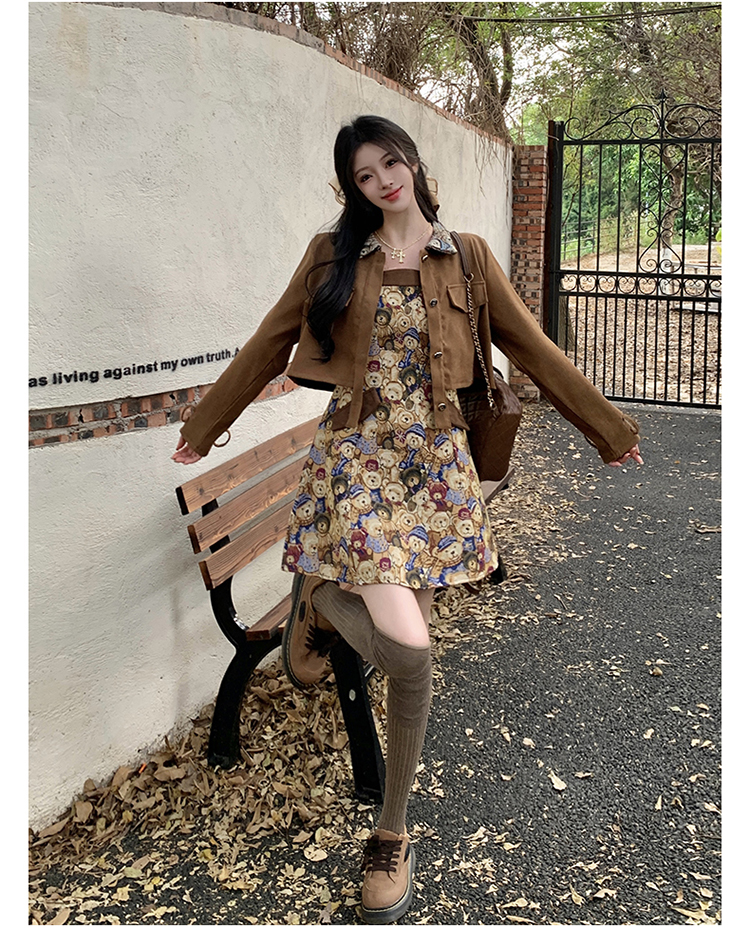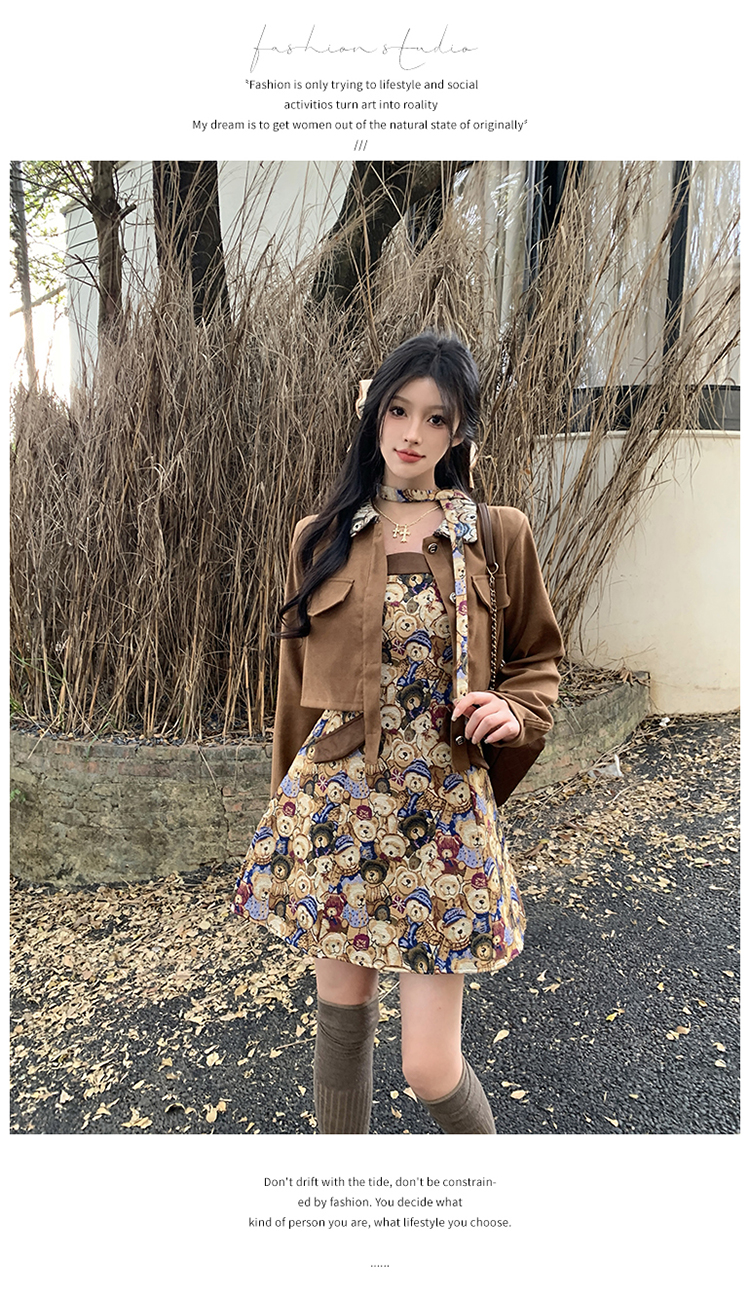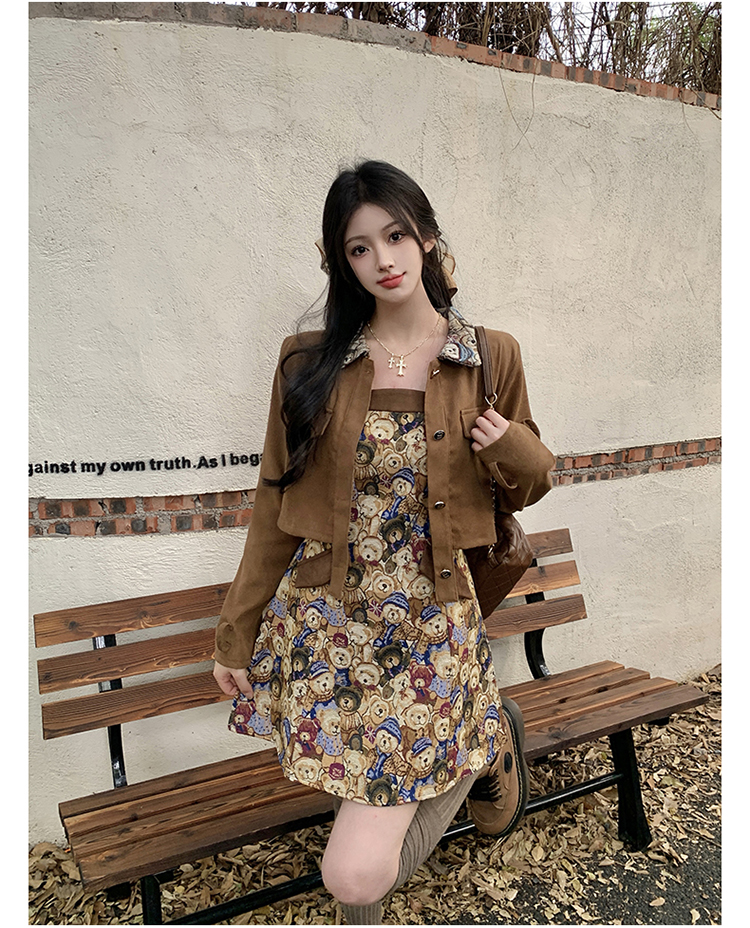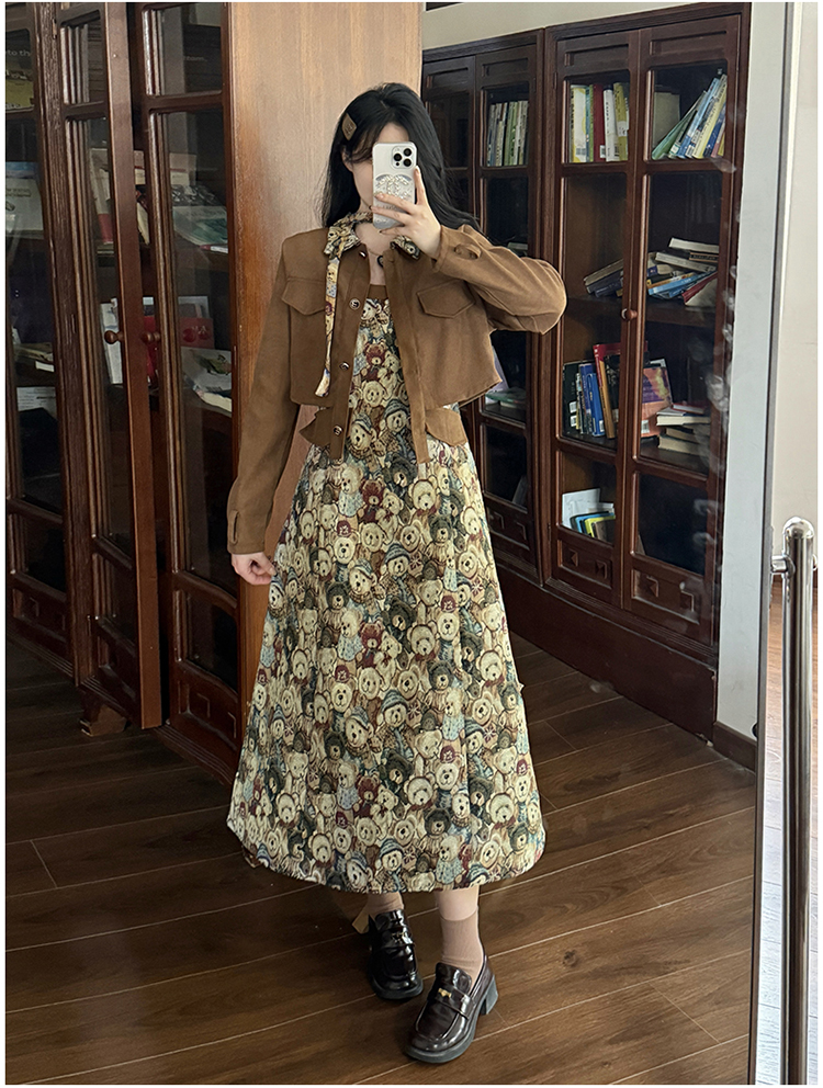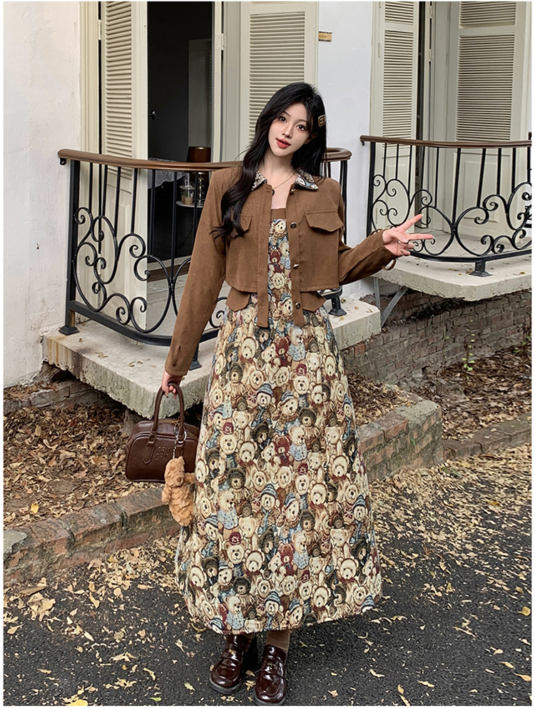 실사 스웨이드 원단 베스트 세트 여성 드레스 봄 한 부서 느긋한 바람 휴가 전원 빅 사이즈 투피스 세트