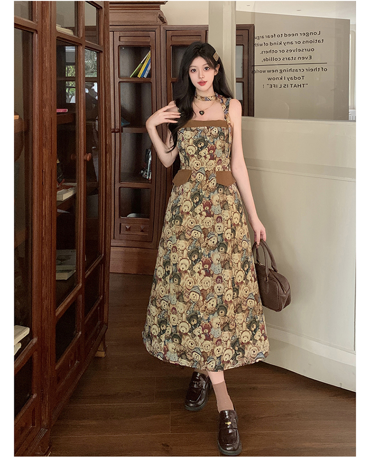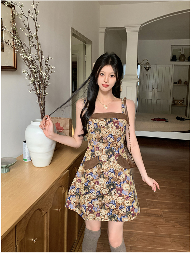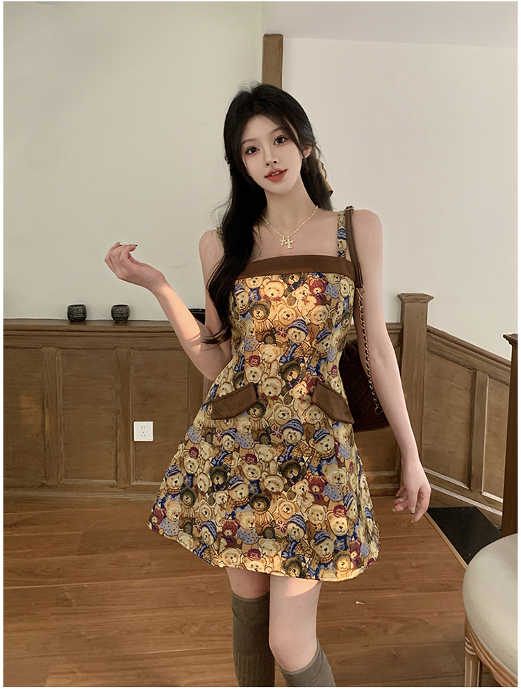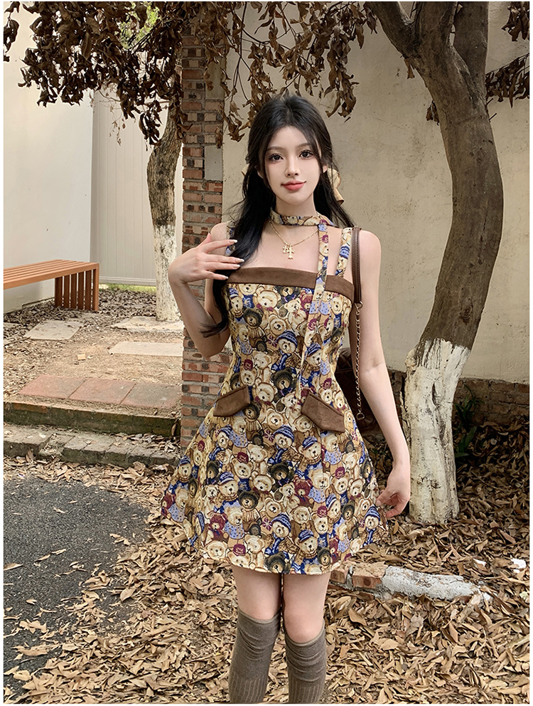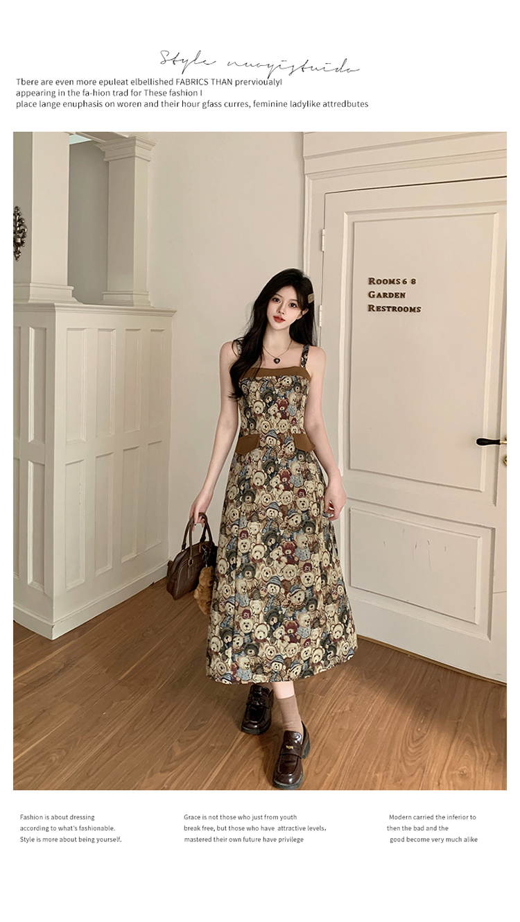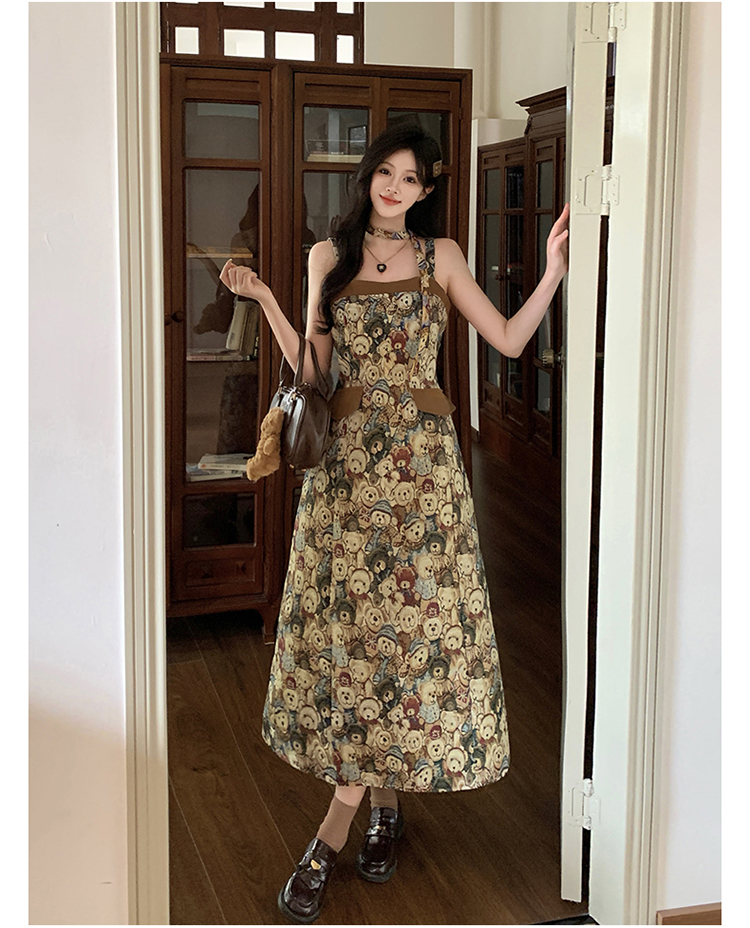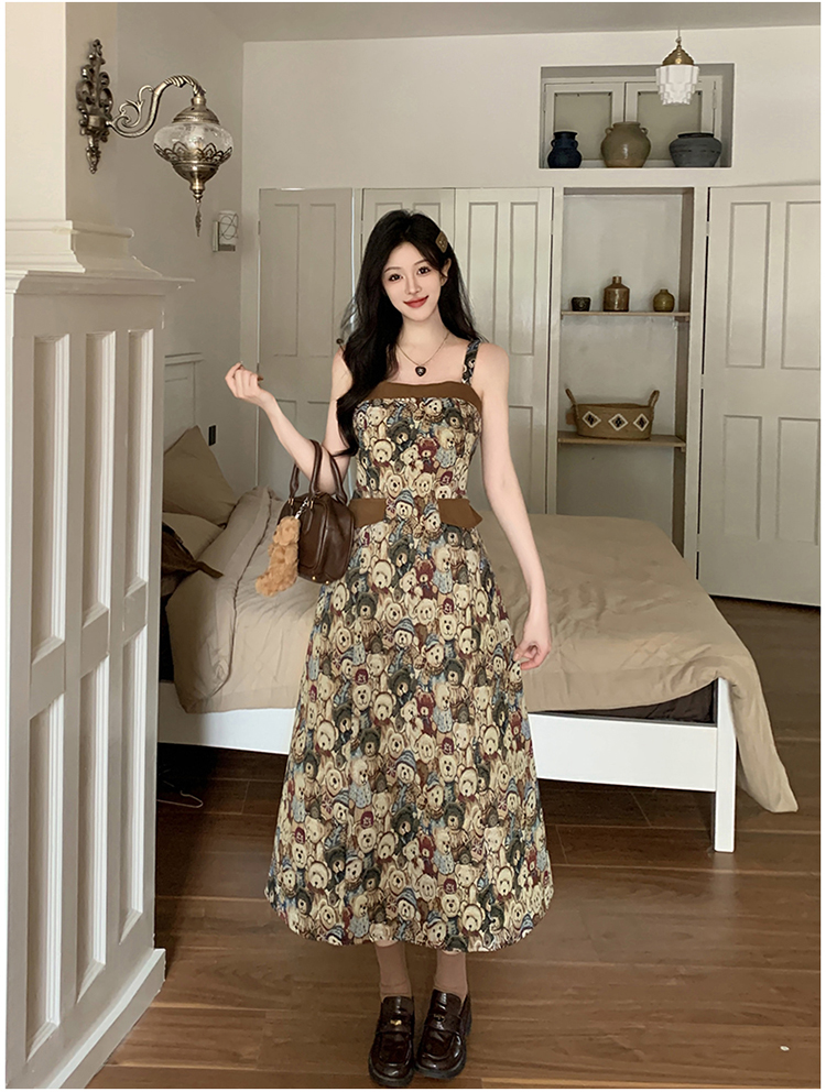 실사 빅 사이즈 여성 의류 레트로 드레스 봄 배 모양 몸 디자인 센스 슬립 드레스 지방 mm 슬림해 보이는 A라인 스커트
