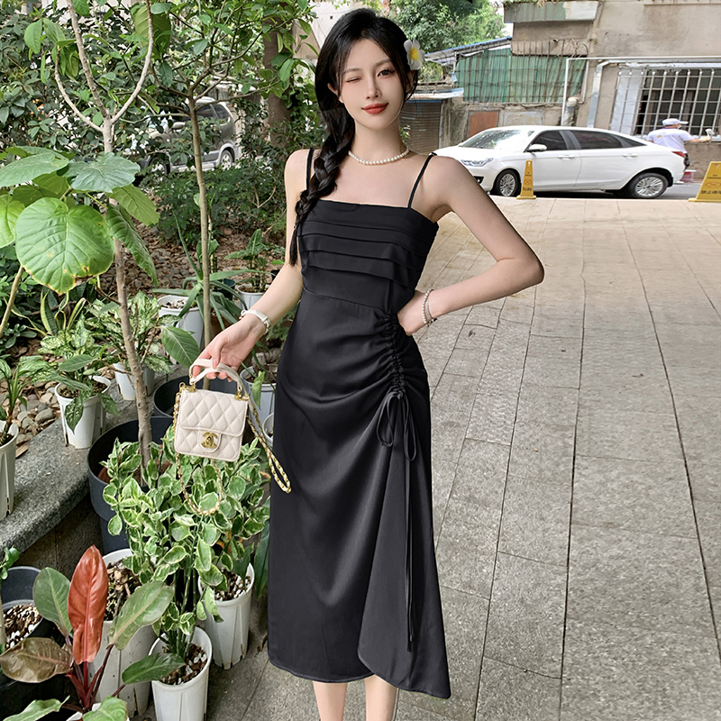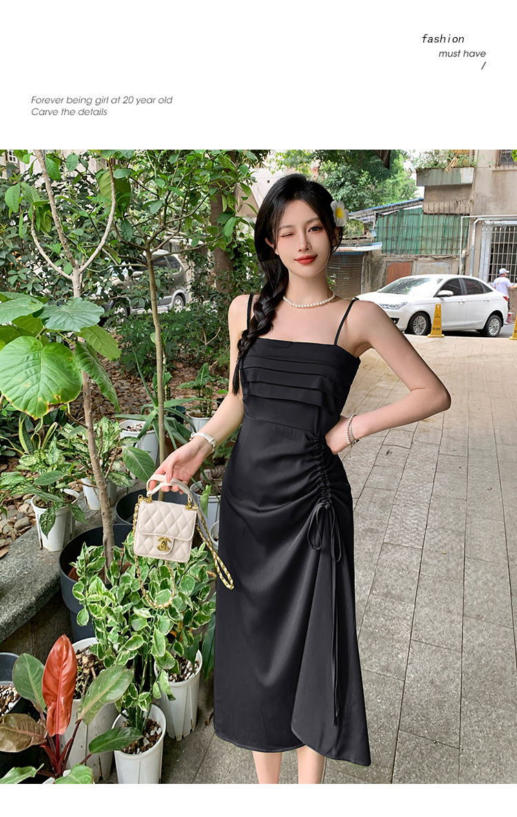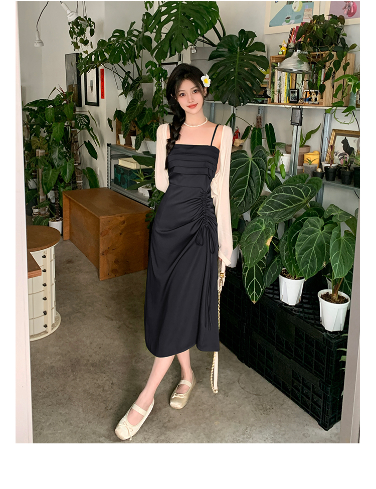 실사 빅 사이즈 여성 의류 레트로 드레스 봄 배 모양 몸 디자인 센스 슬립 드레스 지방 mm 슬림해 보이는 A라인 스커트