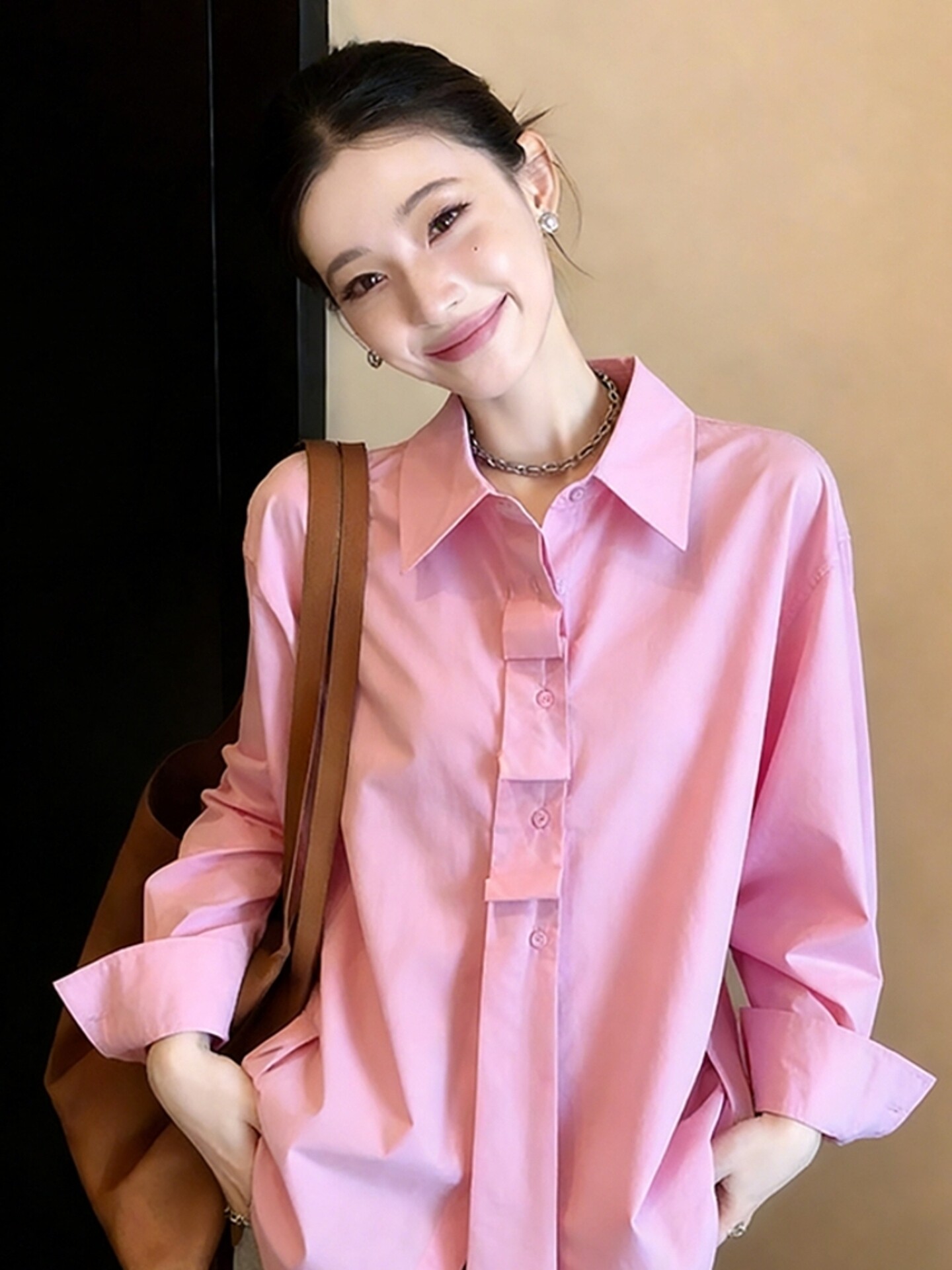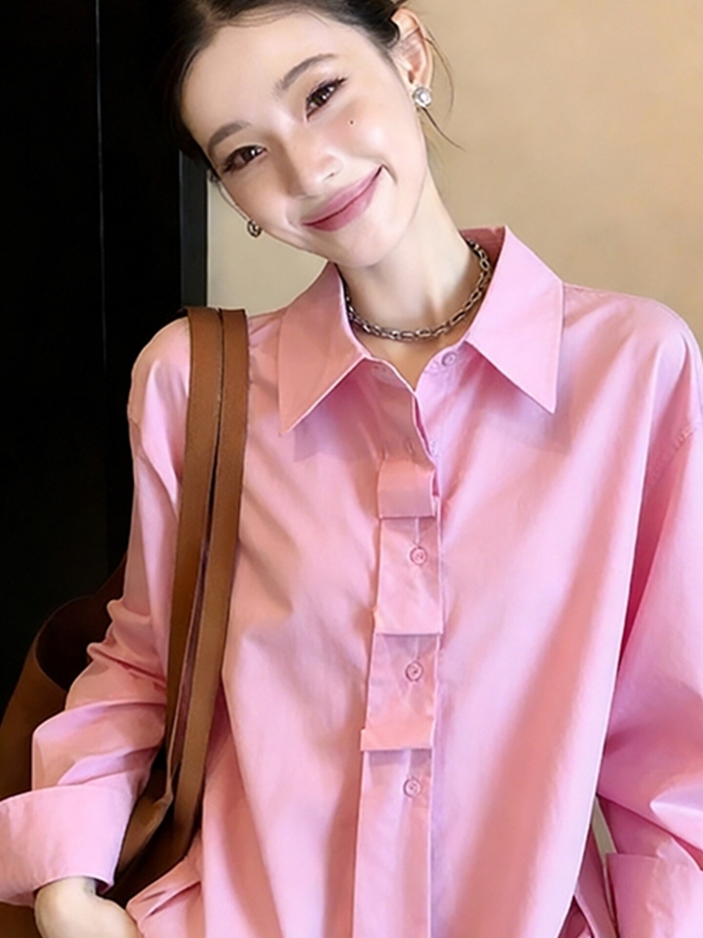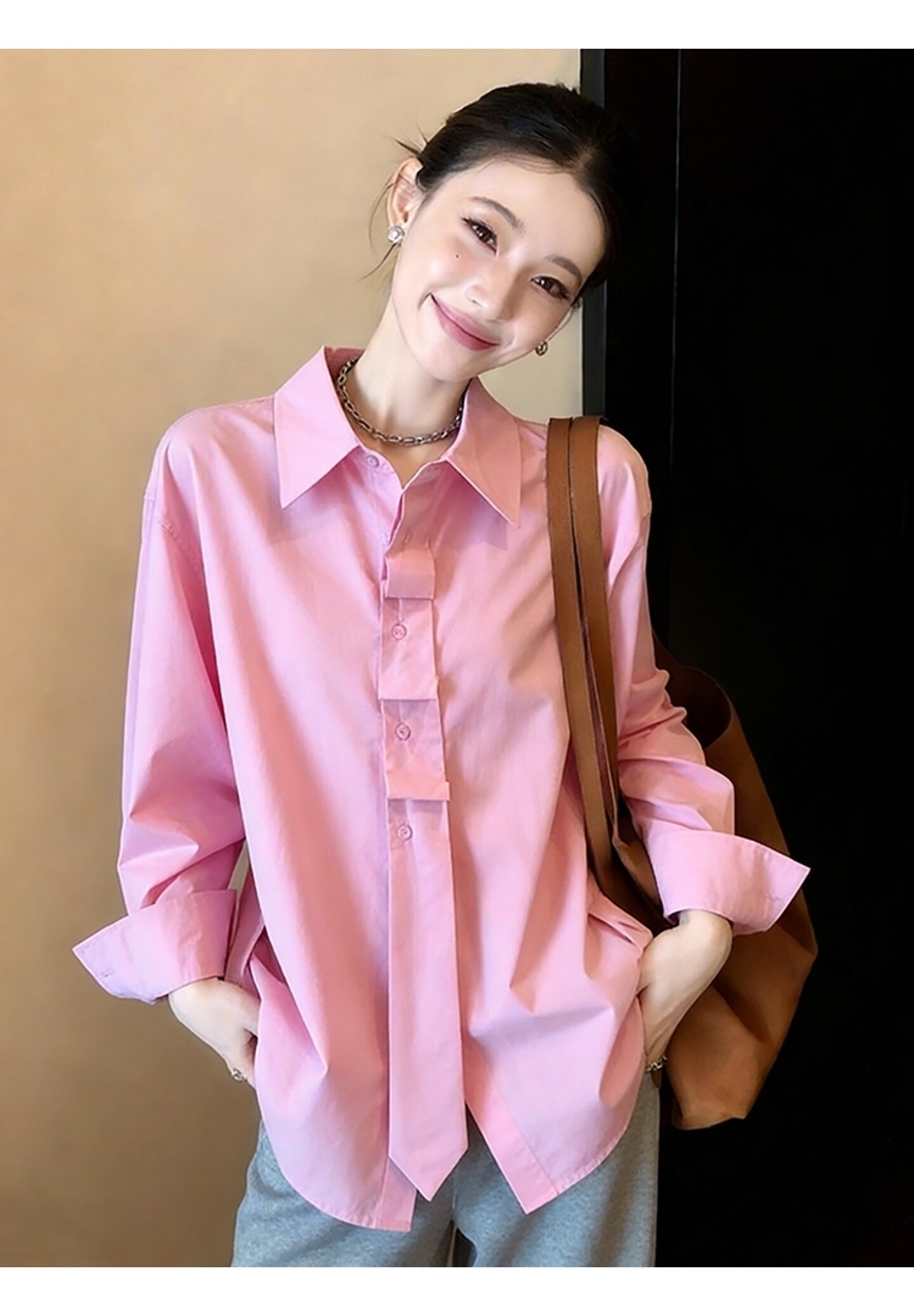 품격 빛 럭셔리 리본 카키 색 여성 셔츠 봄 2026 년 새로운 아름다운 다용도 작은 셔츠 슈퍼 잘 생긴 셔츠