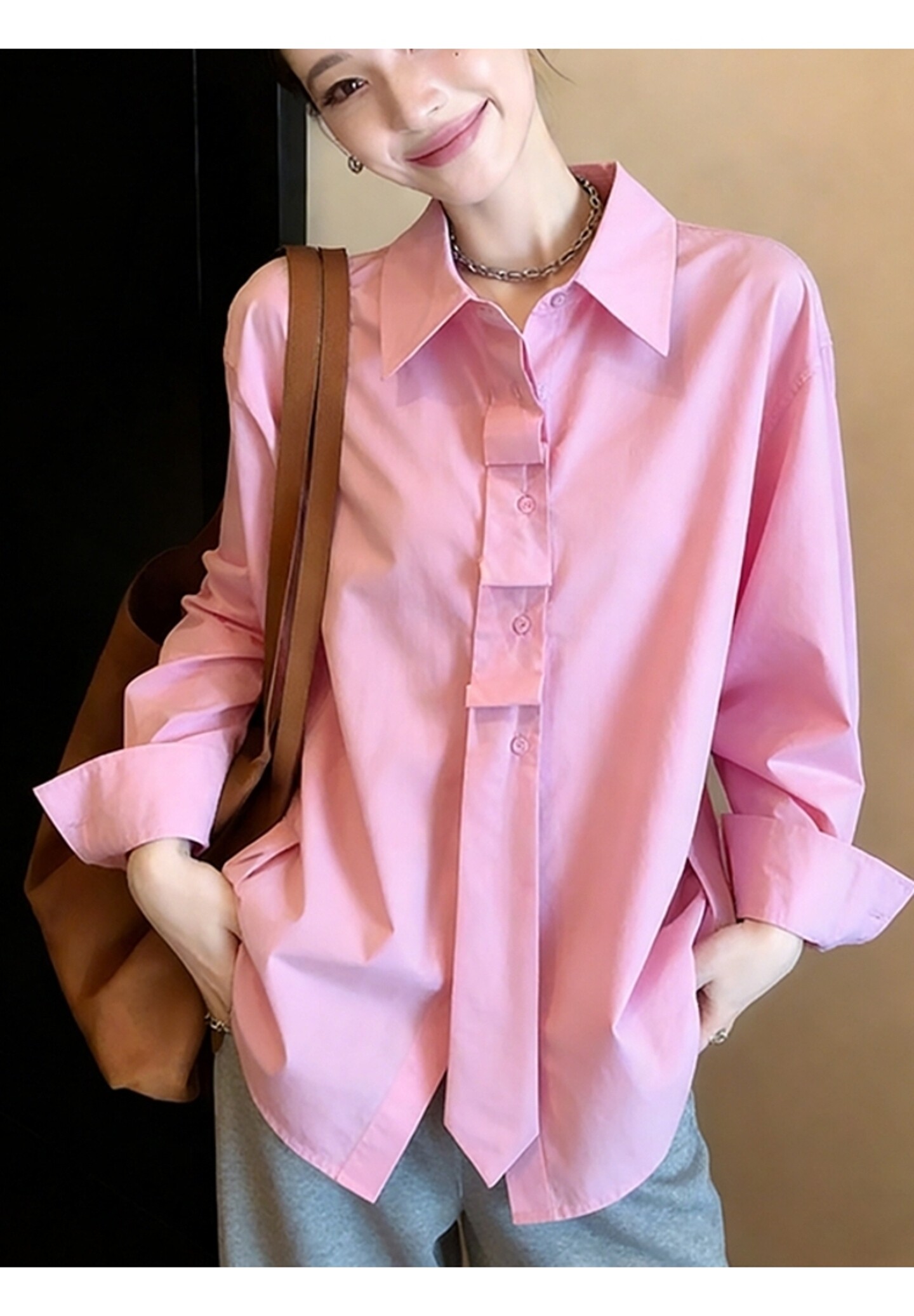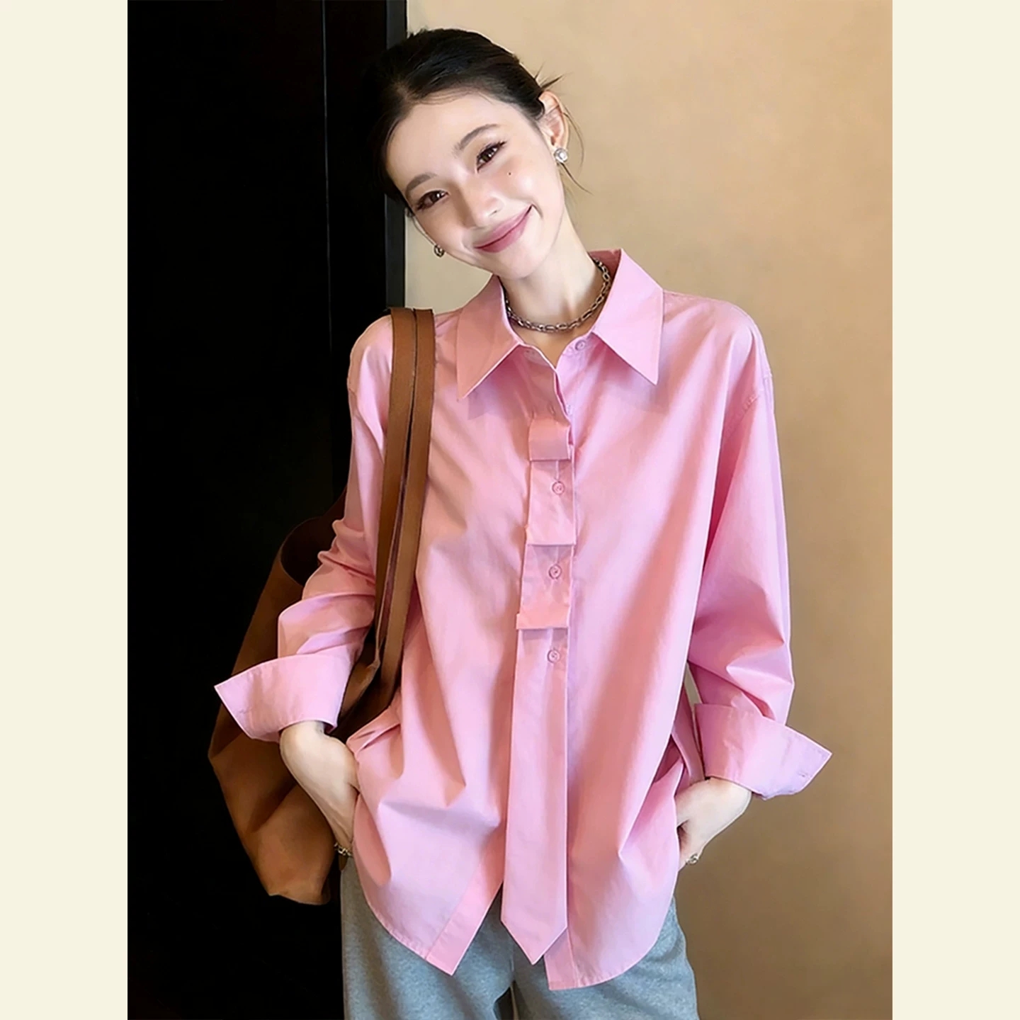 화이트 여성 셔츠 조기 봄 2026 새로운 오픈 가디건 경력 셔츠 캐주얼 루즈핏 다용도 폴로 칼라 긴팔 맨위