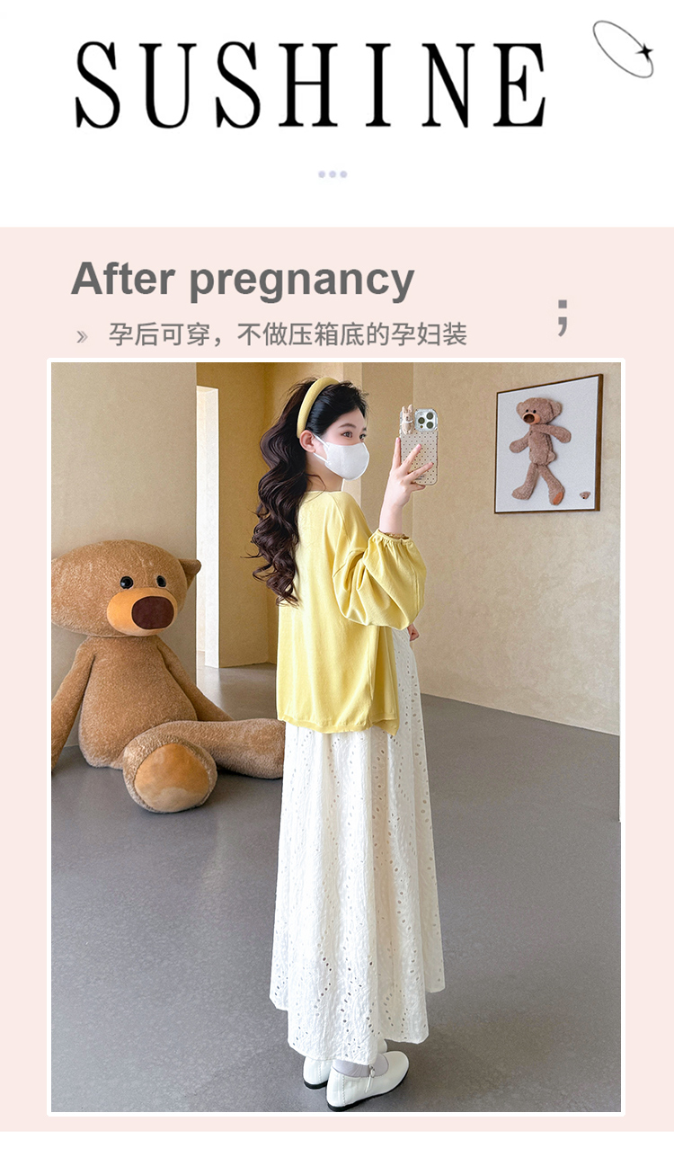 실사 xian 물품 봄 드레스 신제품 편안함 다용도 행침 목 맨위 반신 스커트 임산부 세트