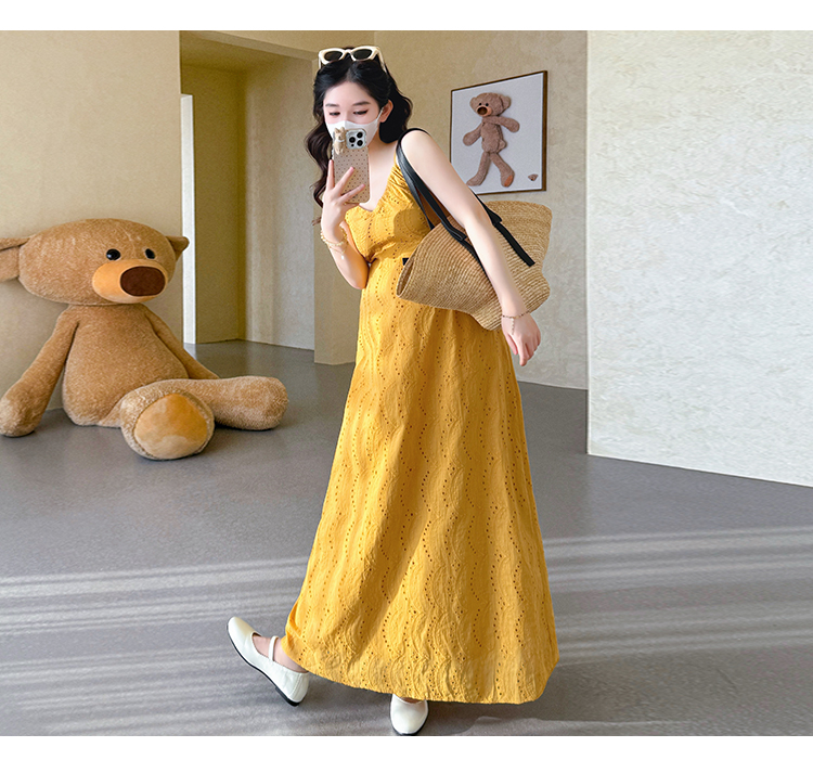 스타 도메인 그는 벤 면 출산 착용 여름 신제품 롱 스커트 페이크 레이어드 슬림해 보이는 품격 드레스