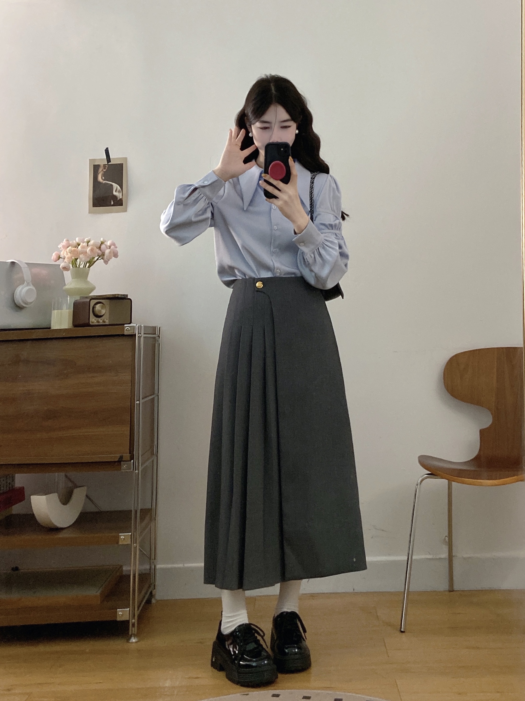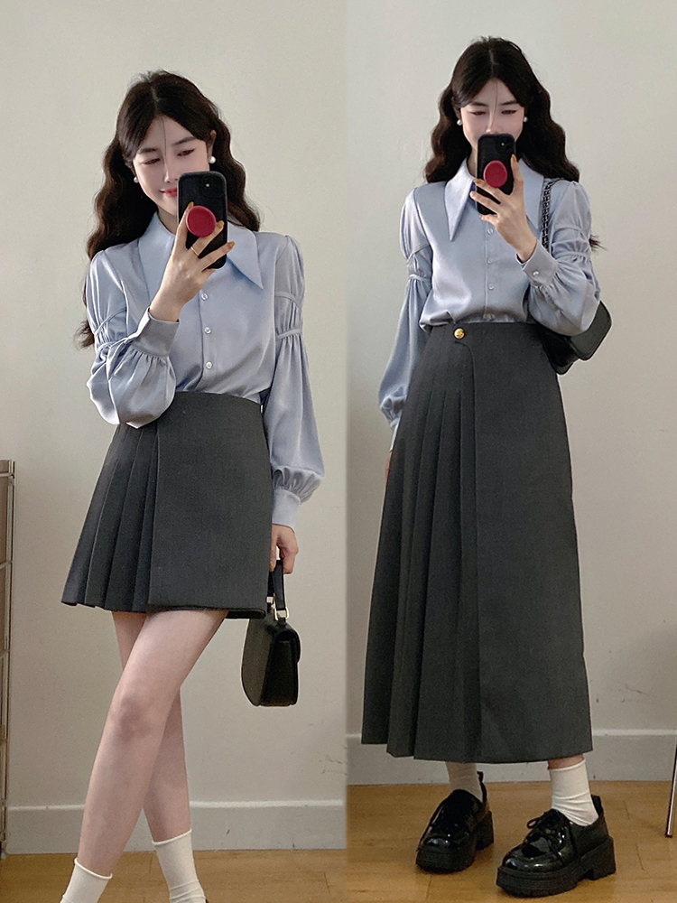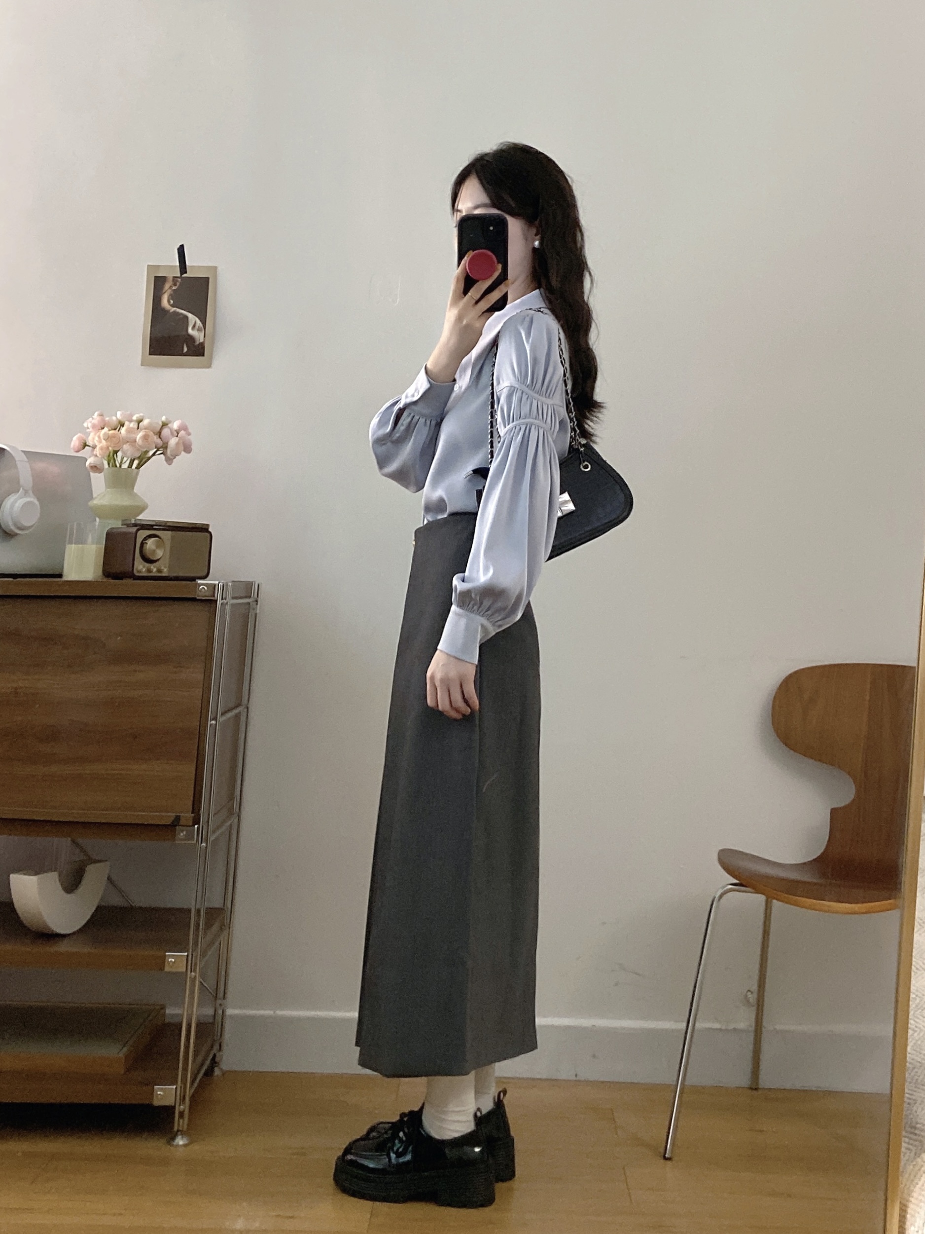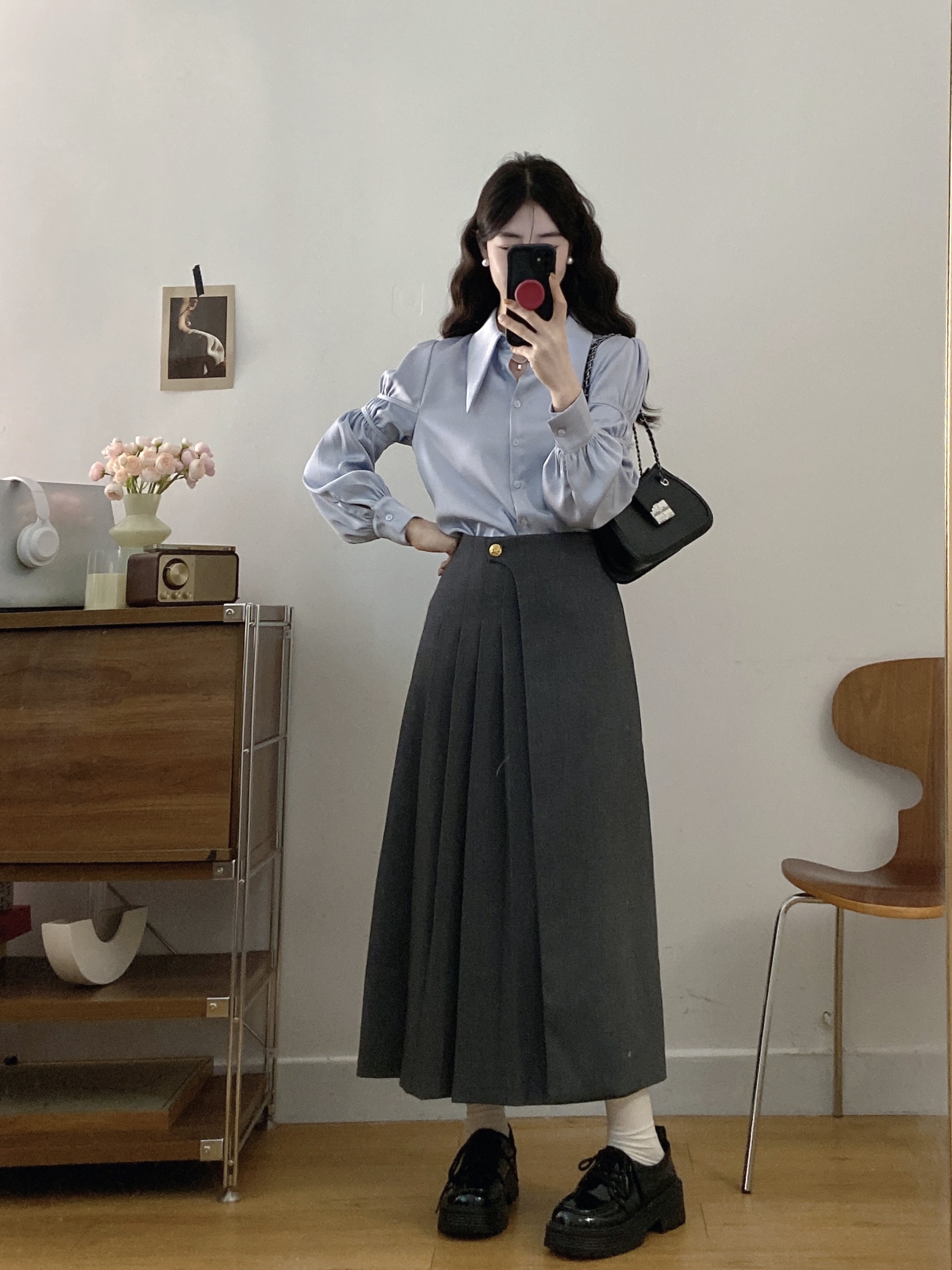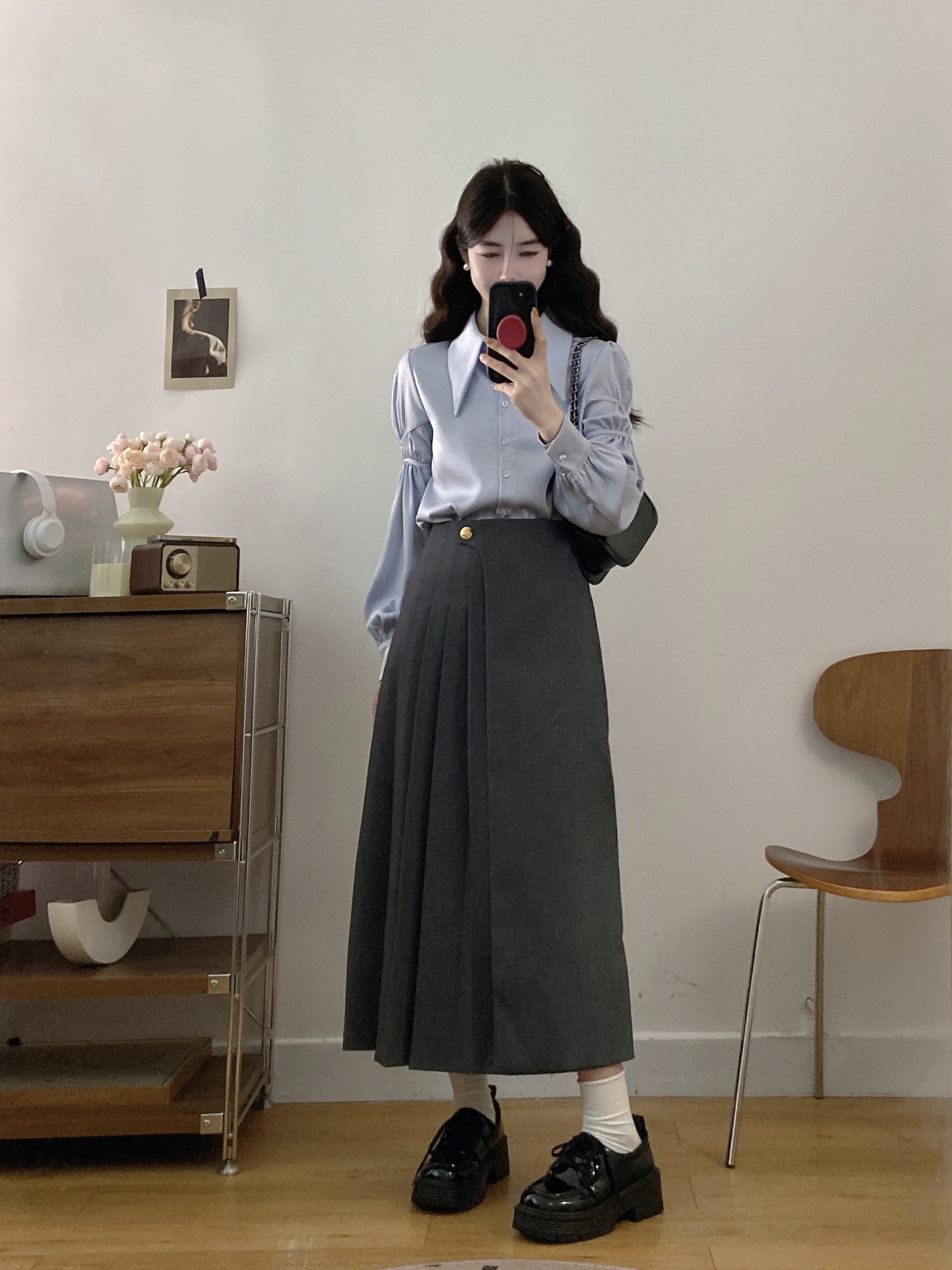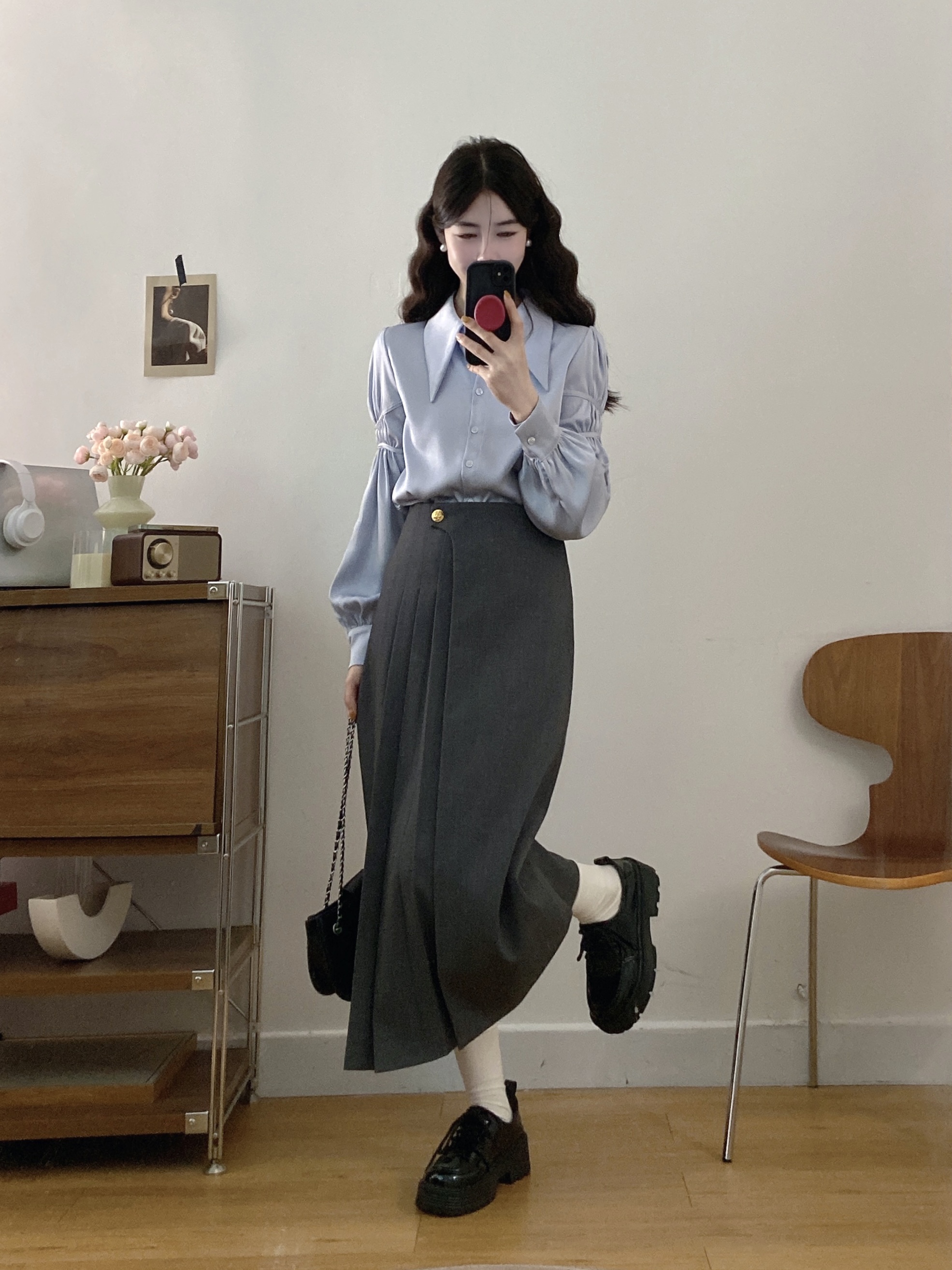 실사 빅 사이즈 여성 의류 2026 봄 새로운 한 부서 미니멀리즘 품격 다용도 셔츠 하이웨이스트 반신 치마 세트