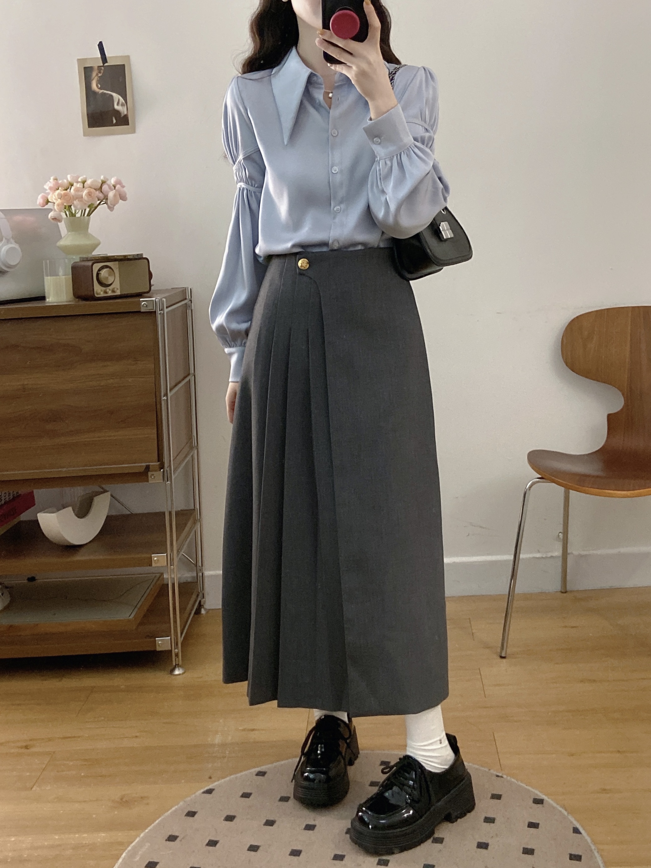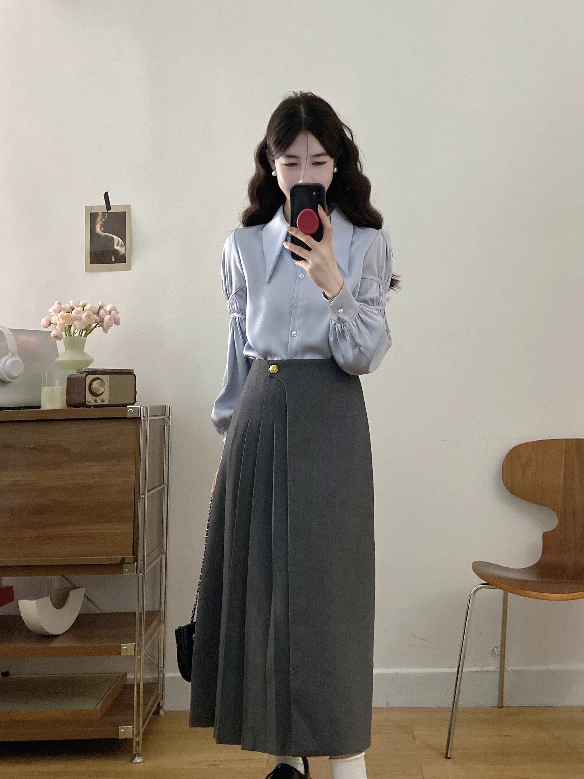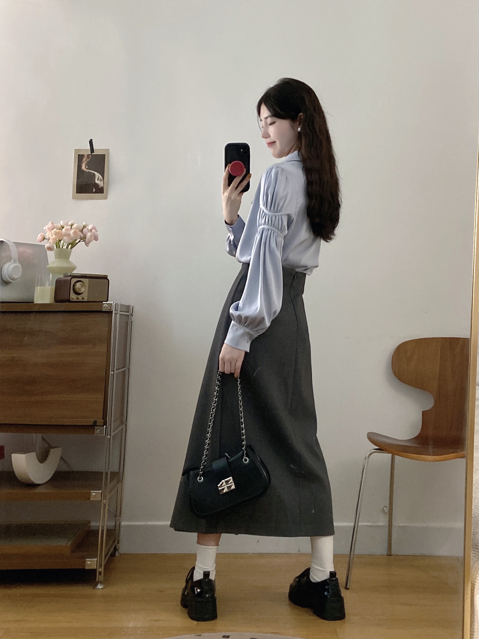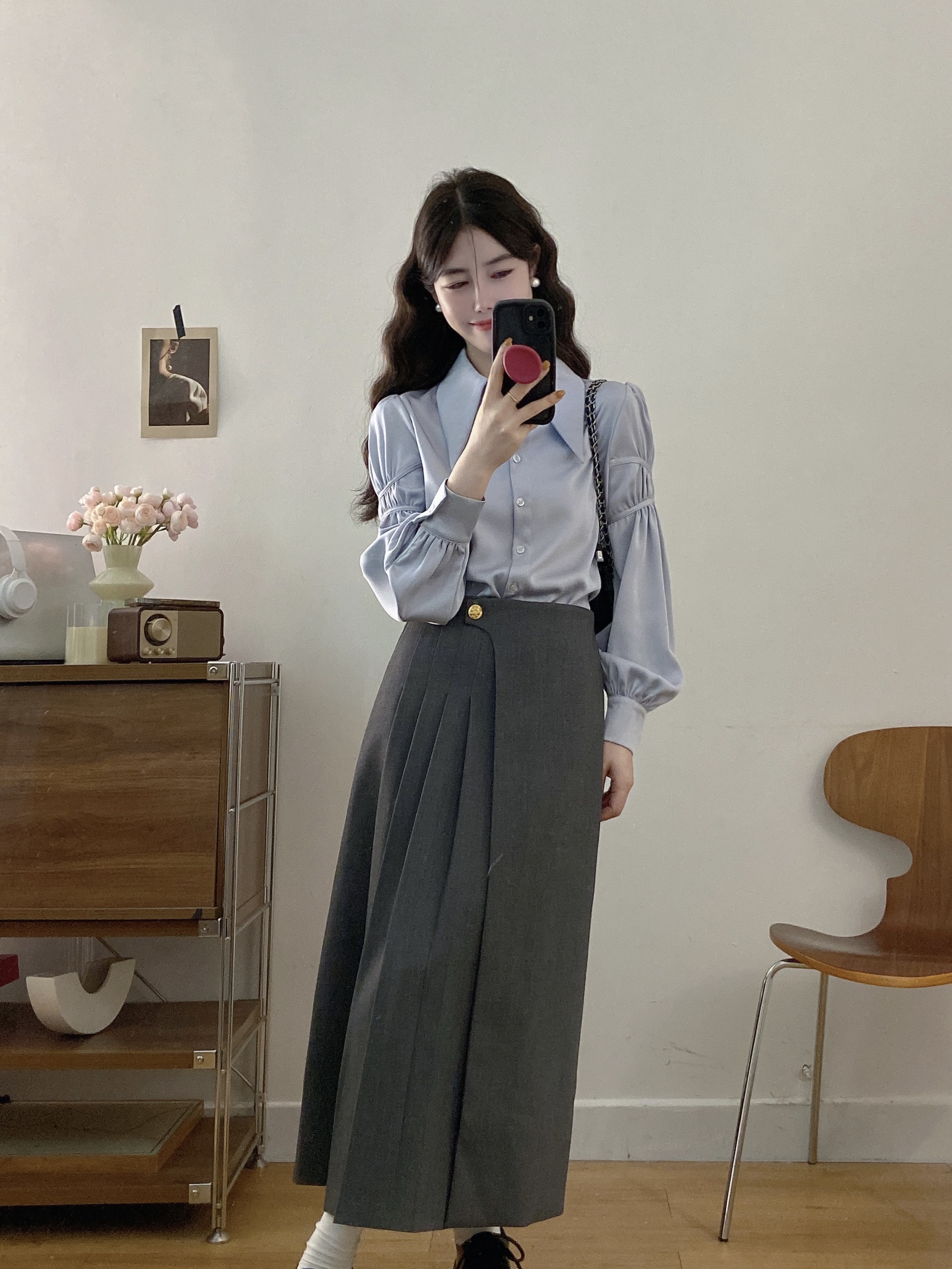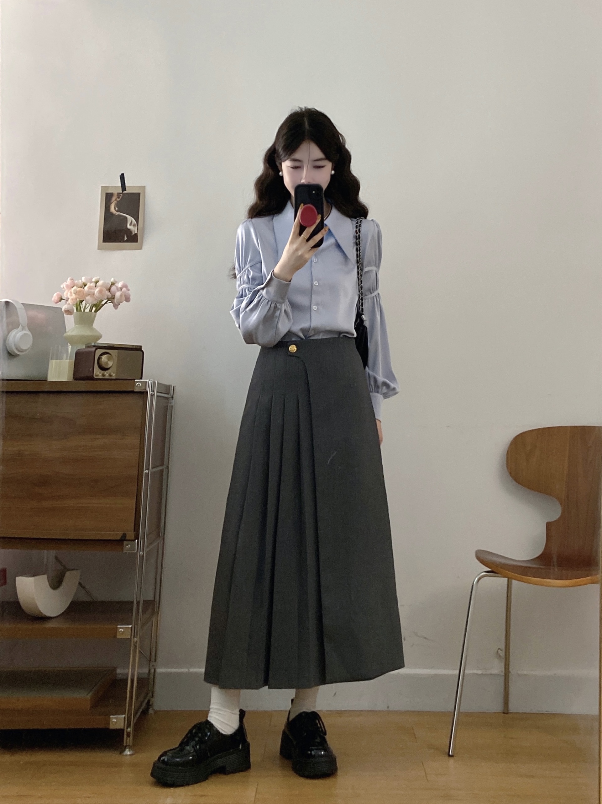 실사 빅 사이즈 여성 의류 2026 봄 새로운 한 부서 미니멀리즘 품격 다용도 셔츠 하이웨이스트 반신 치마 세트