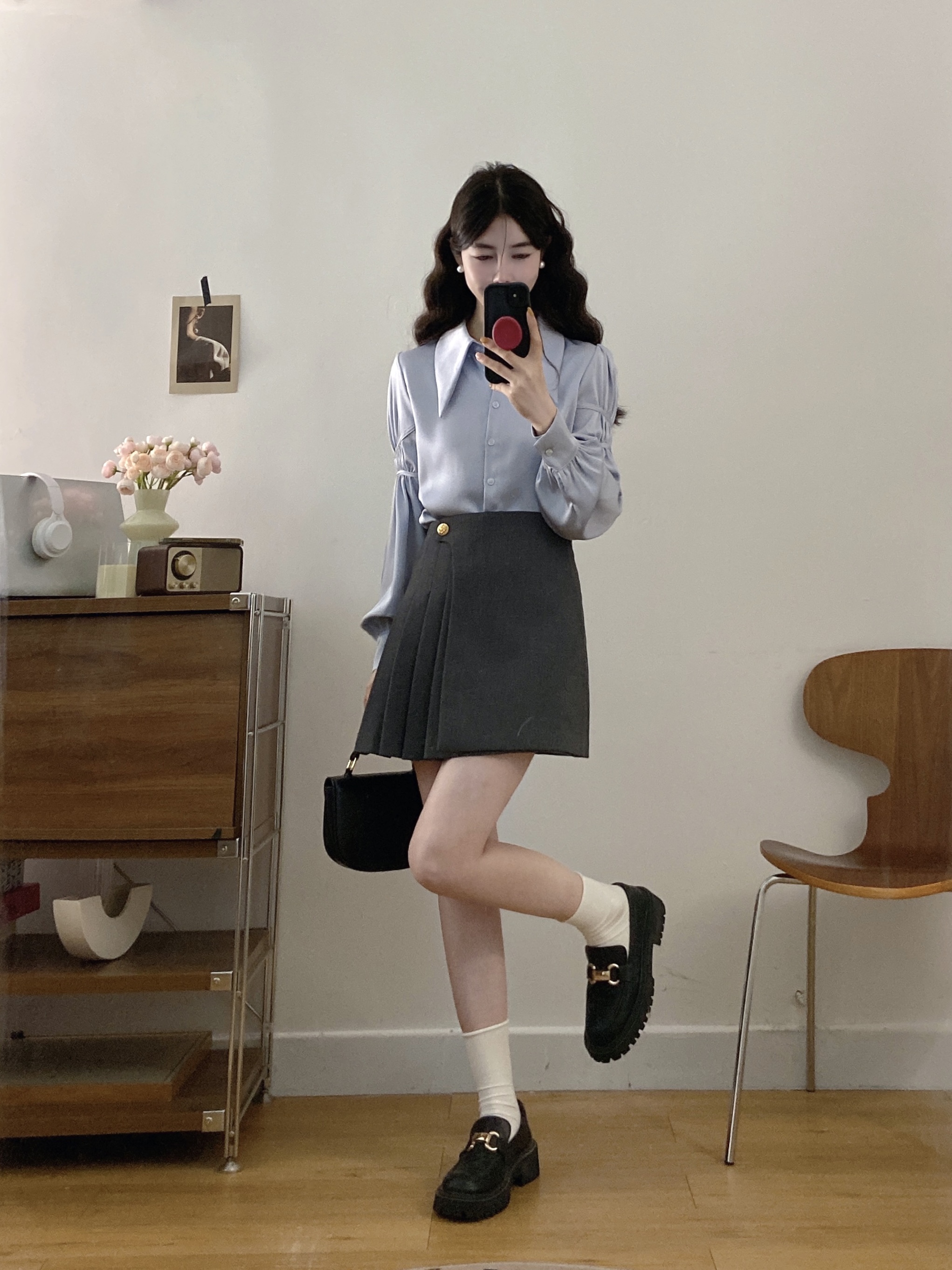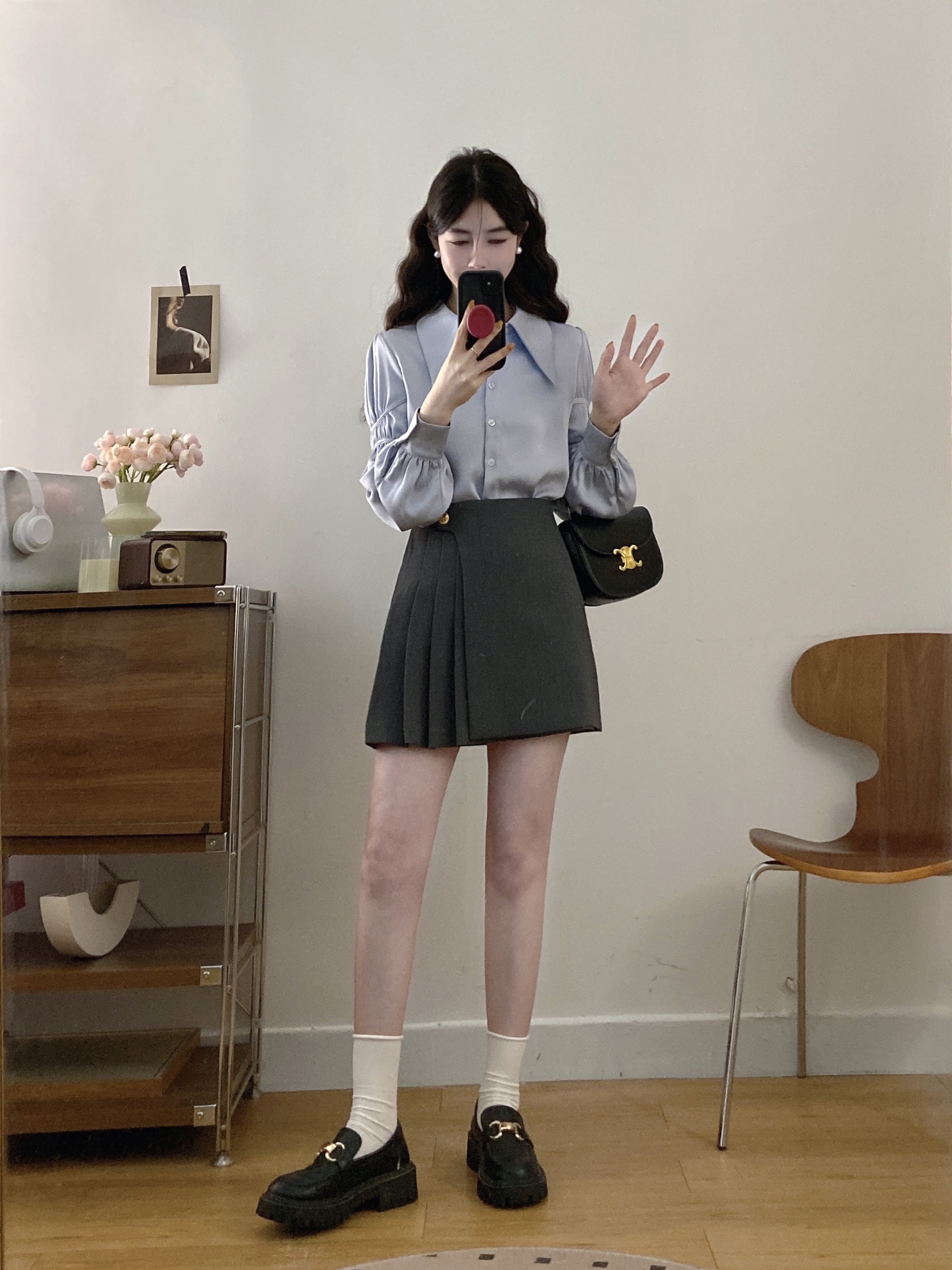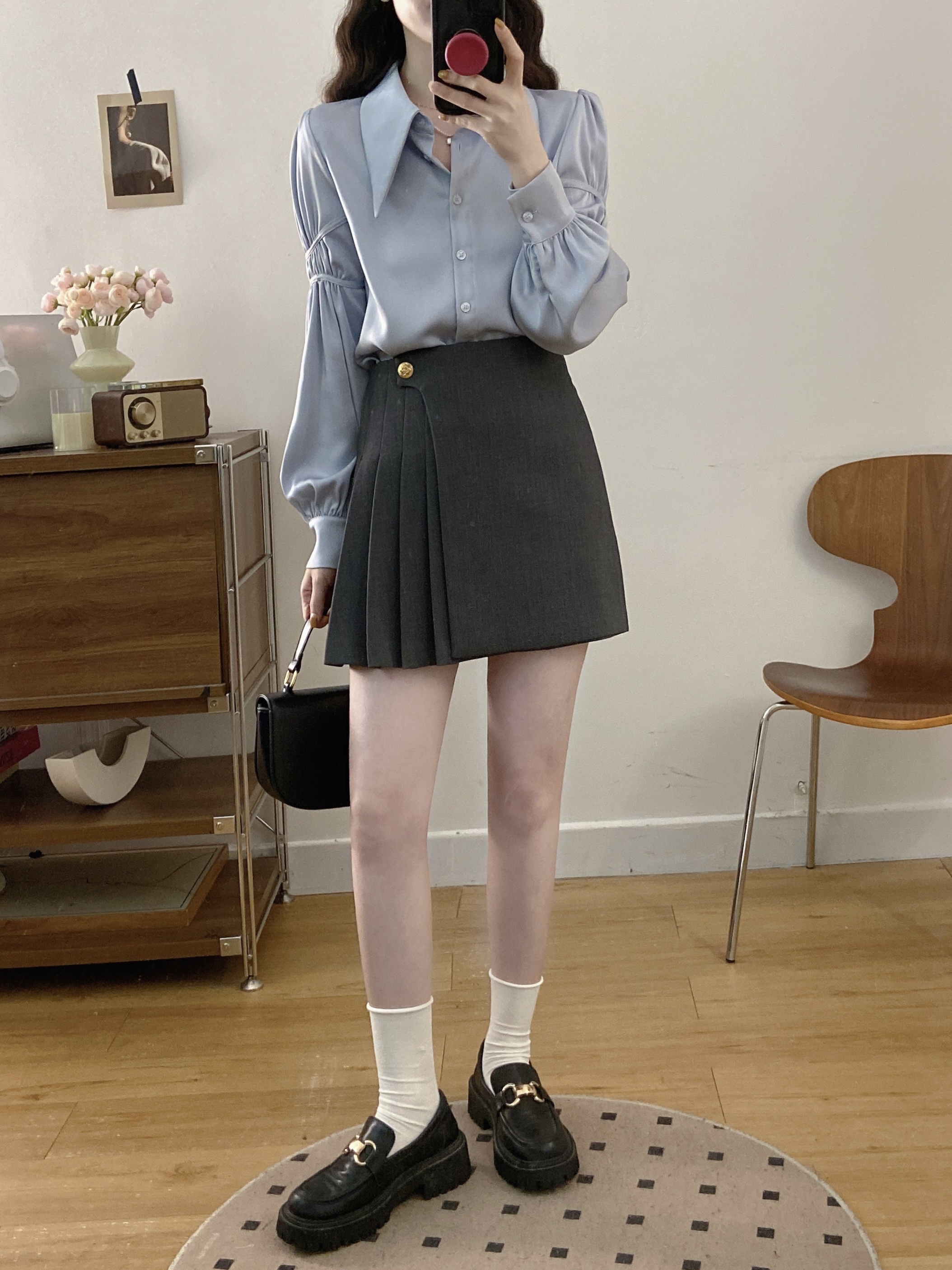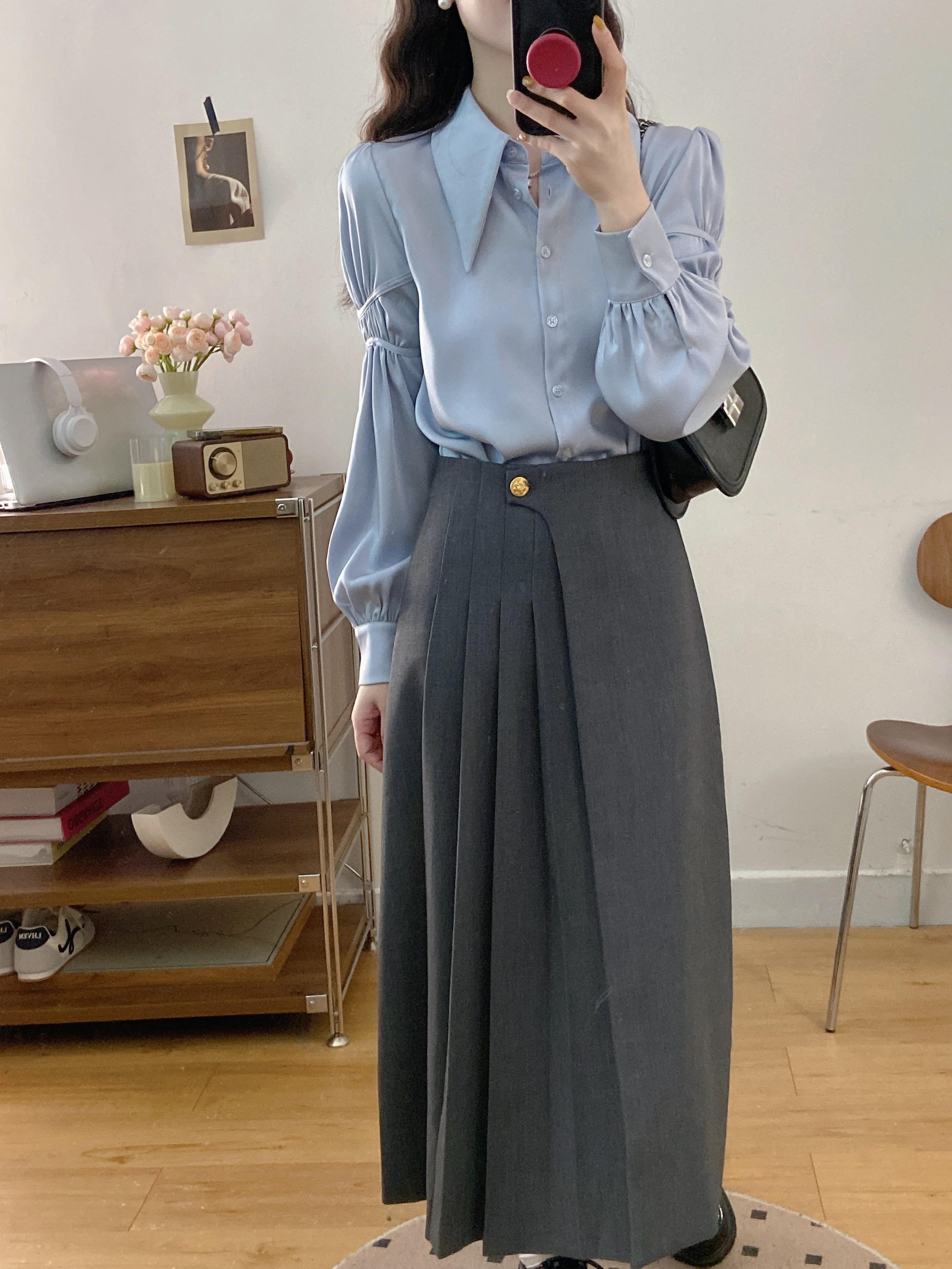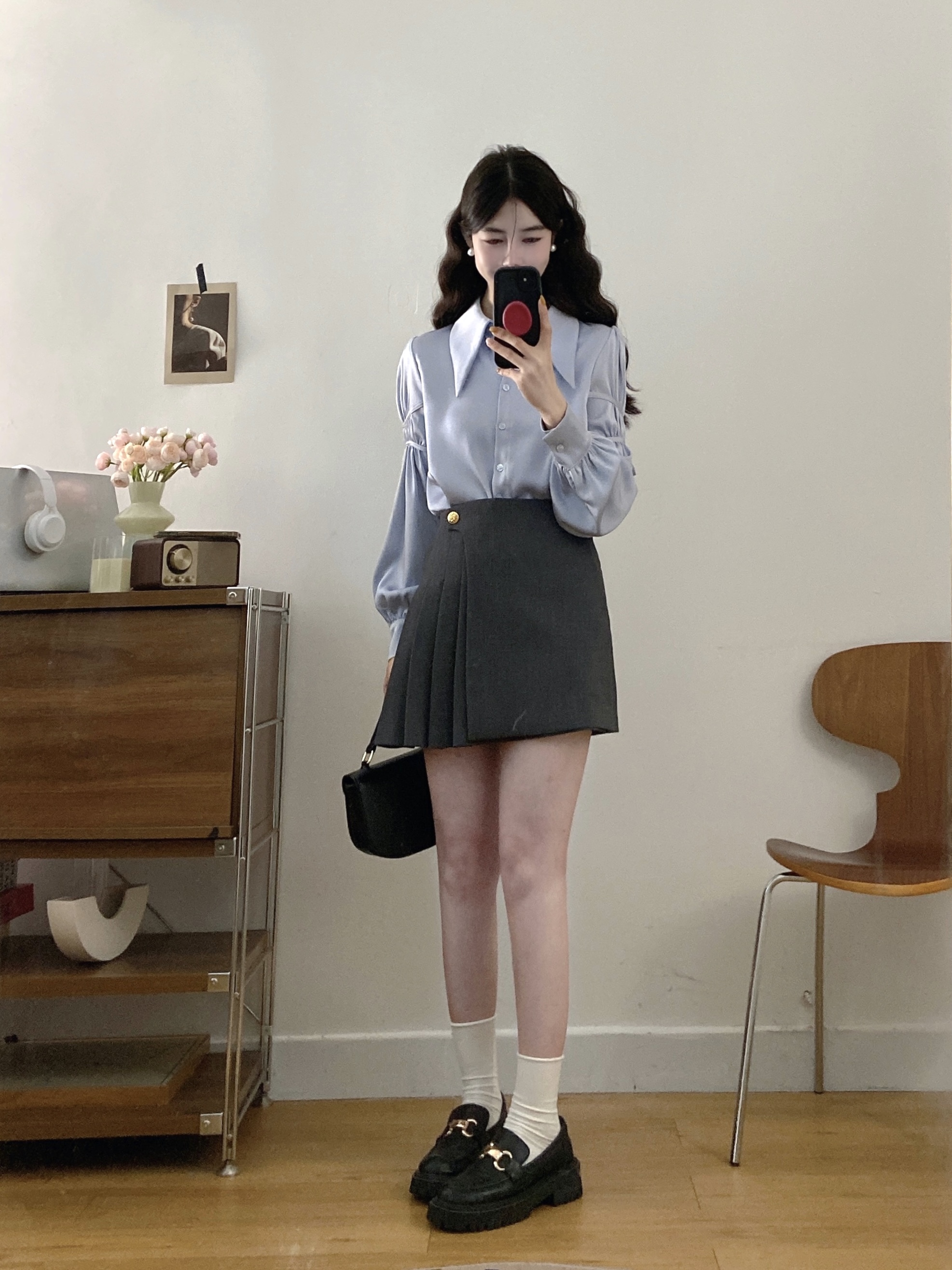 실사 빅 사이즈 여성 의류 2026 봄 새로운 한 부서 미니멀리즘 품격 다용도 셔츠 하이웨이스트 반신 치마 세트