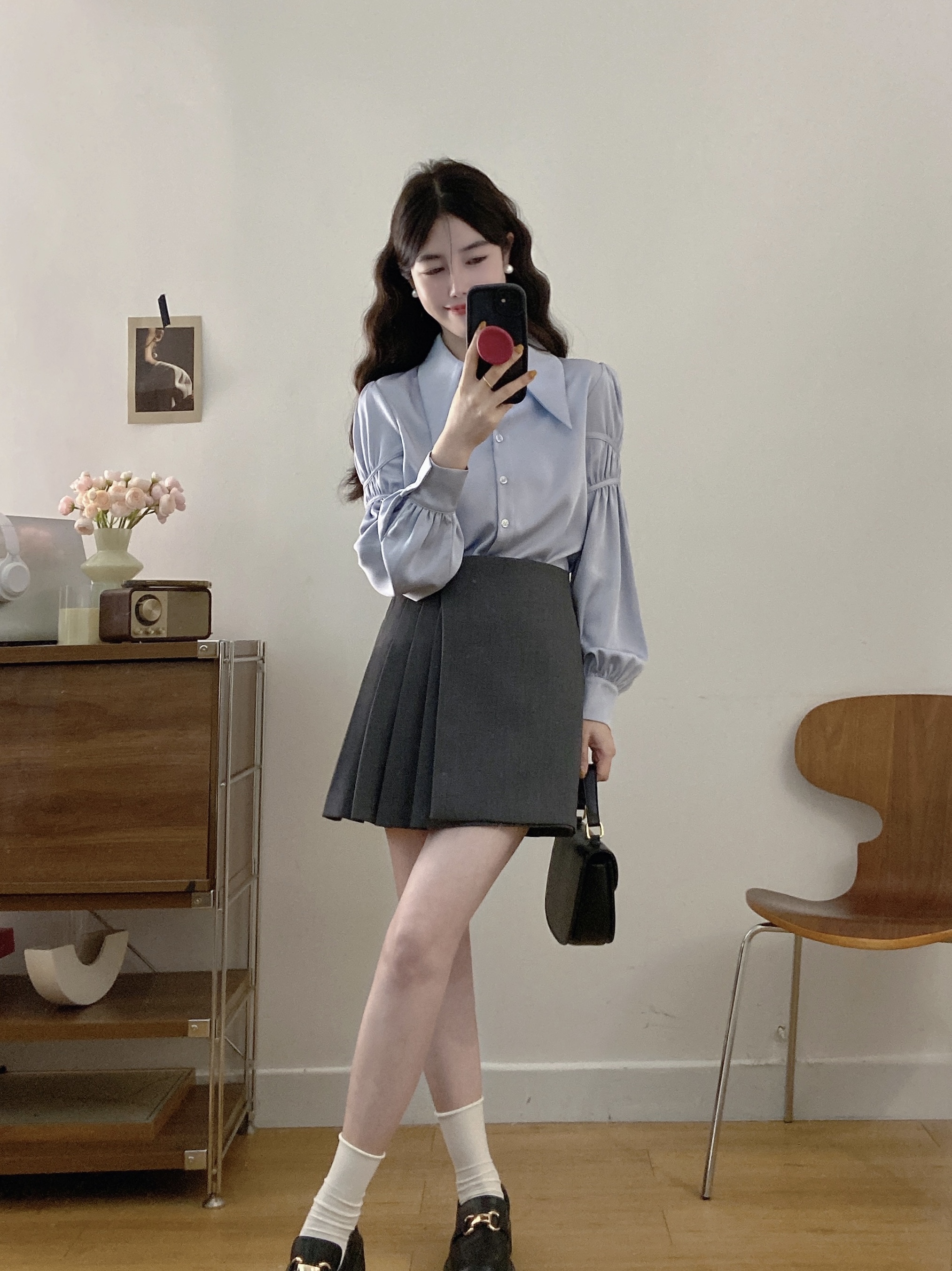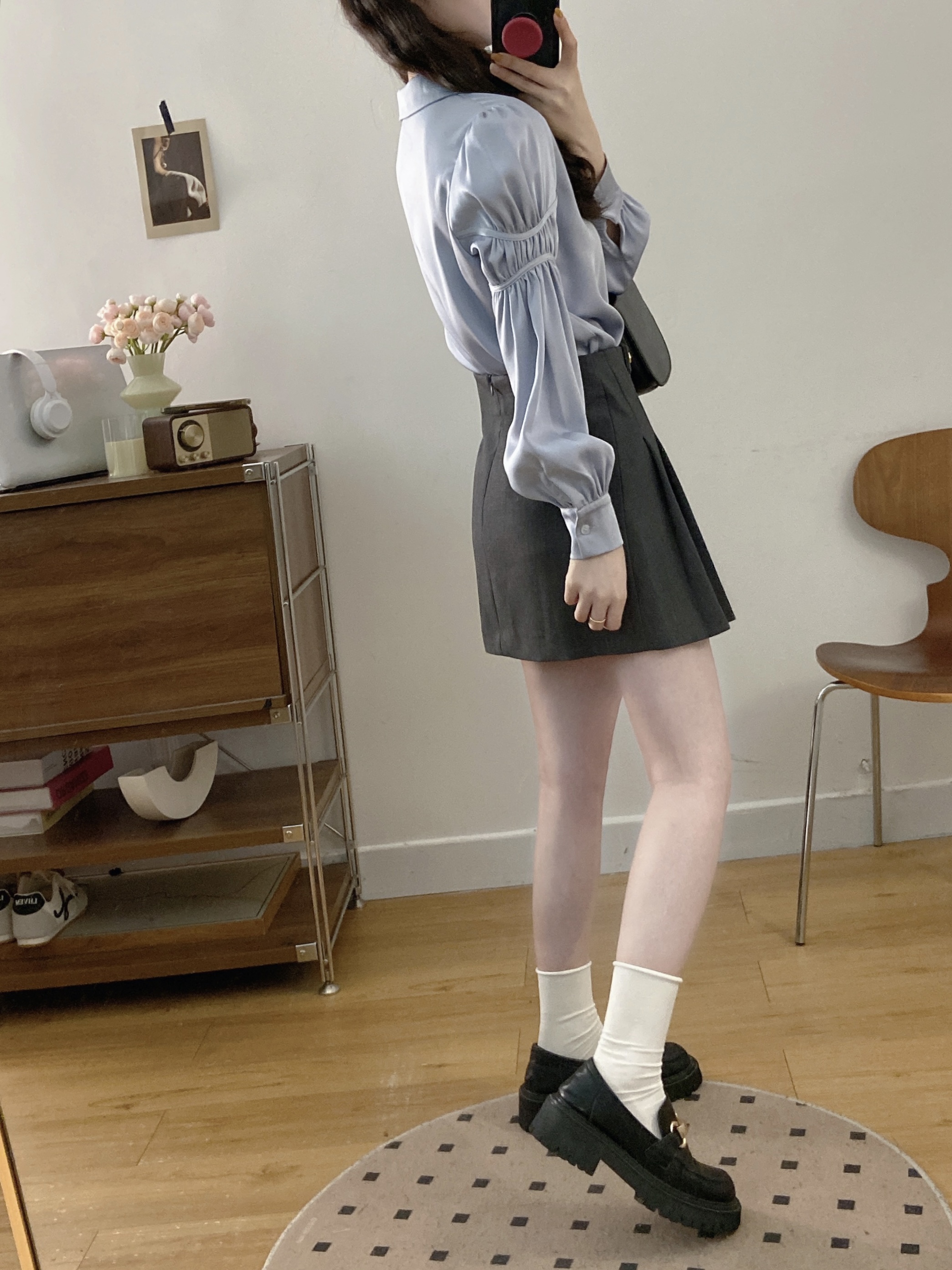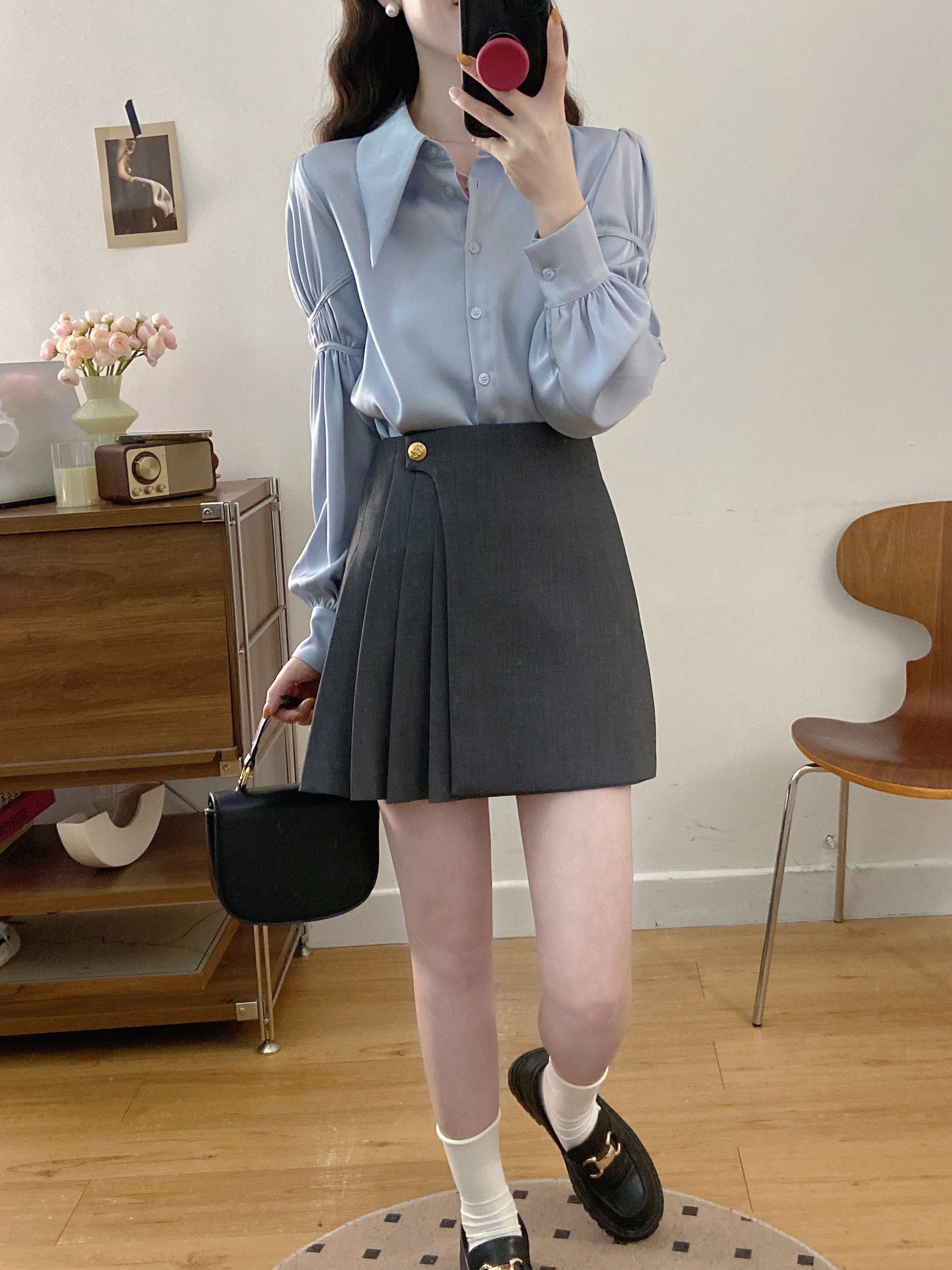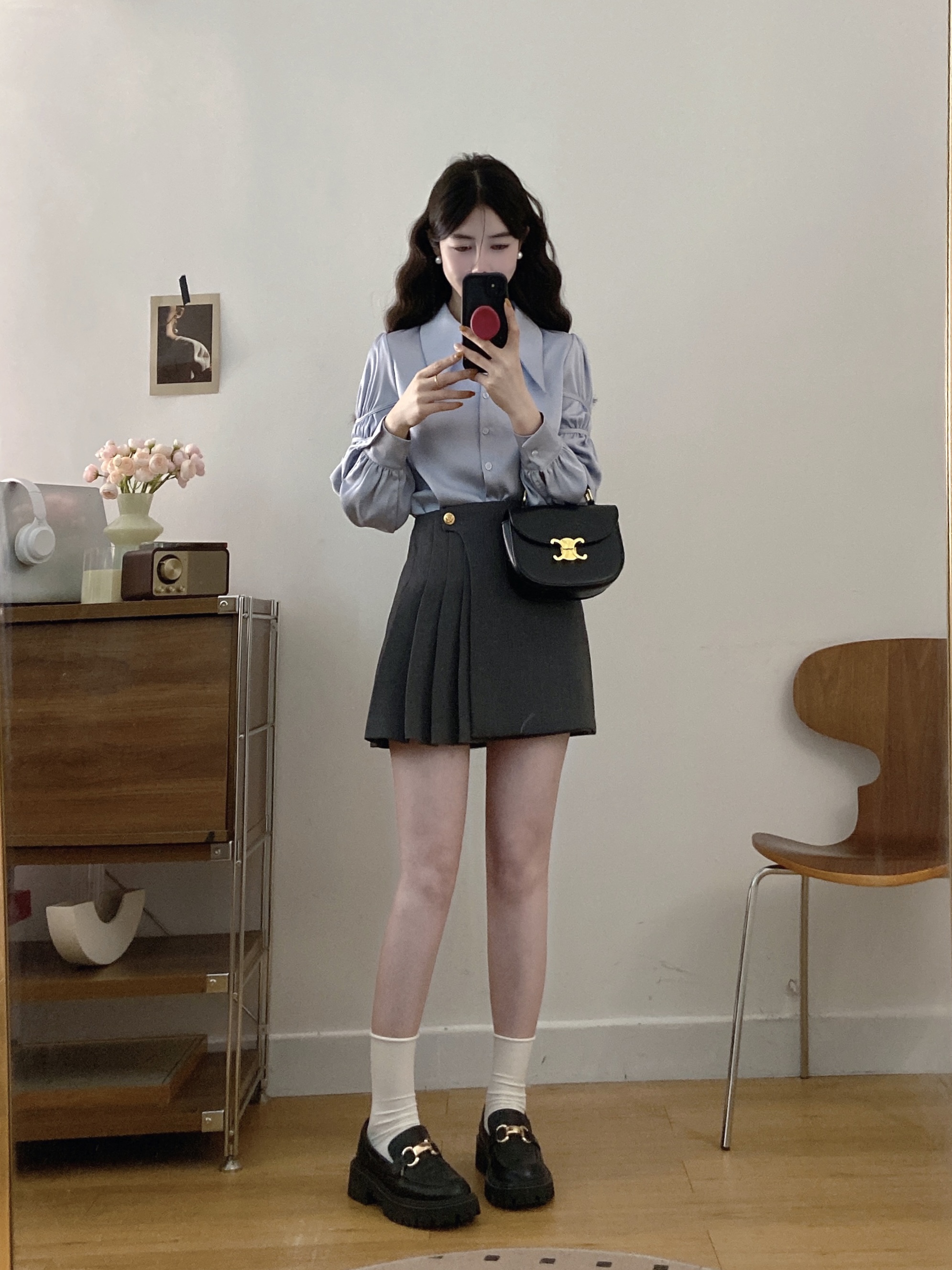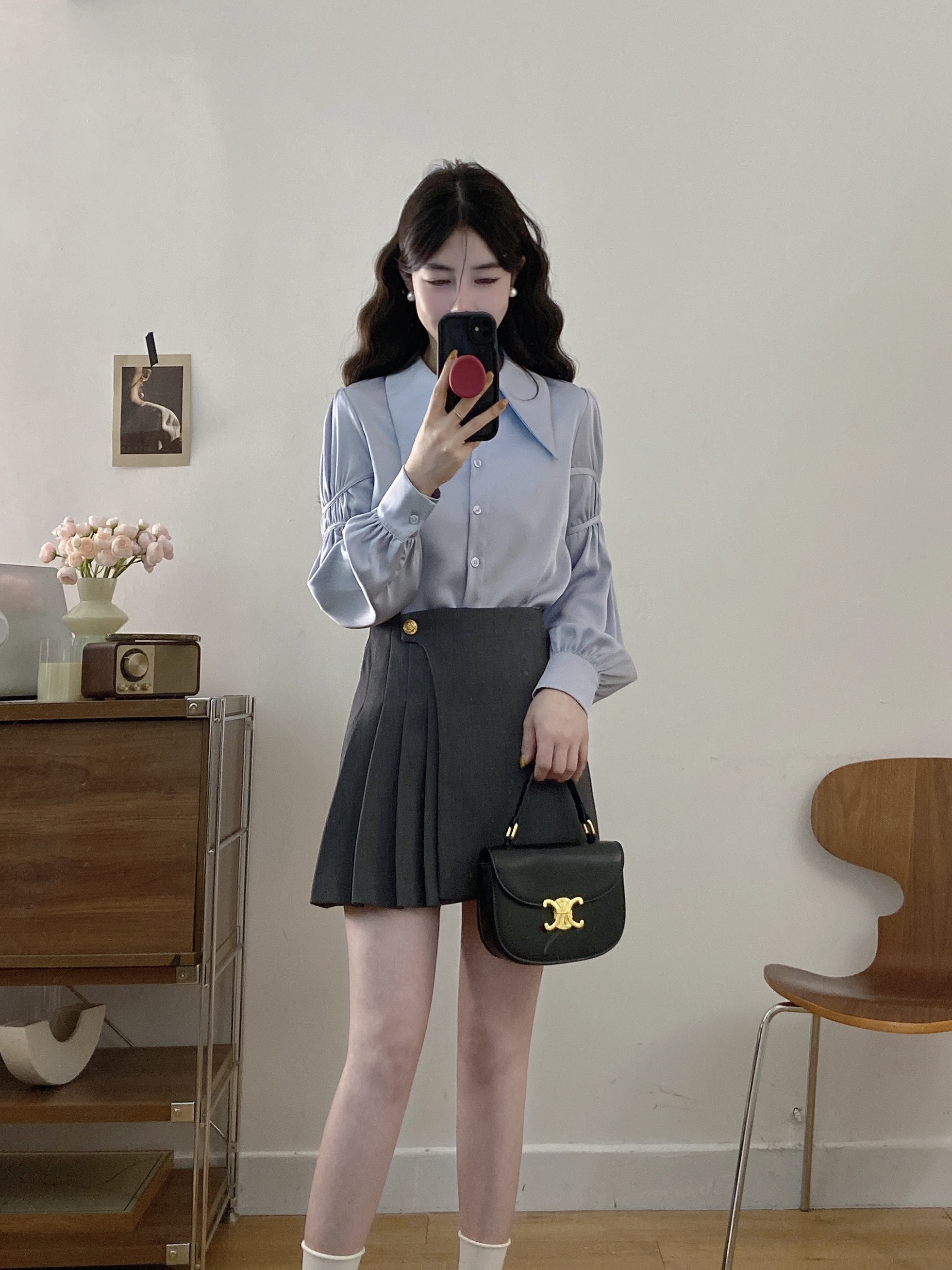 실사 빅 사이즈 여성 의류 2026 봄 새로운 한 부서 미니멀리즘 품격 다용도 셔츠 하이웨이스트 반신 치마 세트