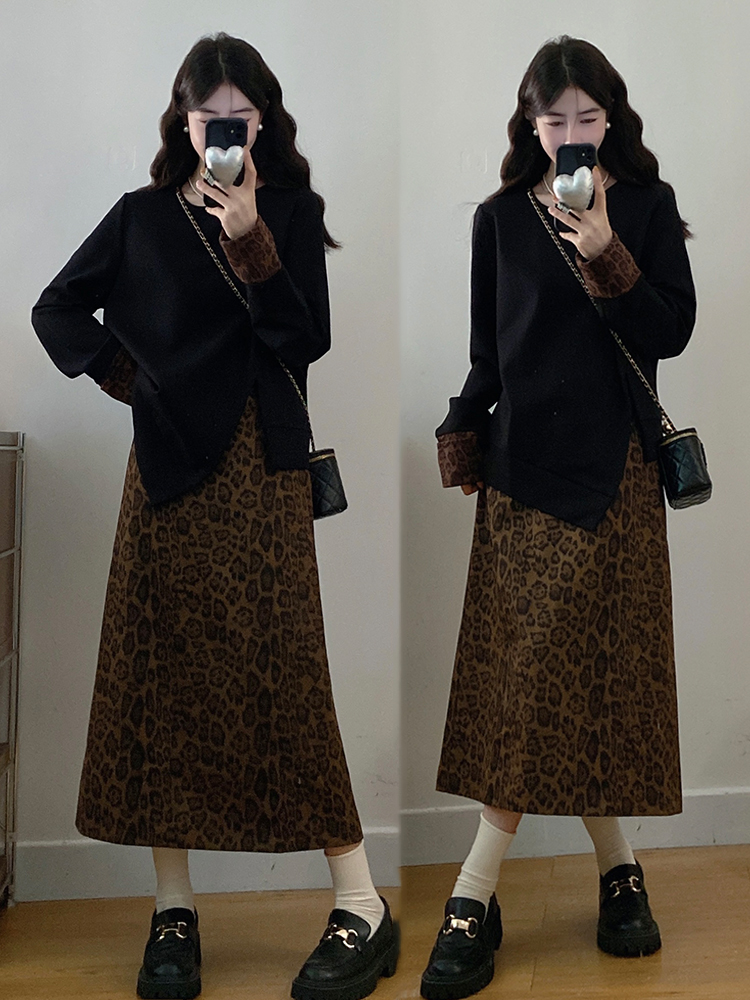 실사 빅 사이즈 여성 의류 2026 봄 새로운 지방 mm 불규칙 트임 슬림해 보이는 맨위 반신 스커트 투피스 세트