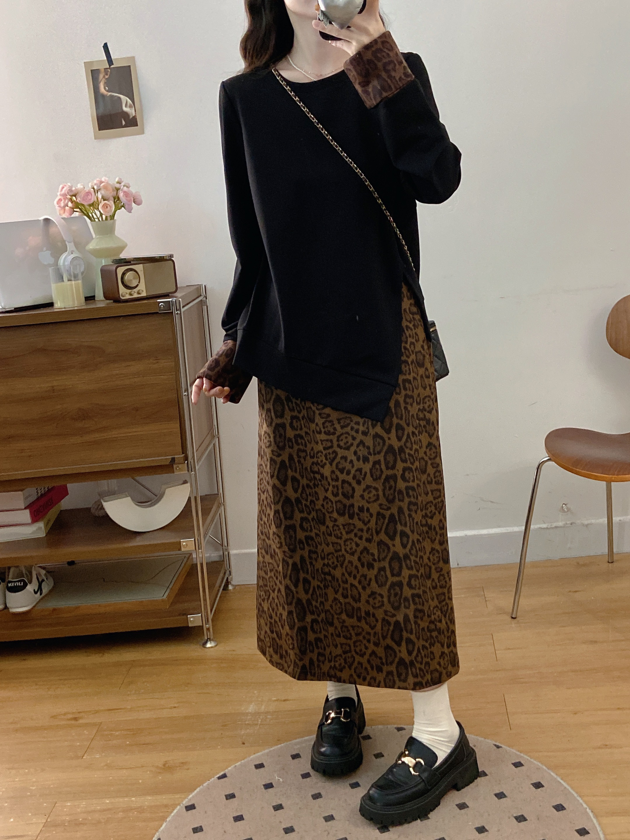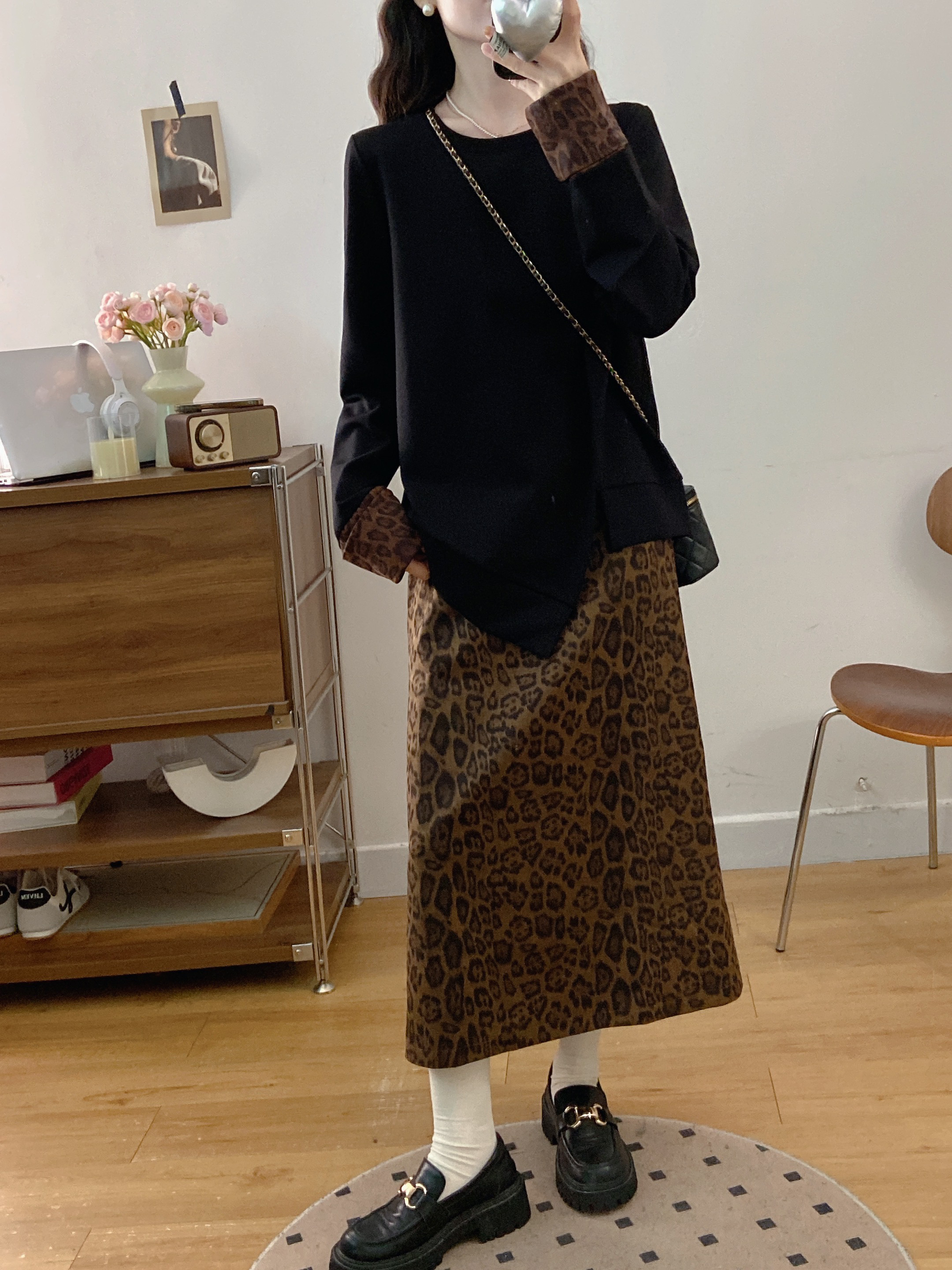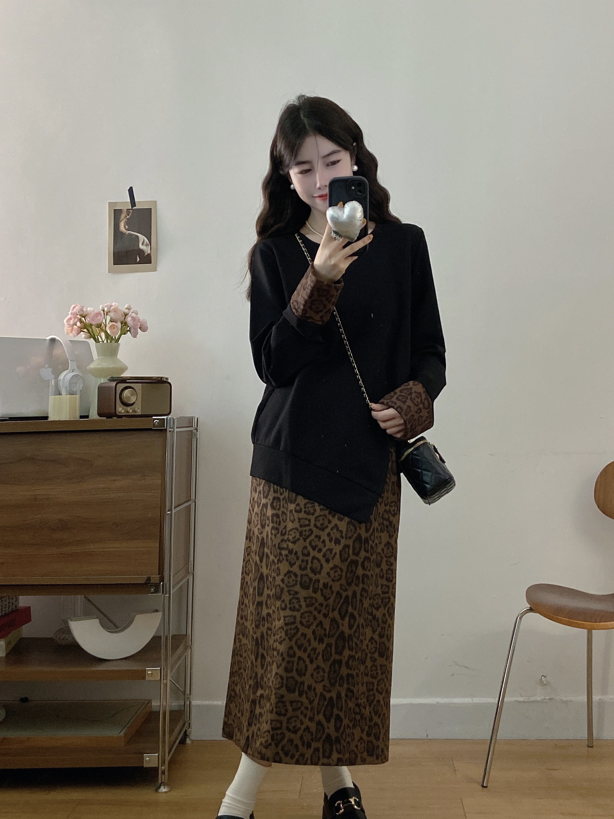 실사 빅 사이즈 여성 의류 2026 봄 새로운 한 부서 미니멀리즘 품격 다용도 셔츠 하이웨이스트 반신 치마 세트