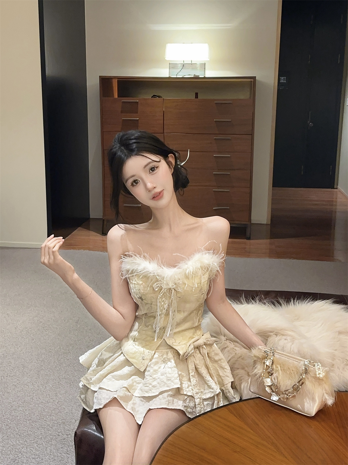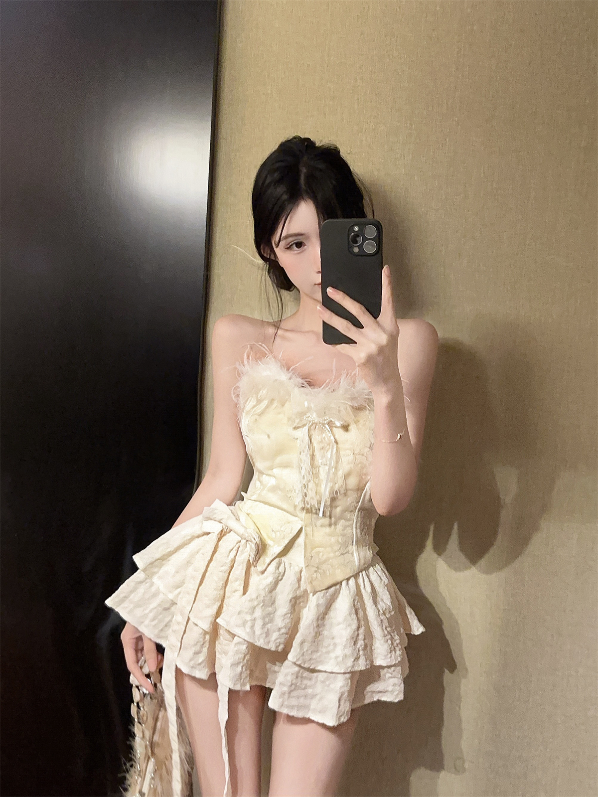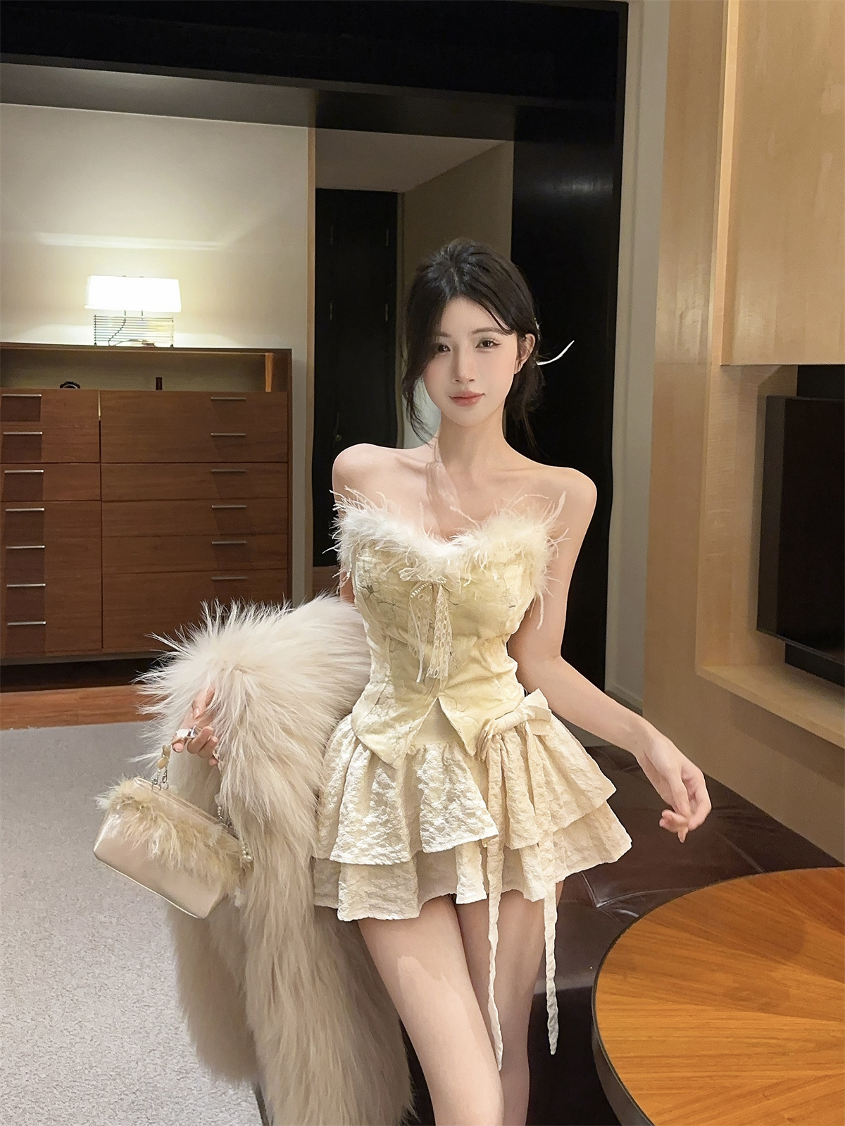 실사 정가 달콤함 나비 매듭 모피 자수 무거운 작업 순수한 욕망 튜브탑 맨위 퍼프 스커트 여성 겨울 세트