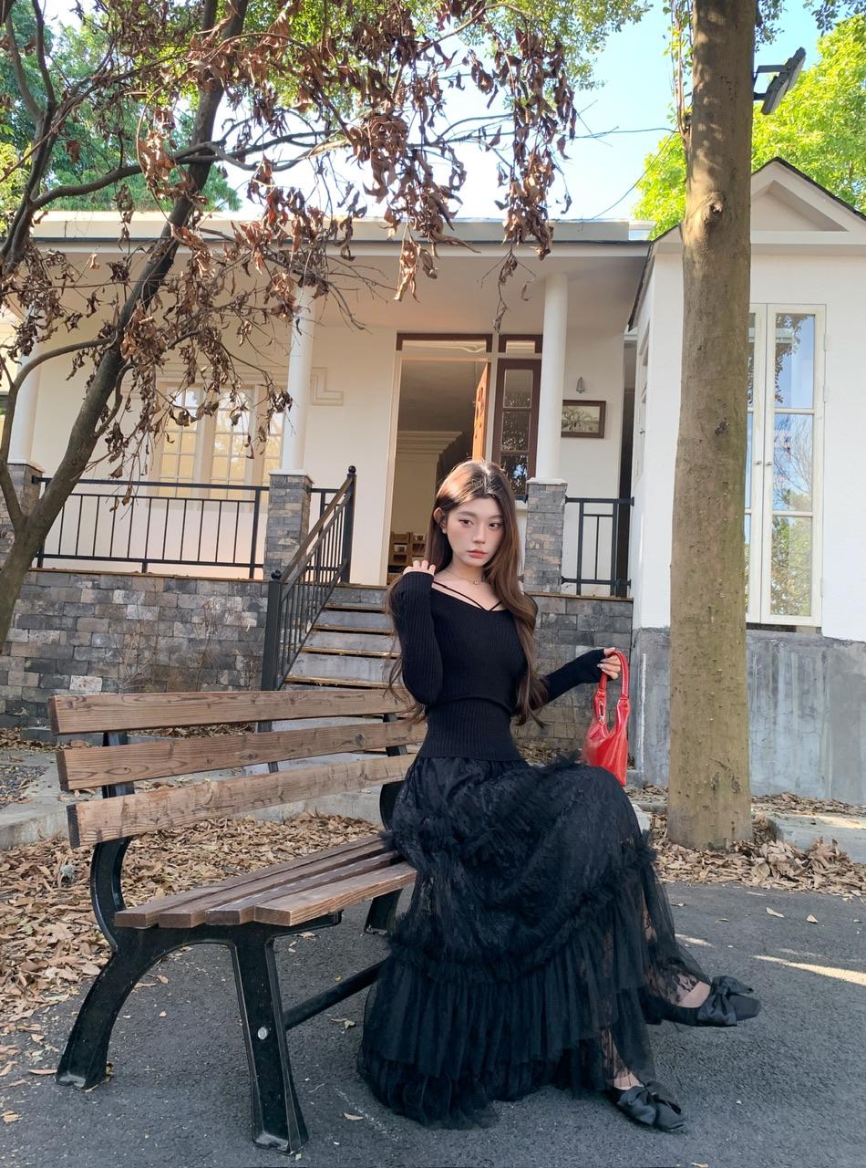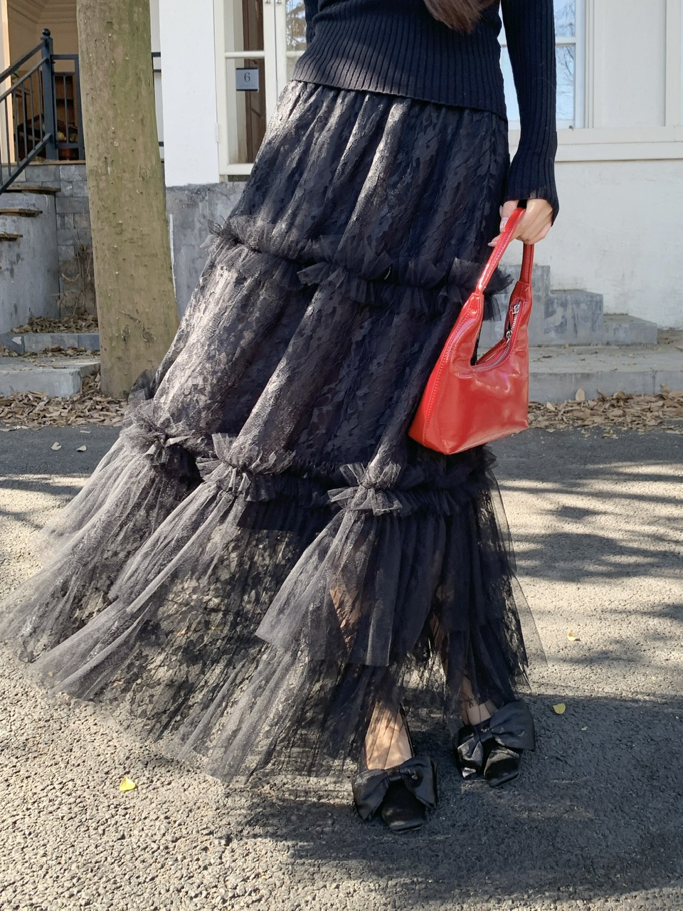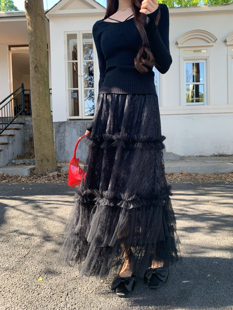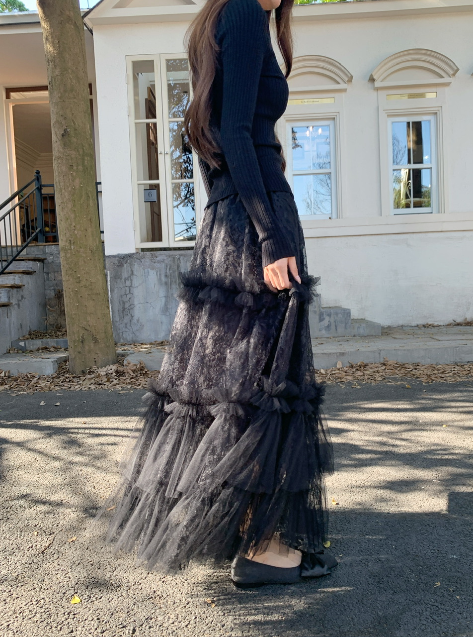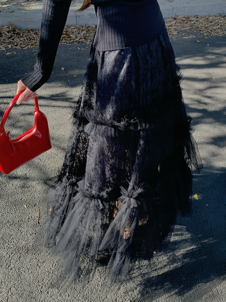 정가 실사 새로운 달콤한 차가운 바람 화이트 레이스 반신 스커트 프릴 큰 진자 롱 스커트