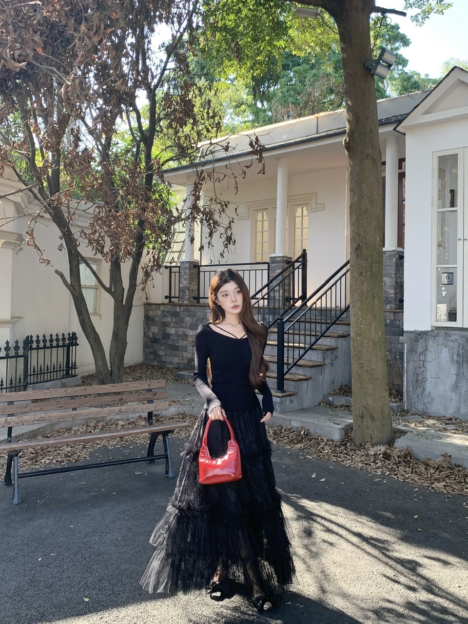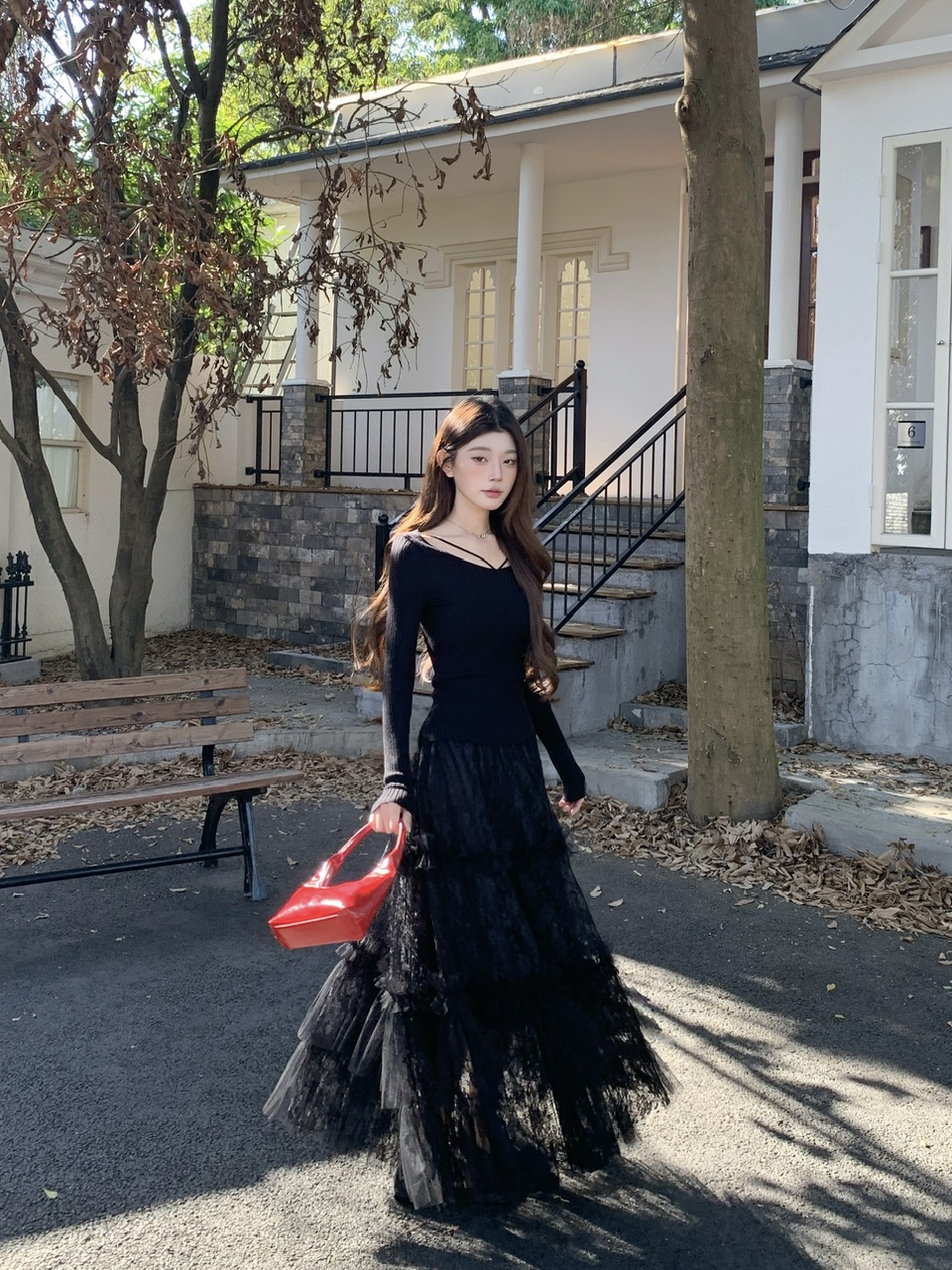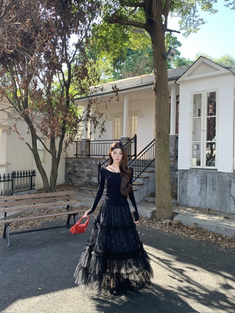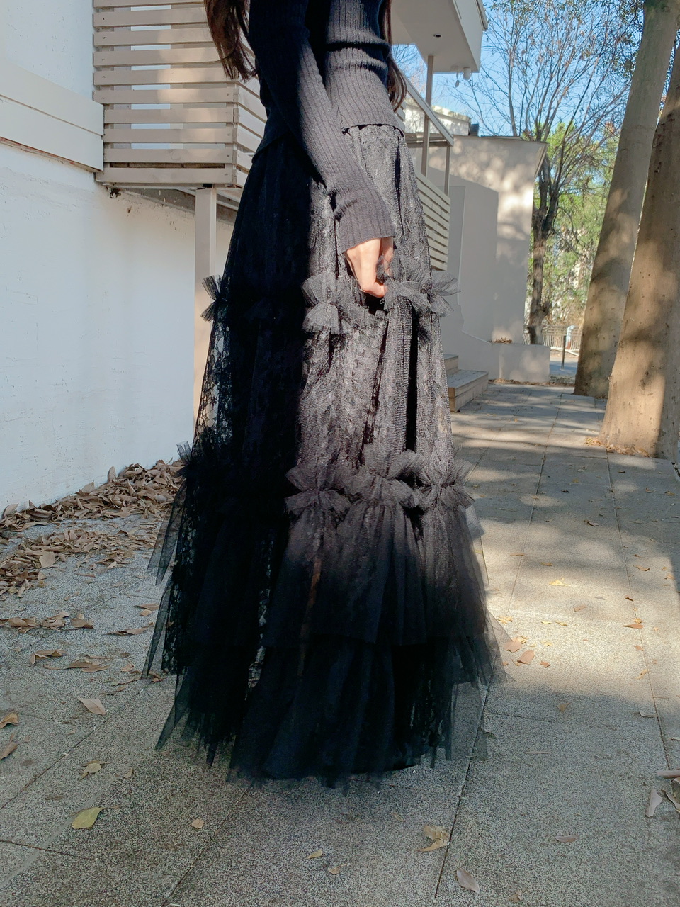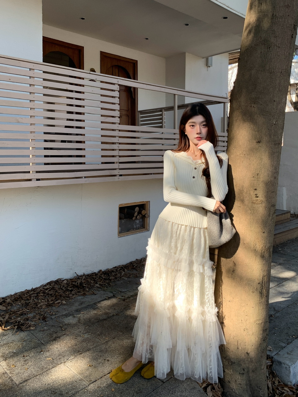 정가 실사 슈퍼 요정 화이트 레이스 케이크 드레스 여성 가을 겨울 하이웨이스트 A라인 스커트 중간 길이 도루 센스 거즈 스커트