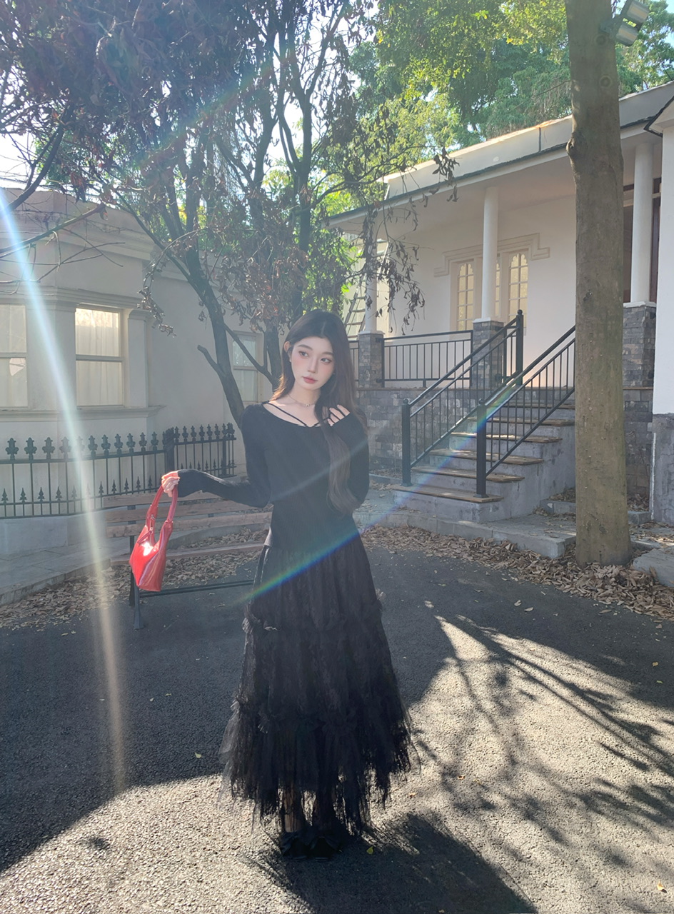 정가 실사 새로운 요정 바람을 피우다 롱 코트 반 스커트 허리밴드 케이크 드레스