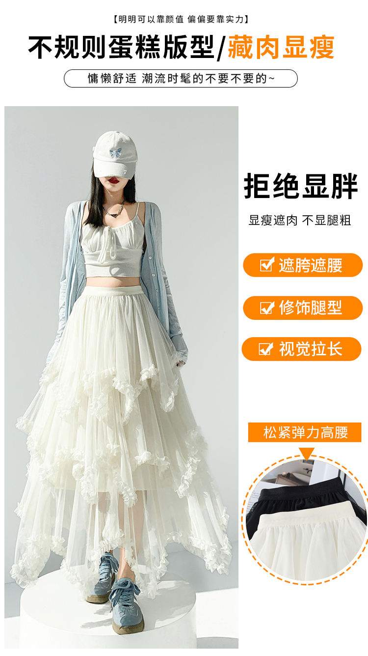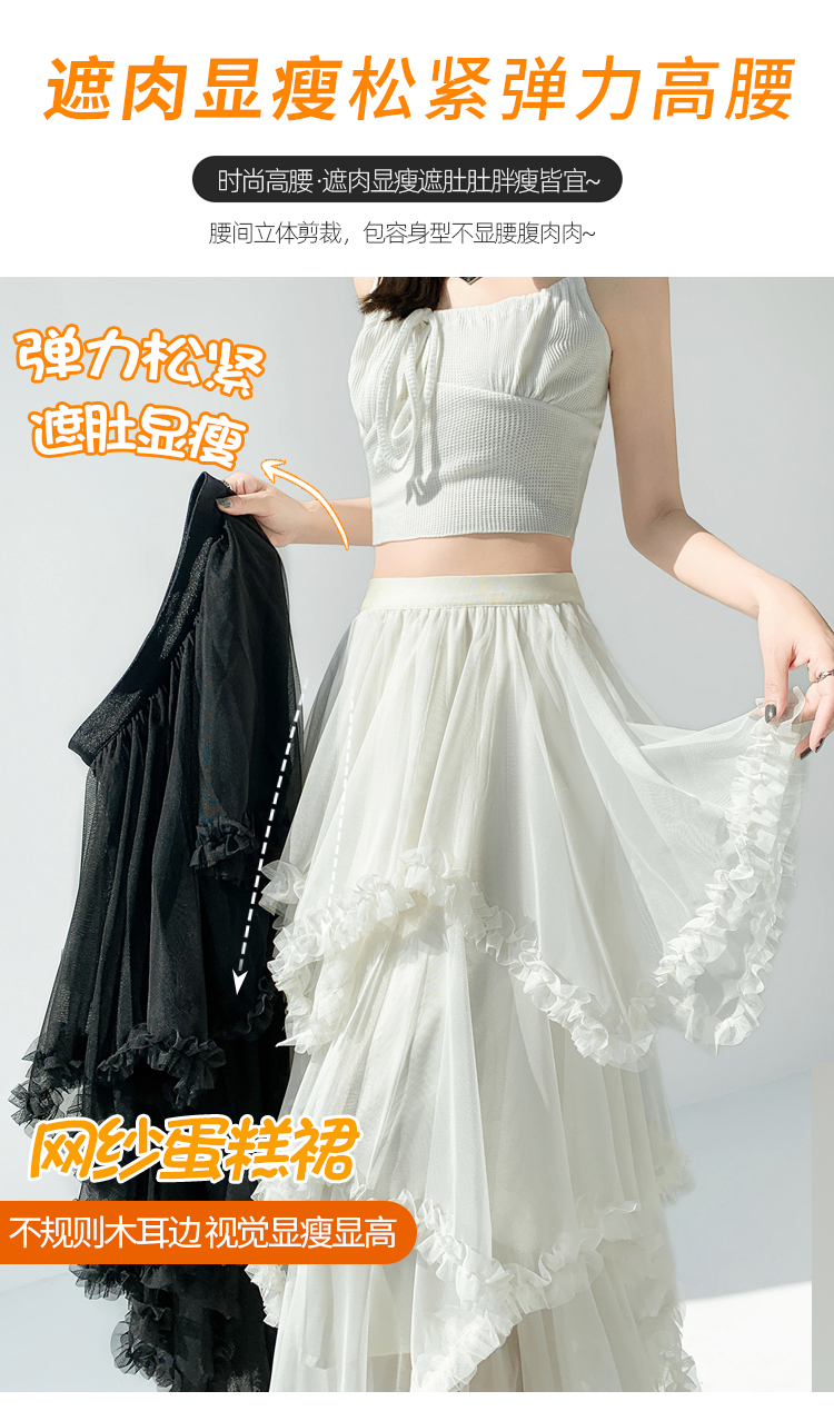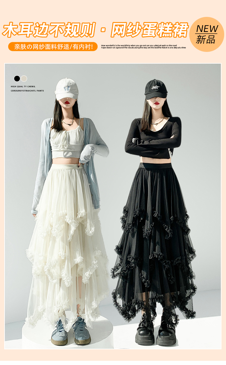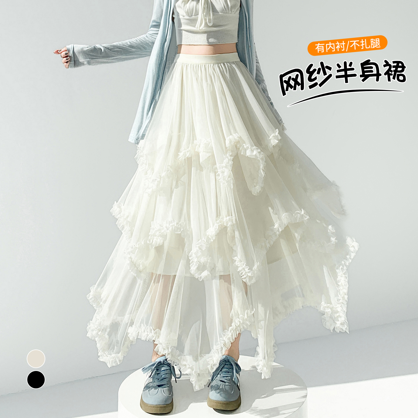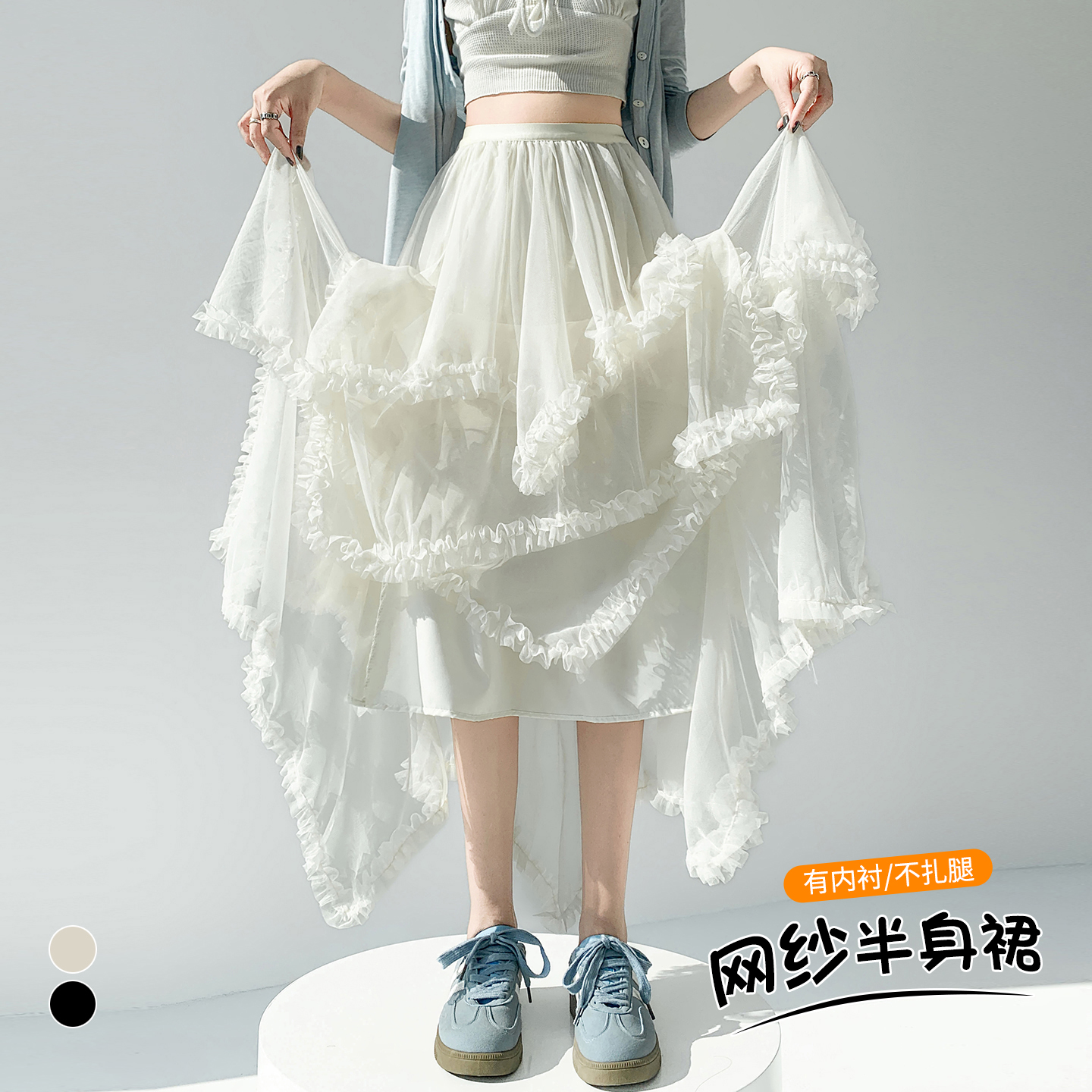 실사 불규칙 망사 반신 스커트 여성 2026 봄 새로운 하이웨이스트 프릴 중간 길이 한 마디 케이크 드레스
