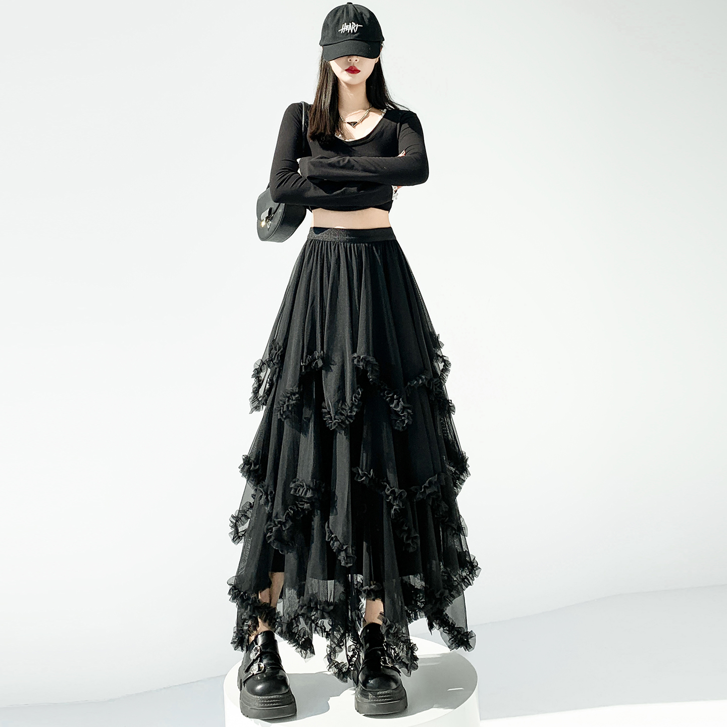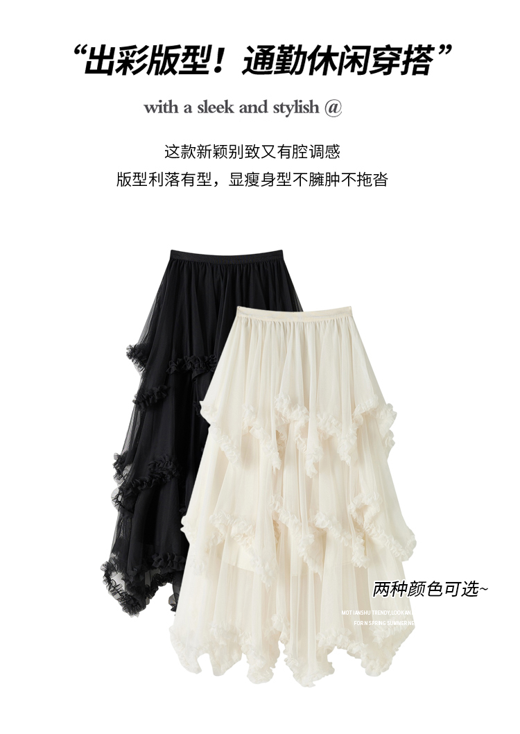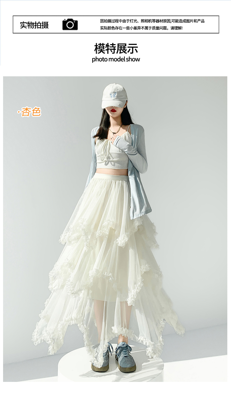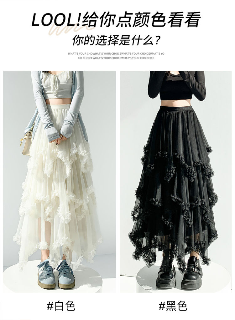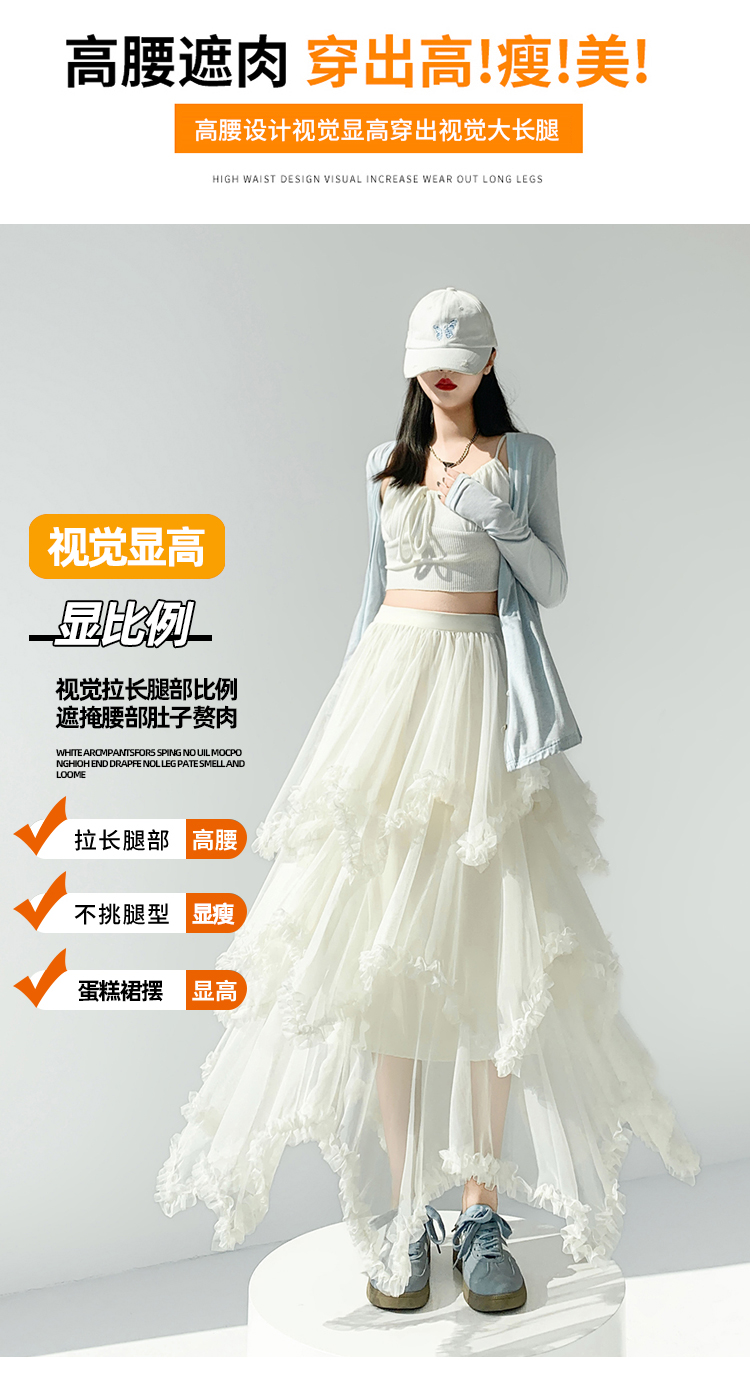실사 불규칙 망사 반신 스커트 여성 2026 봄 새로운 하이웨이스트 프릴 중간 길이 한 마디 케이크 드레스