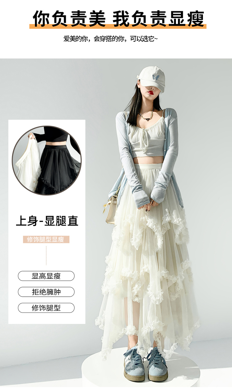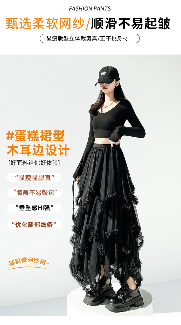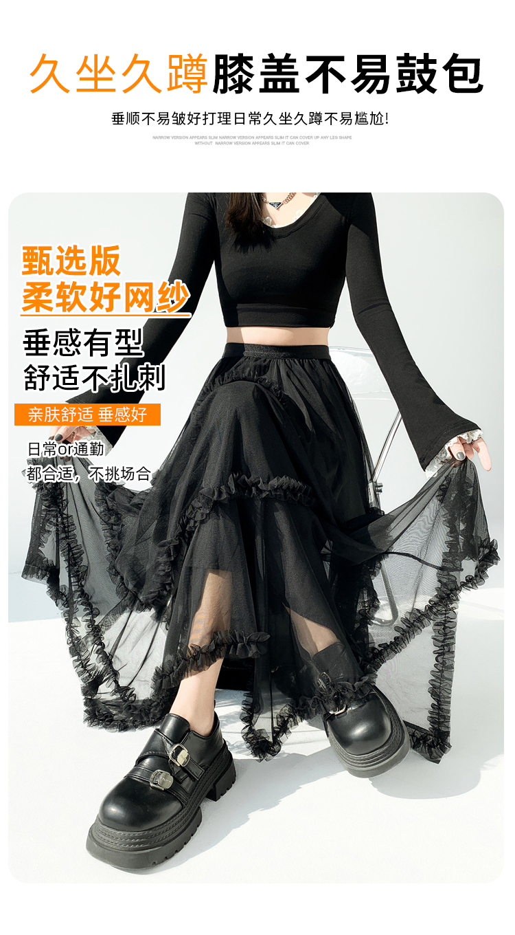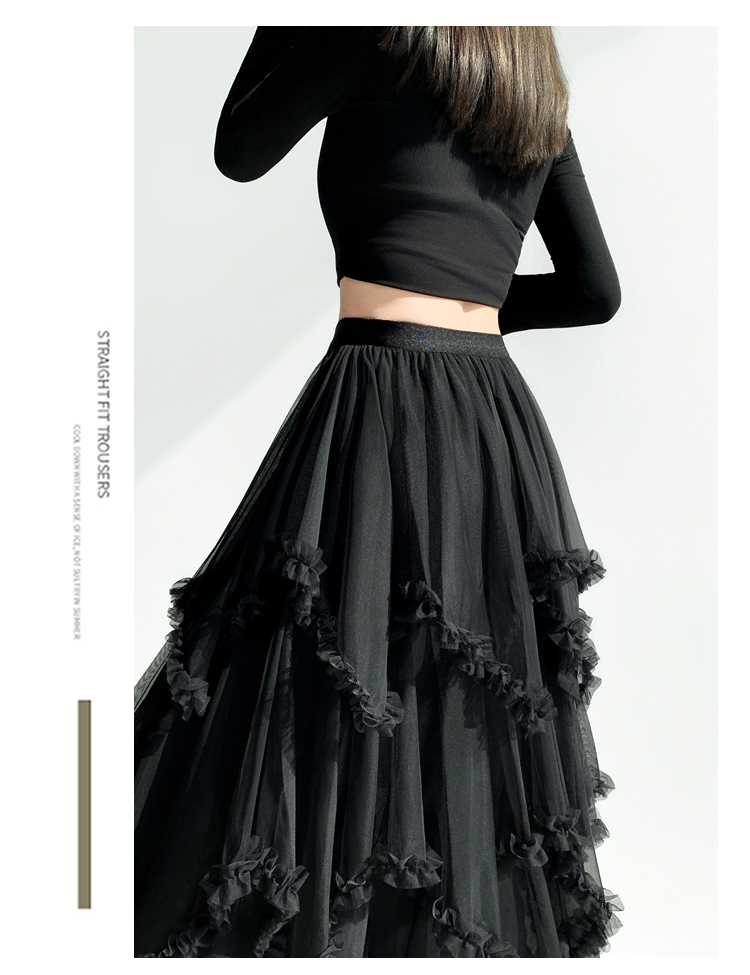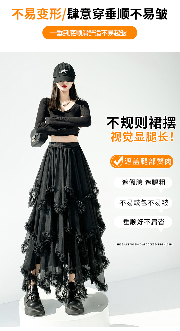 실사 불규칙 망사 반신 스커트 여성 2026 봄 새로운 하이웨이스트 프릴 중간 길이 한 마디 케이크 드레스