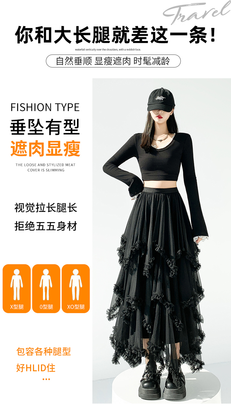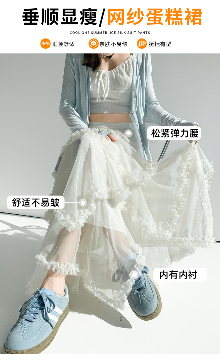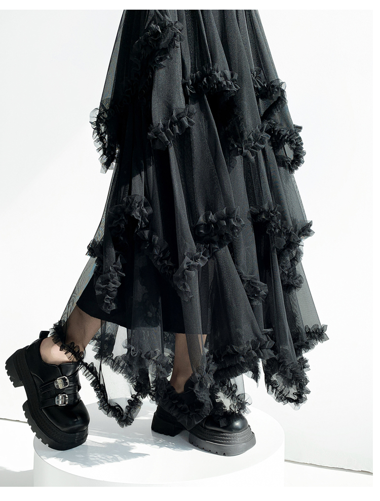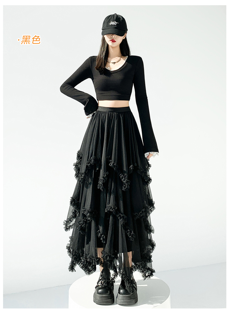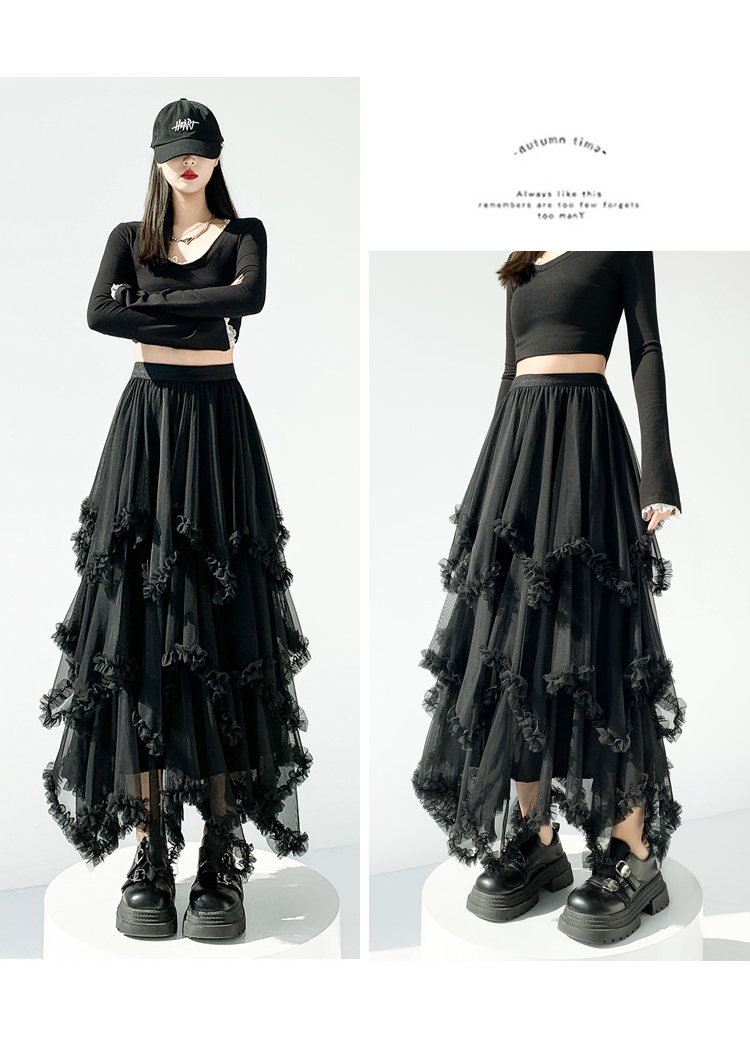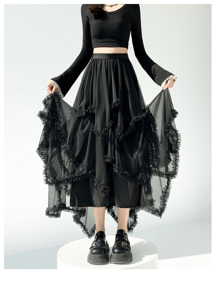 실사 불규칙 망사 반신 스커트 여성 2026 봄 새로운 하이웨이스트 프릴 중간 길이 한 마디 케이크 드레스