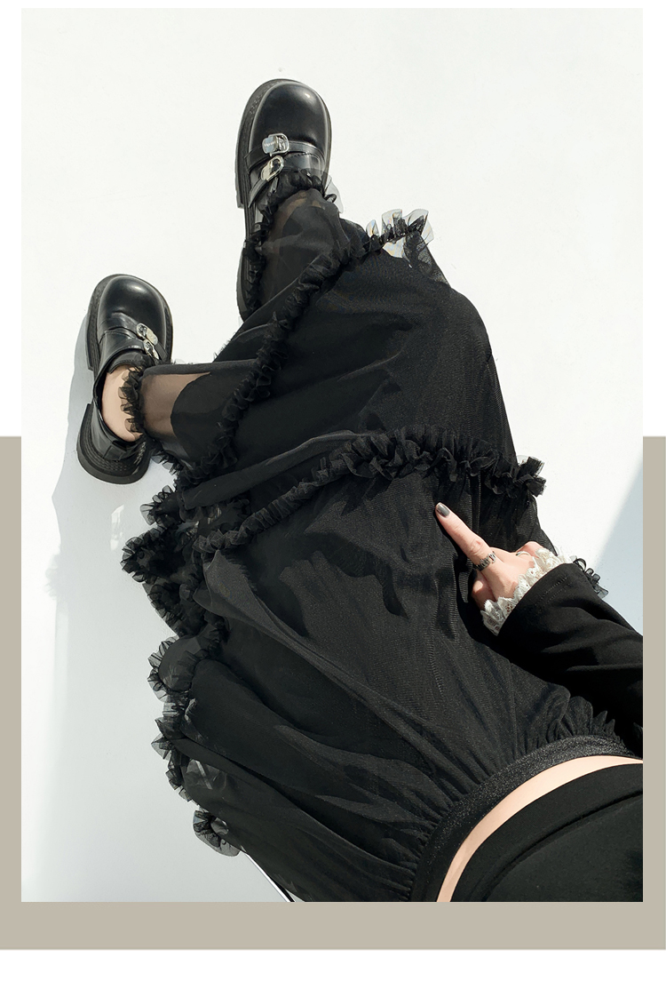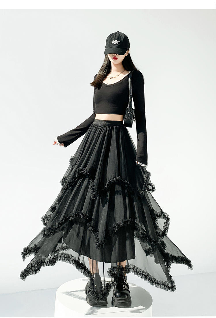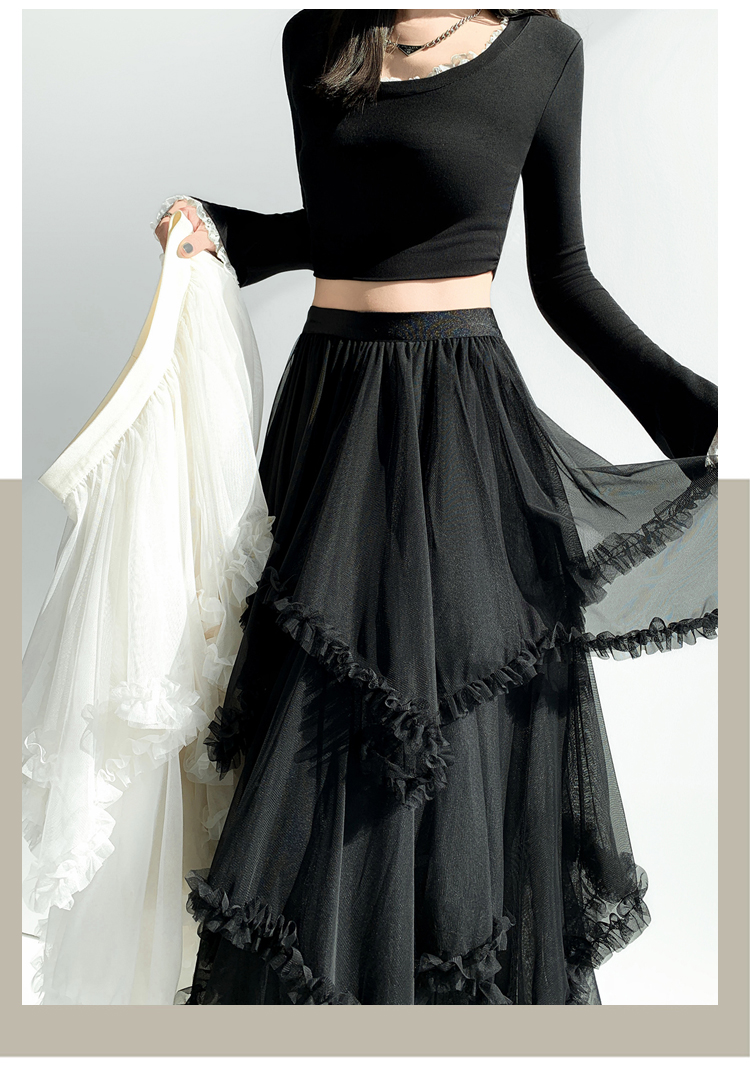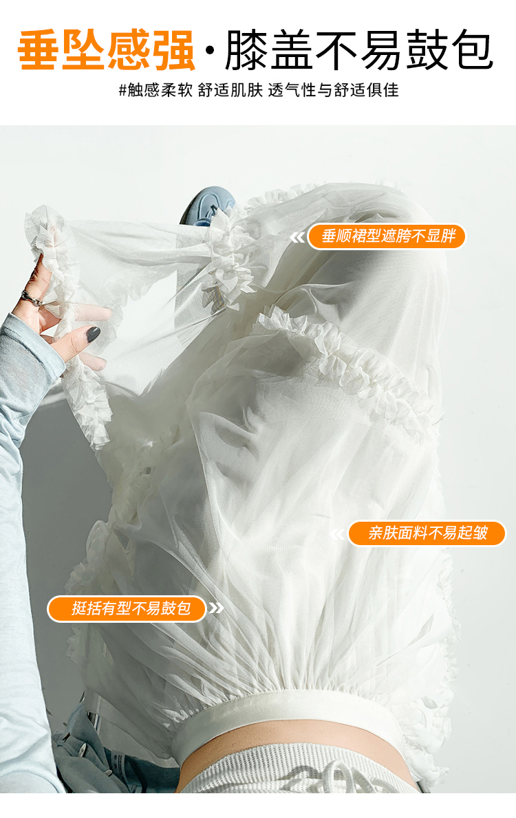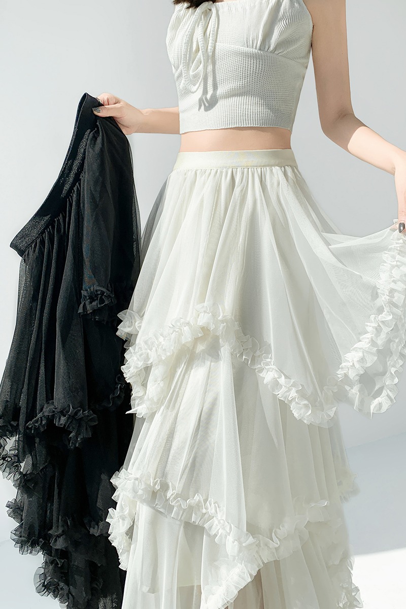 실사 화이트 프릴 불규칙 레이스 조각 쉬폰 반신 스커트 여성 여름 하이웨이스트 루즈핏 한 마디 롱 스커트