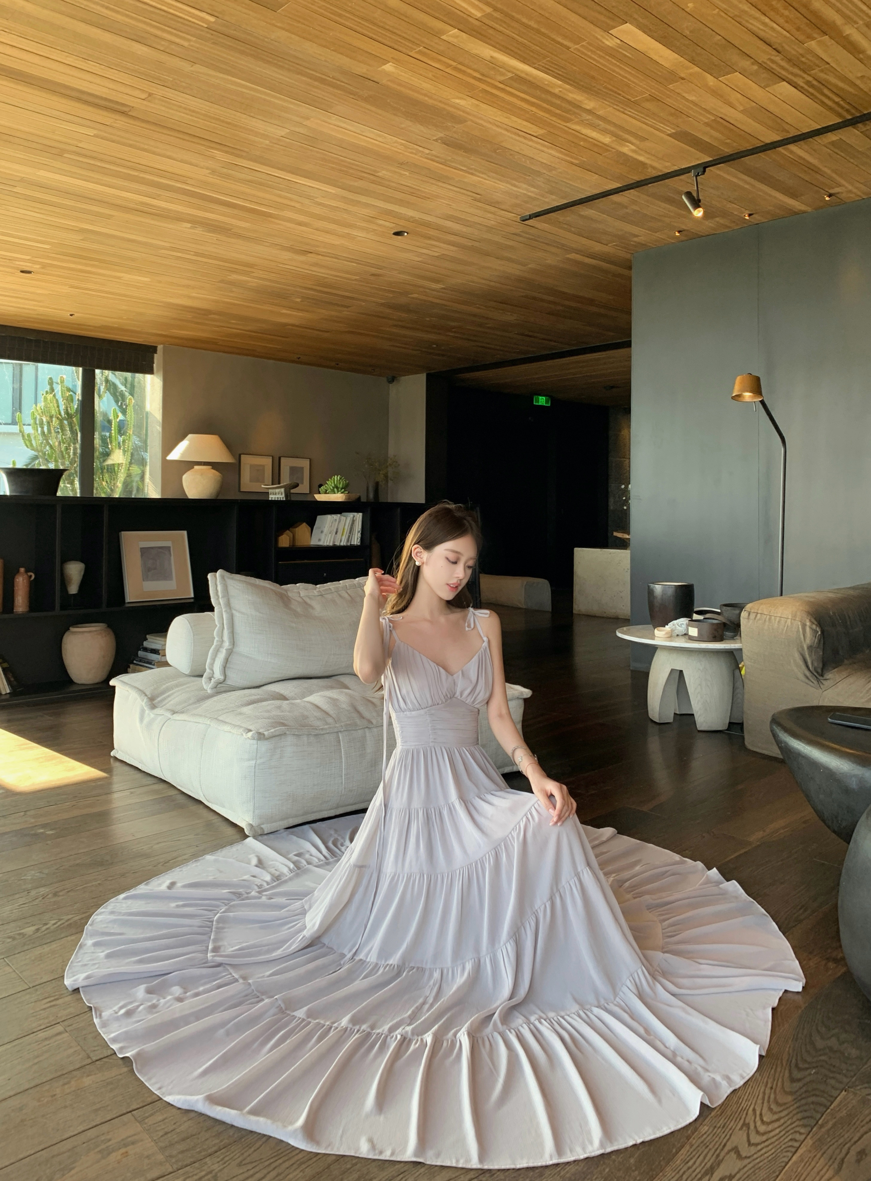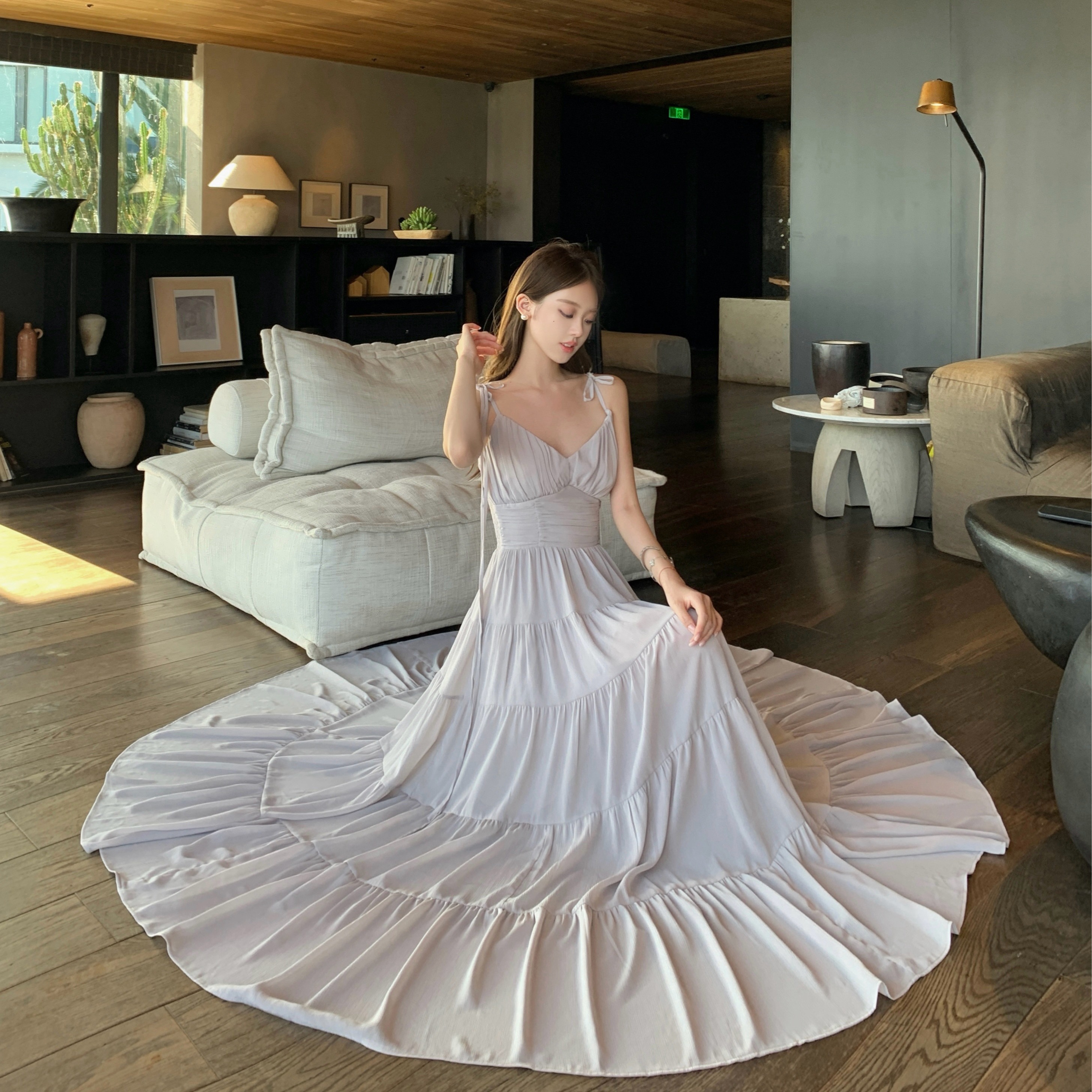 잉여금 부드러운 그것 상황 주간 실크 마 조개 슬립 드레스 해변가 휴가 행침 목 고급 센스 롱 스커트