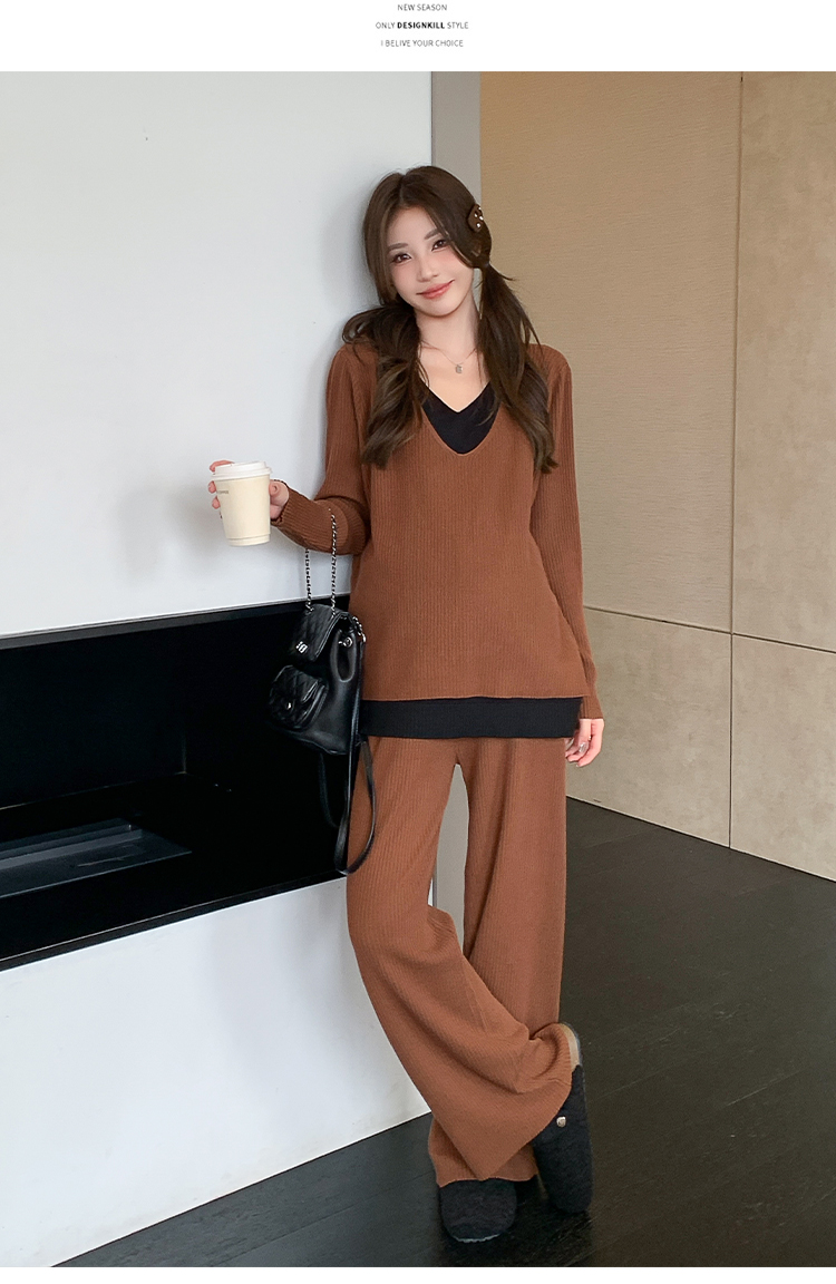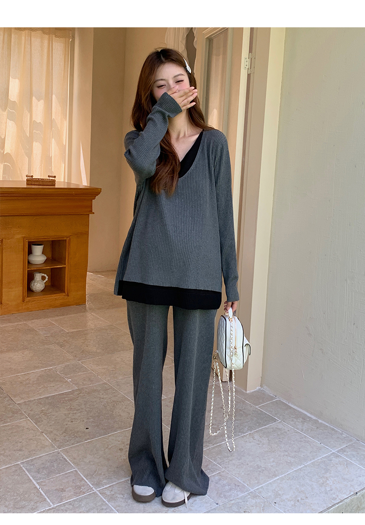 실사 한국 스타일 루즈핏 투피스 세트 초박형 니트 태양 보호 셔츠 슬립 드레스 느긋한 바람 임산부 투피스 세트