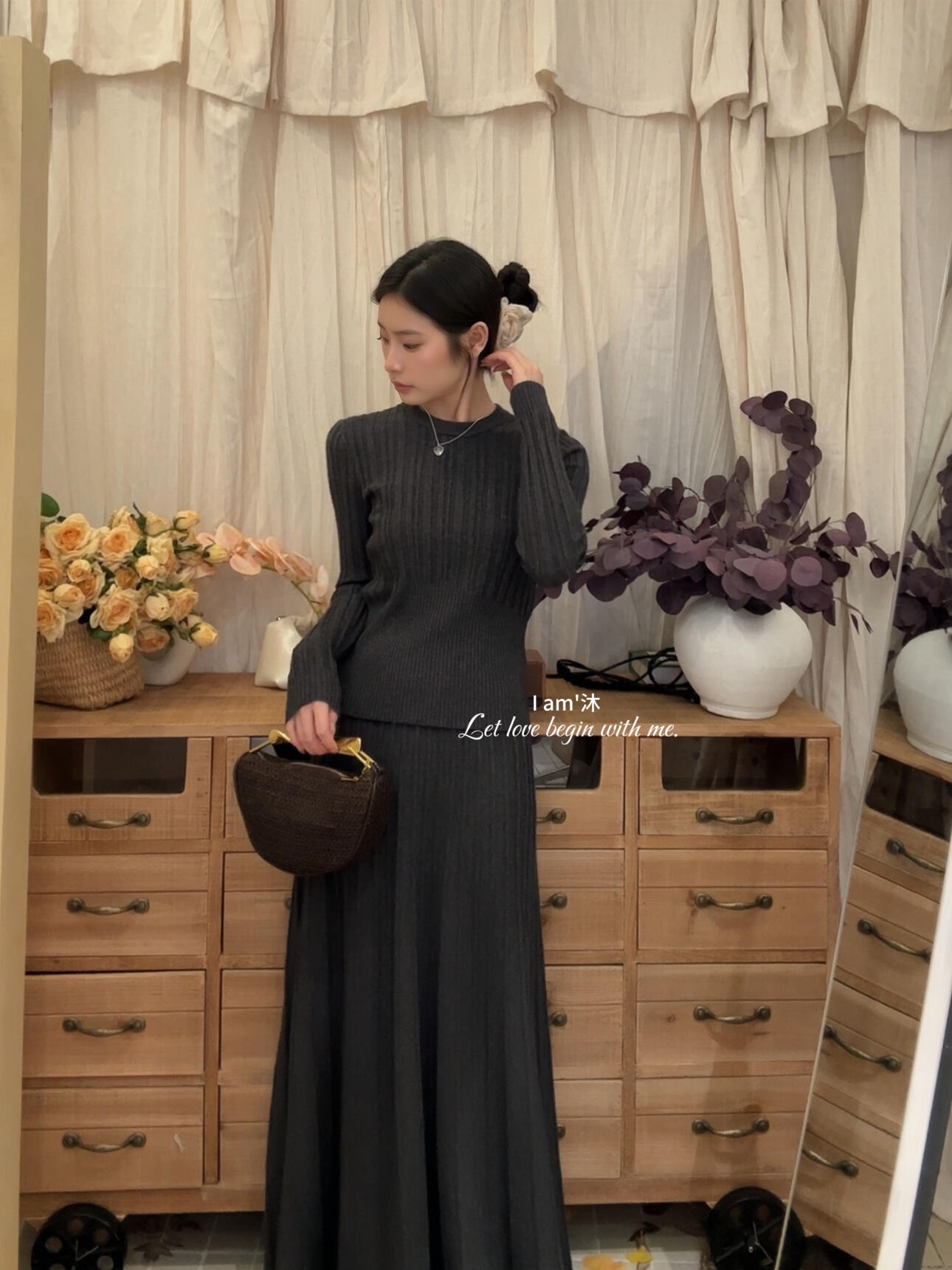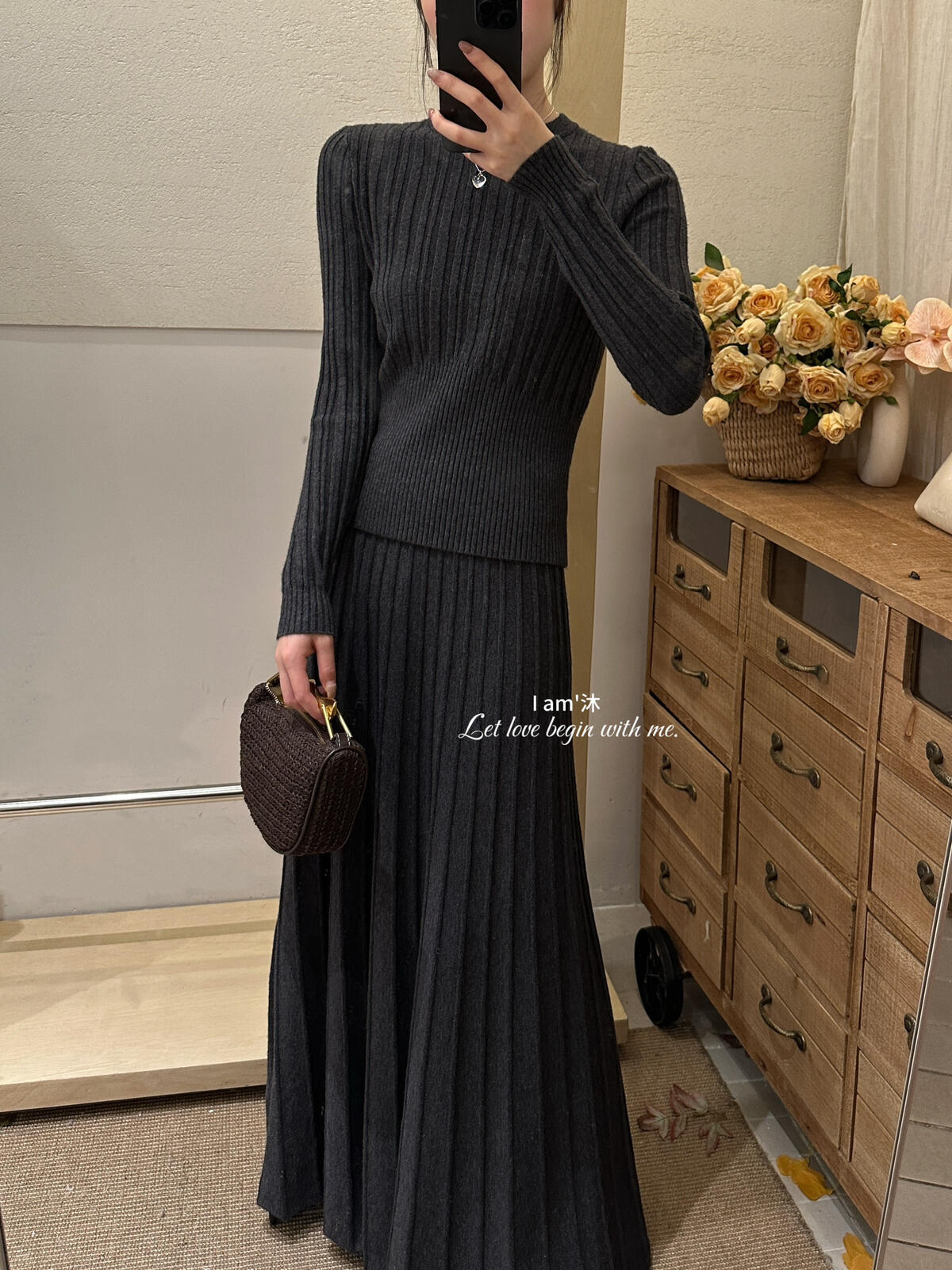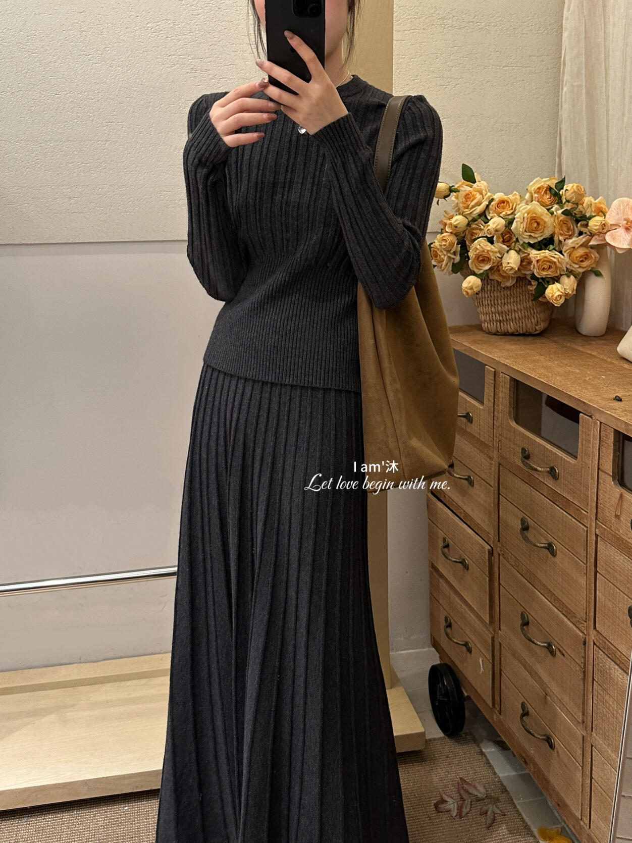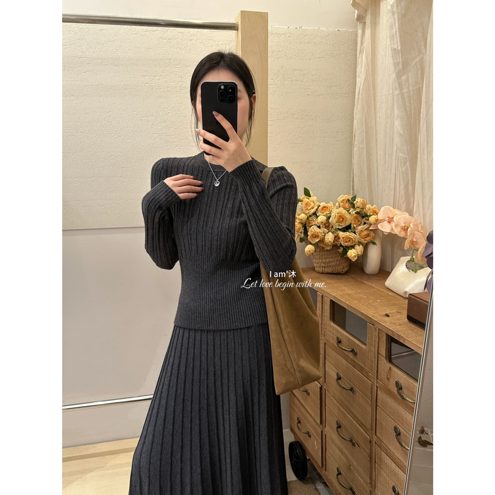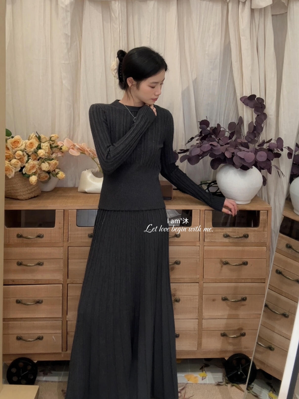 한 부서 이른 가을 착용 가져 가라. 부드러운 찹쌀 스웨터 니트 기본 셔츠 맨위 캐주얼 반신 스커트 자이언트 잘 생긴 ~ 중 투피스 세트
