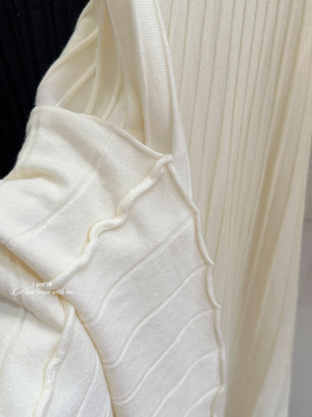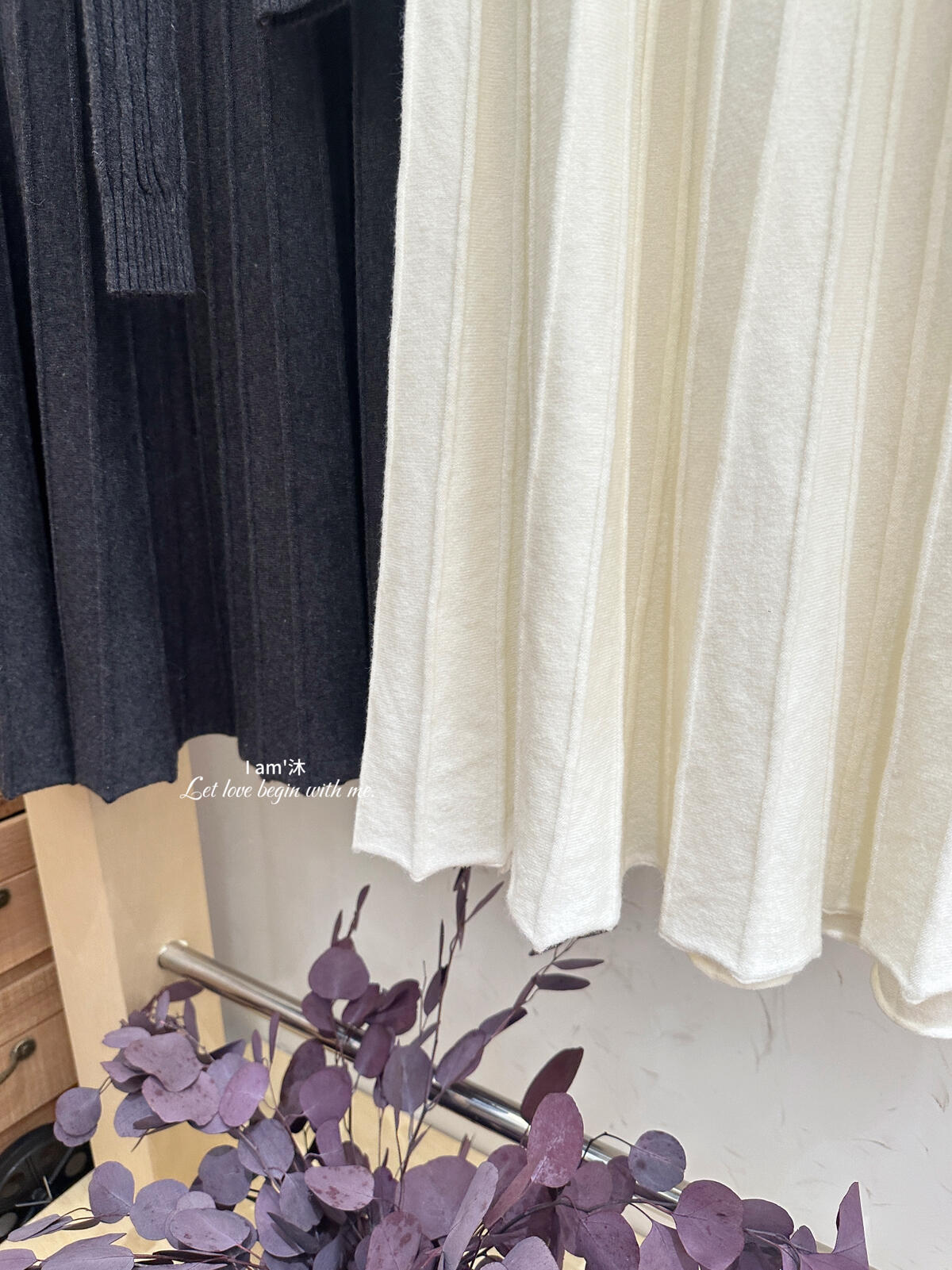 가을 겨울 두꺼운 2025 한국 스타일 다용도 슬림해 보이는 도루 센스 표지 십자가 부드러운 플리츠 털실 니트 반신 스커트