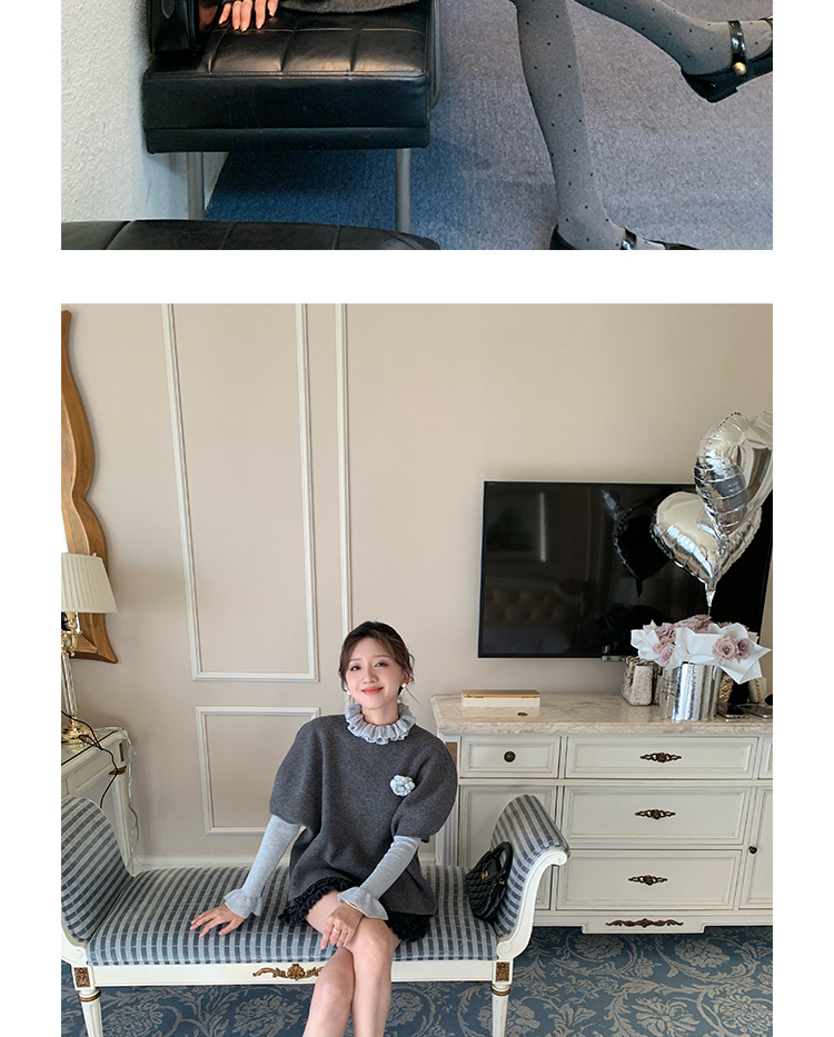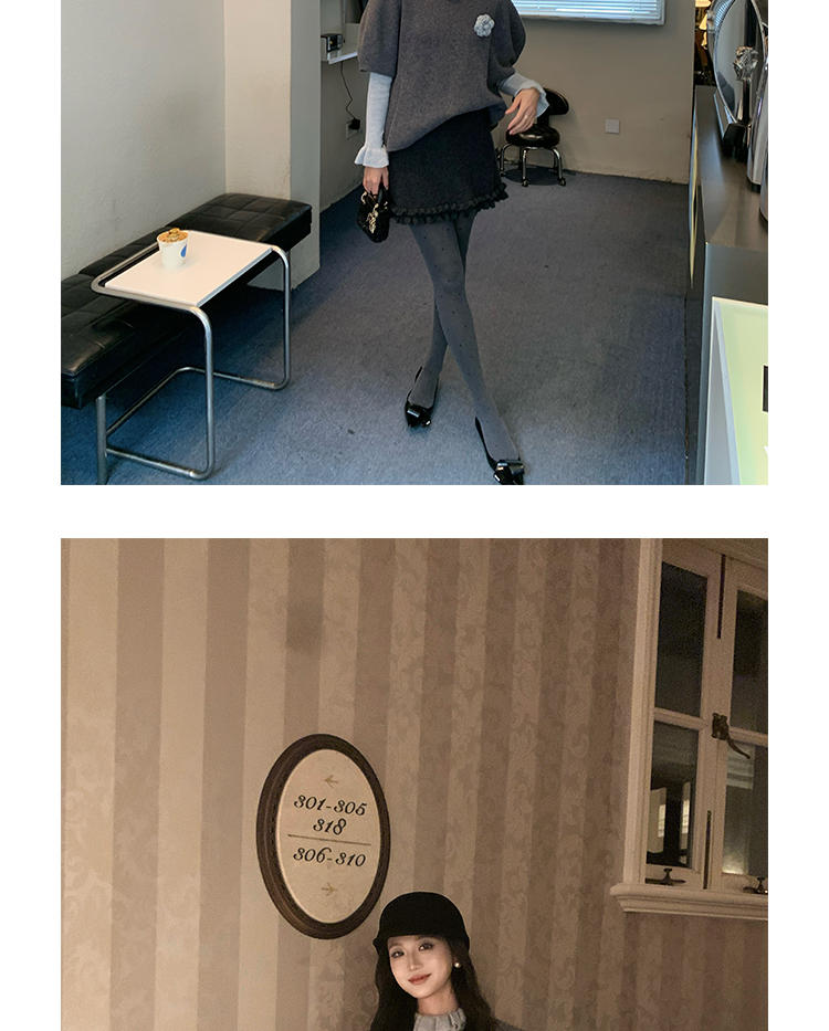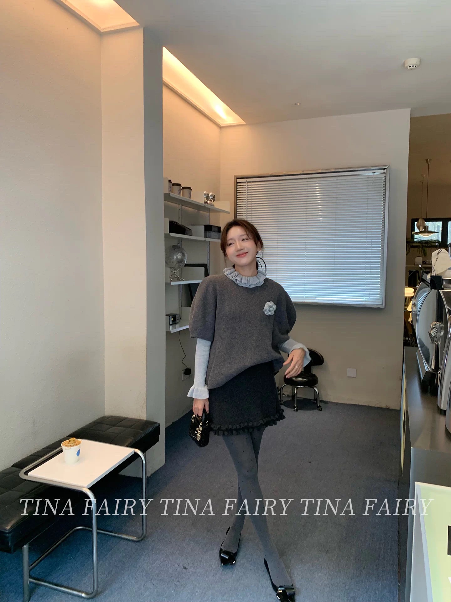 hers 미니멀리즘 절묘한 품격 레이스 조각 니트 반신 스커트 2025 가을 겨울 다용도 슬림해 보이는 중간 길이 스커트 아이들