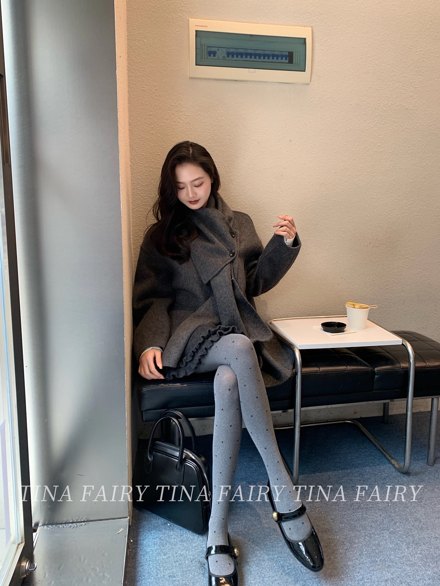 핏 스타일 슈퍼 긍정적 인 ~ 중 회색 니트 플리츠 스커트 여성 가을 겨울 한 부서 다용도 포함 양모 반신 스커트