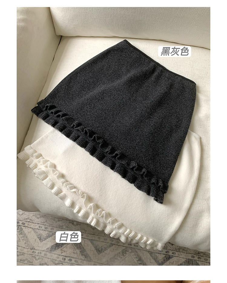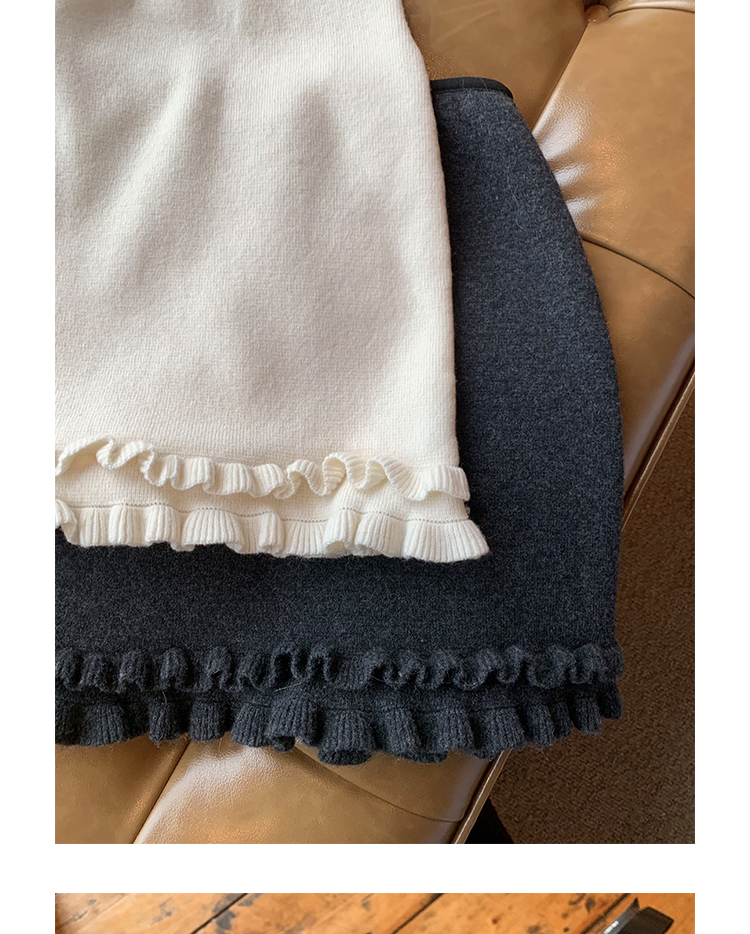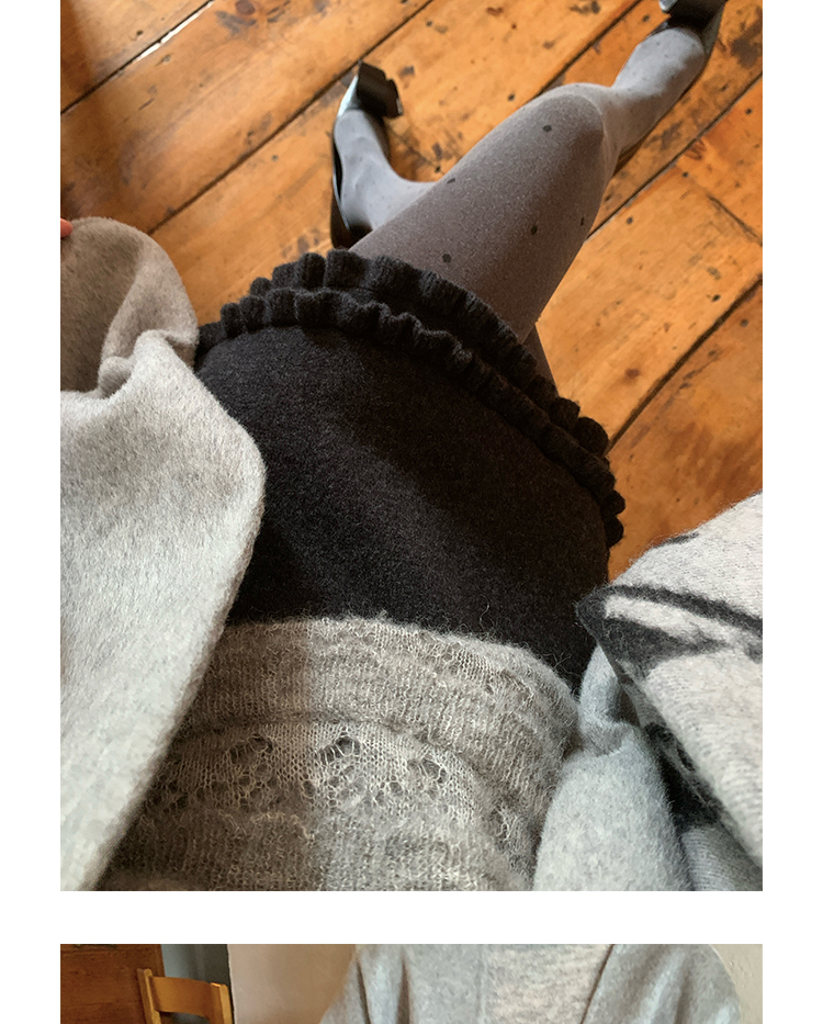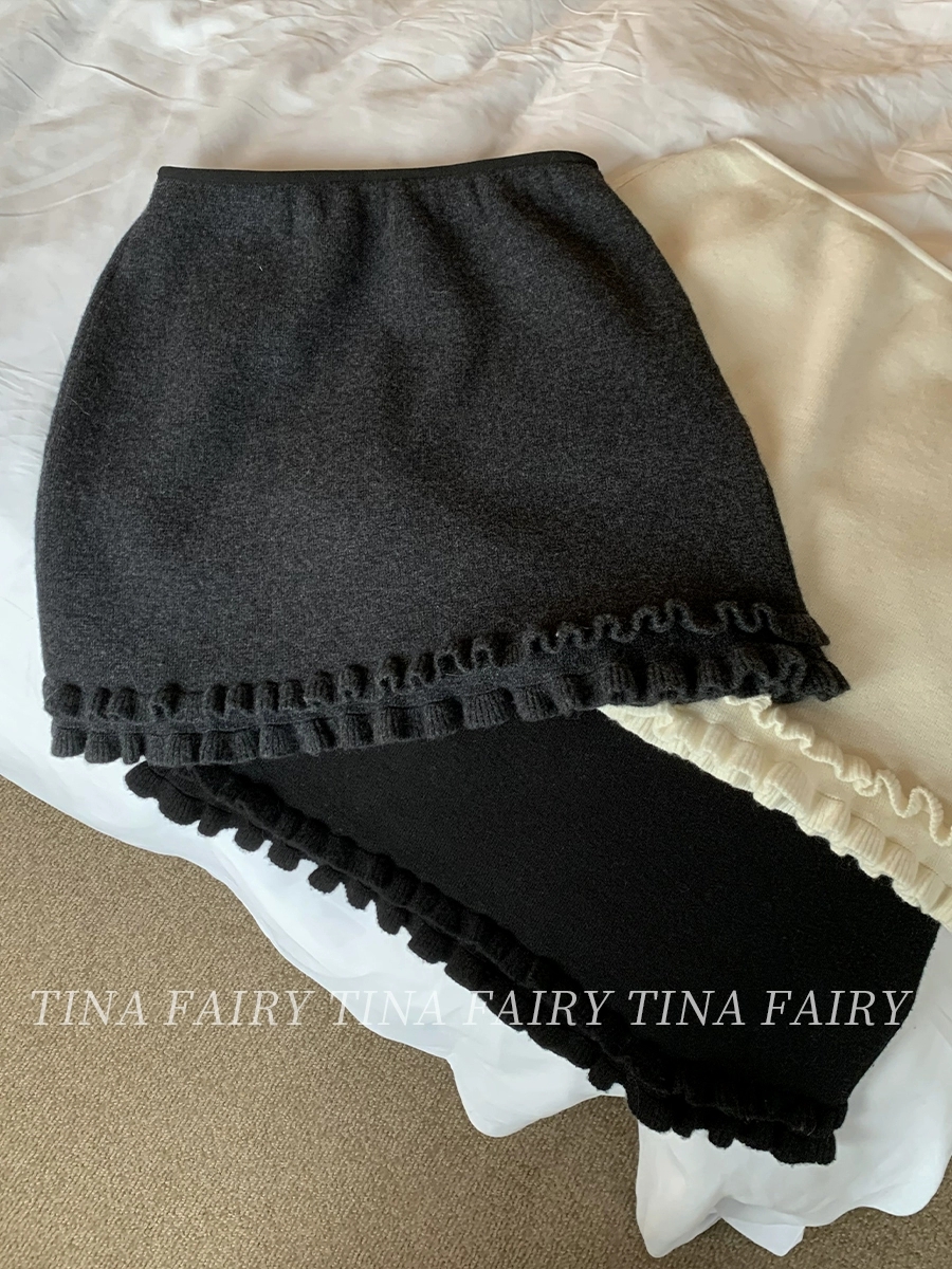 양모 프릴 니트 미니 스커트 물결무늬 곡물 반신 스커트
