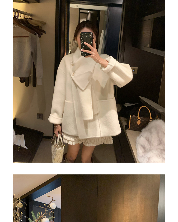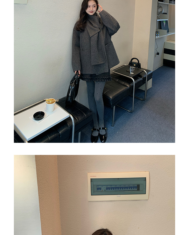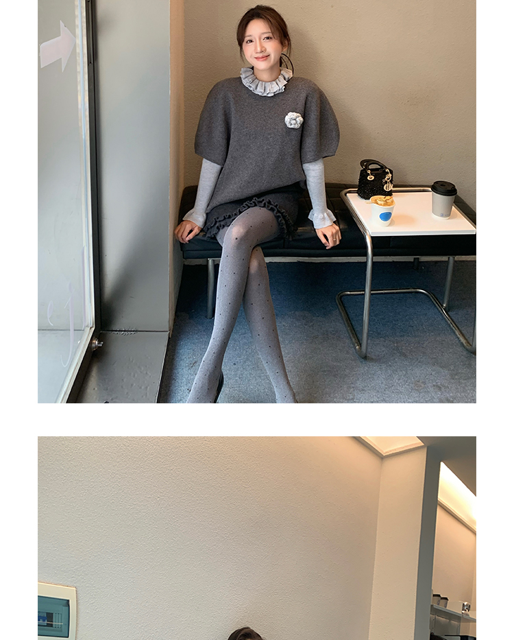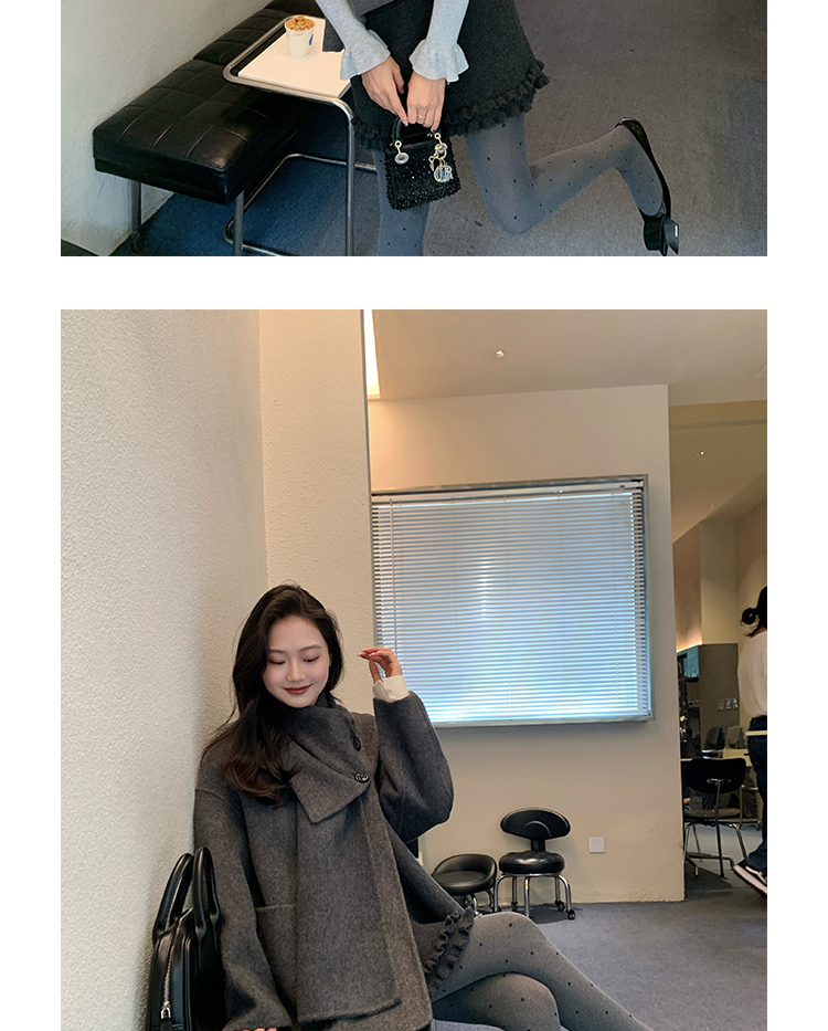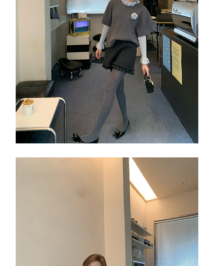 양모 프릴 니트 미니 스커트 물결무늬 곡물 반신 스커트